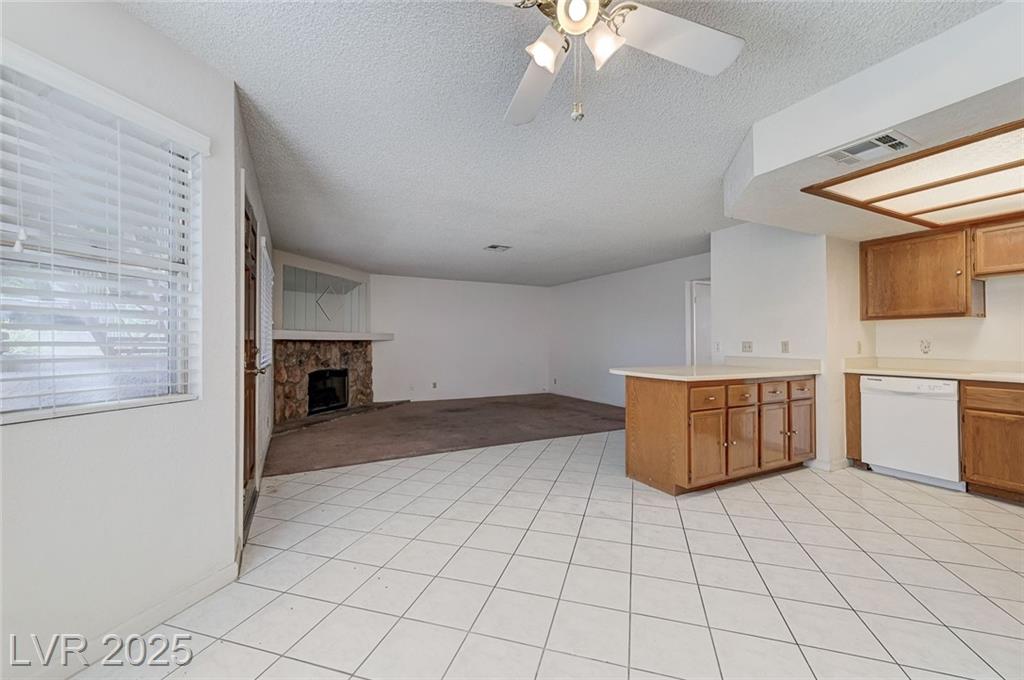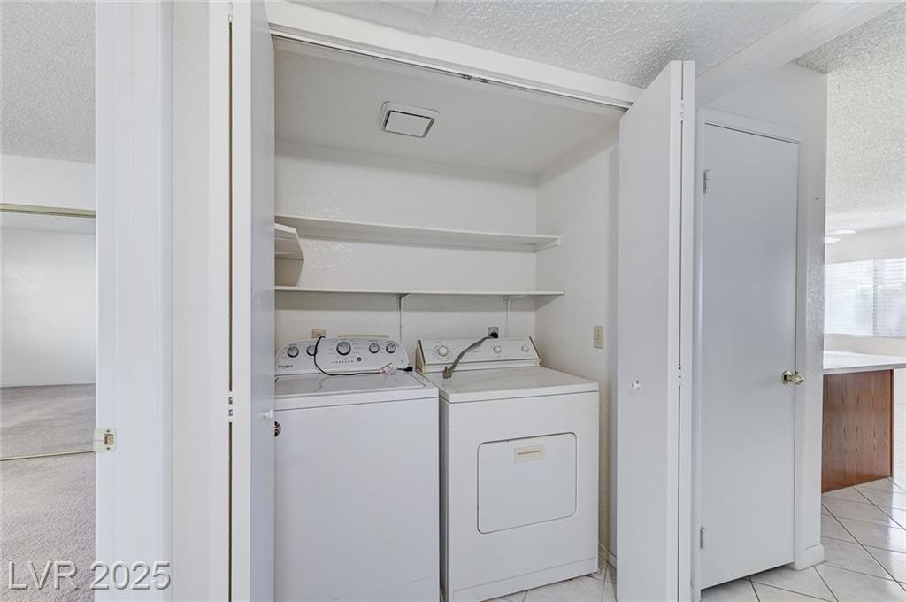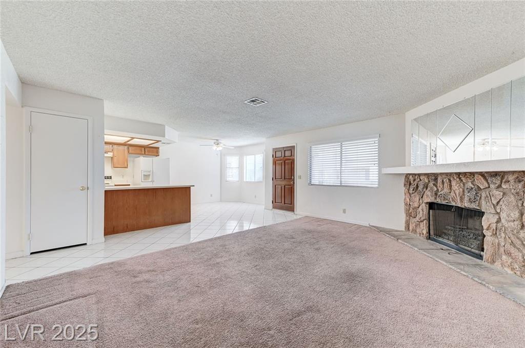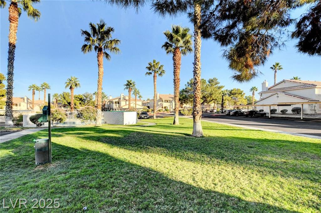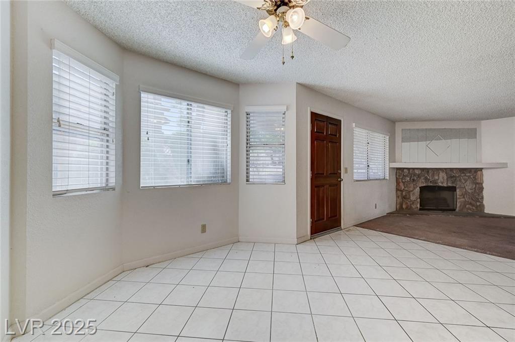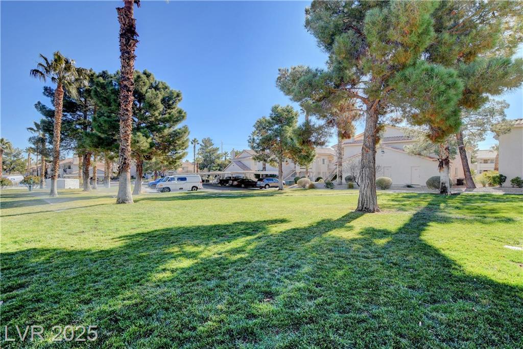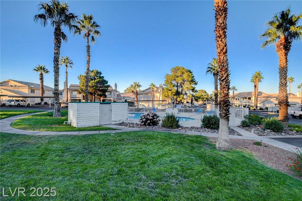 Spacious first-floor condo in Rock Springs Vista, just outside Summerlin! This 2 bedroom, 2 bathroom home offers 1,136 sq ft with an open floor plan featuring a cozy fireplace, breakfast bar, and bright dining nook. Both bedrooms are generously sized. Shaded by mature trees, the private patio creates a lush and relaxing retreat. Enjoy being just steps from the sparkling community pool and spa. Additional highlights include in-unit laundry with washer & dryer included, covered parking, and a prime location close to shopping, dining, and freeway access. A perfect blend of comfort, convenience, and resort-style living!