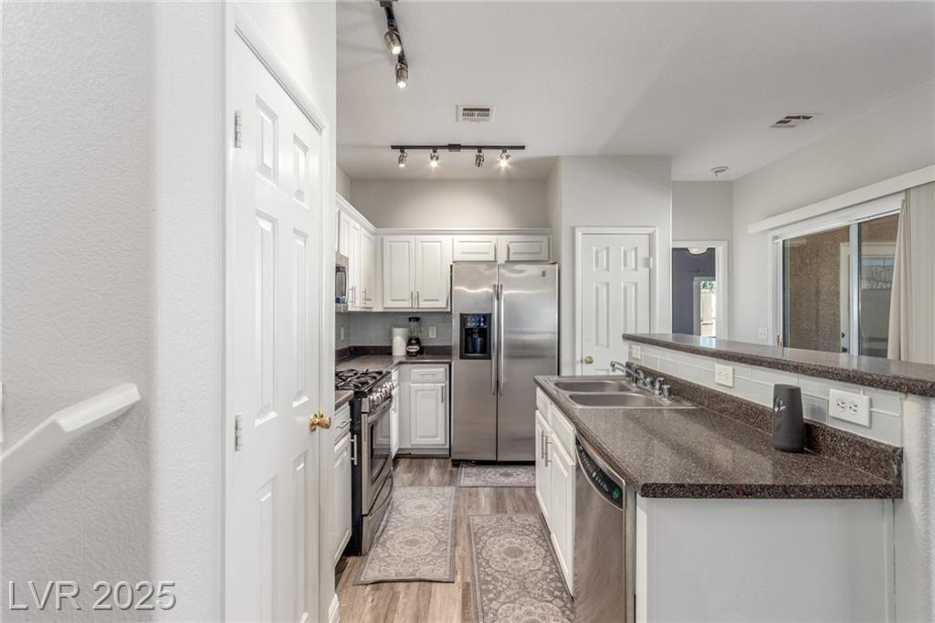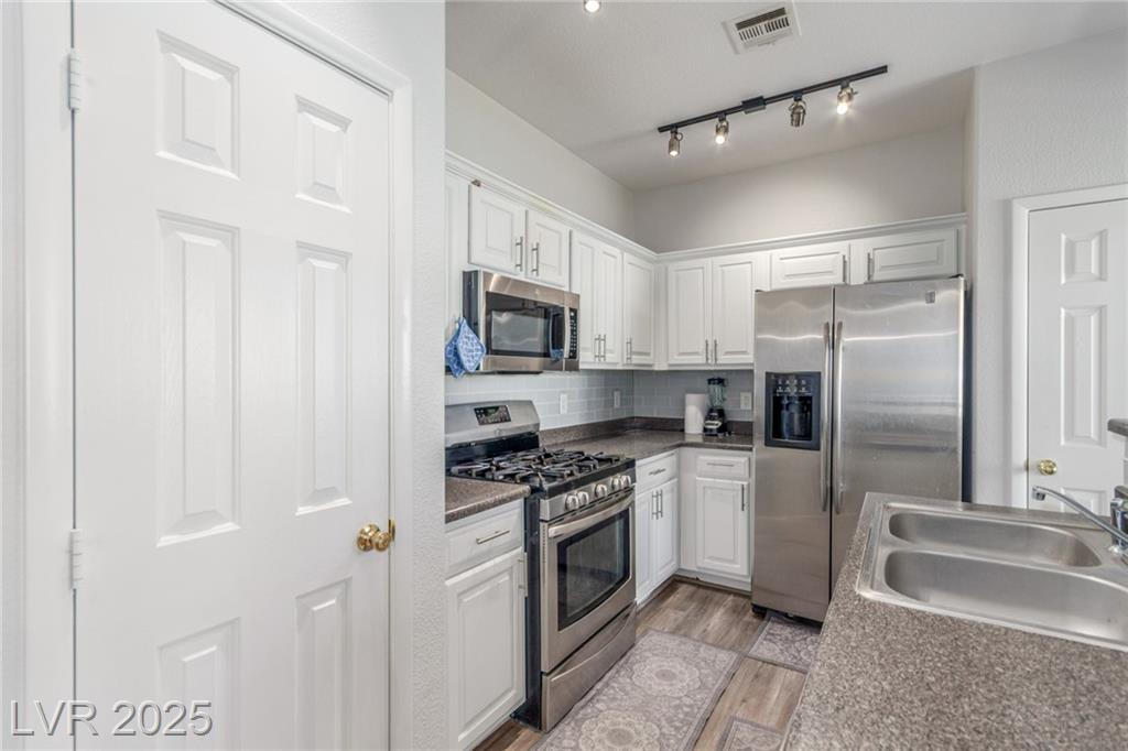 Welcome to this modern 2-bedroom, 2-bath condo located in desirable gated community in North Las Vegas. This beautifully maintained unit features an open floor plan with stylish flooring throughout and abundant natural light. The contemporary kitchen boasts stainless steel appliances and ample cabinet space. Enjoy your private balcony for morning coffee or evening relaxation. The unit also includes an attached 1-car garage. Residents have access to fantastic community amenities, including a sparkling pool and well-kept common areas.