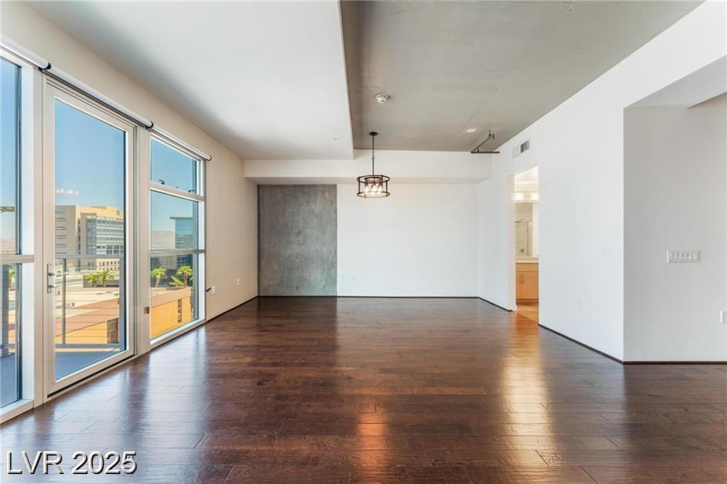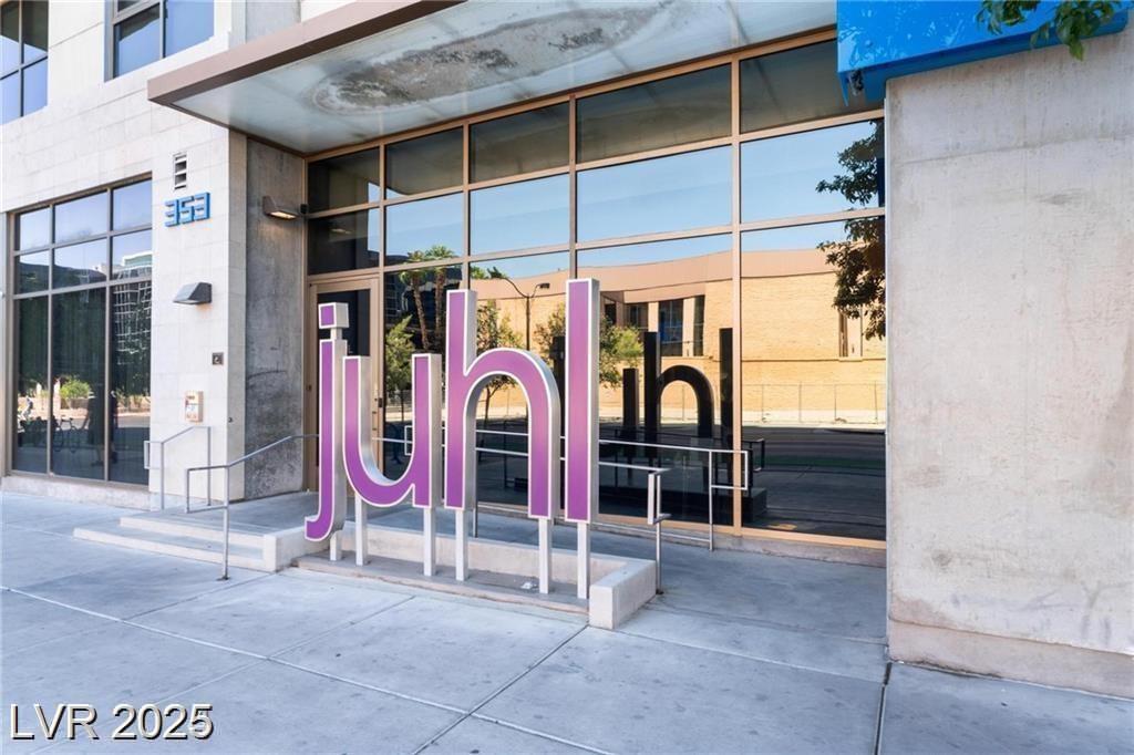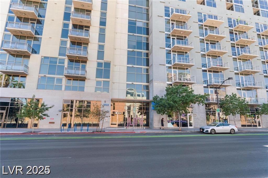 Experience Loft Style High Rise Living at its finest in this popular seventh-floor corner unit condo with breathtaking views of downtown, the valley, and mountains beyond. This one-bedroom unit features soaring ceilings, floor-to-ceiling windows, and a balcony that maximizes light and the stunning scenery. The condo is beautifully upgraded with roller shades, hardwood / tile floors, stainless steel appliances, and custom cabinets. Additional enhancements include fresh paint, granite countertops, modern light fixtures, and ceiling fans. The spacious bathroom offers dual sinks, a separate tub, and a shower. Located in Juhl’s Downtown Las Vegas, you’ll enjoy an unparalleled lifestyle with easy access to the Business, Arts, and Medical Districts, as well as top dining and shopping options. The building’s amenities include a resort-style pool and spa, rooftop terrace, alfresco movie theater, Vino Deck, working lounge, and a fitness center.