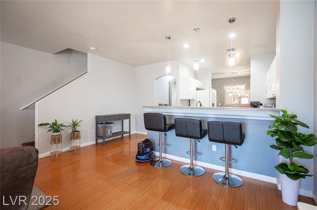 Beautifully Upgraded 3 Bedroom, 3 Bathroom Townhome for Lease in Las Vegas Now available for lease, this upgraded 3 bedroom, 3 bathroom townhome offers 1553 square feet of comfortable living in a well maintained community. Fresh updates throughout include stylish laminate wood flooring, recessed and pendant lighting, and freshly painted bedrooms and hallway. The kitchen features a full size stainless steel sink and opens to a bright, functional living area. Recent upgrades such as a new AC system installed in April 2025 and a water heater replaced two years ago provide efficiency and peace of mind. The private backyard has been remodeled with artificial turf and low maintenance landscaping, creating the perfect space for relaxing or entertaining. An attached garage adds convenience. Located near shopping, dining, and freeway access, this home combines style, comfort, and location in a move in ready lease opportunity.