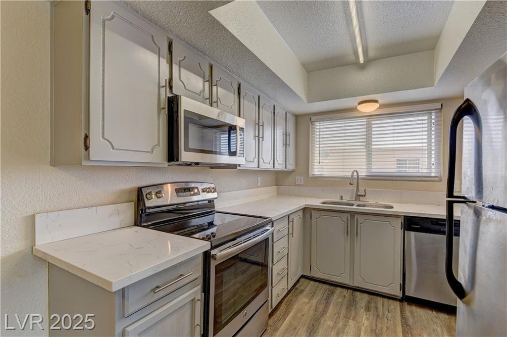 Welcome to this beautifully renovated 2-bedroom, 1-bath condo, offering modern living in a prime location just minutes from the iconic Las Vegas Strip. Freshly renovated with contemporary finishes throughout, including new flooring, and updated kitchen with stainless steel appliances. Living room with ample natural light, 2 well-sized bedrooms, situated just a short drive from the world-renowned Las Vegas Strip, providing easy access to entertainment, dining, shopping, and all the excitement Vegas has to offer.