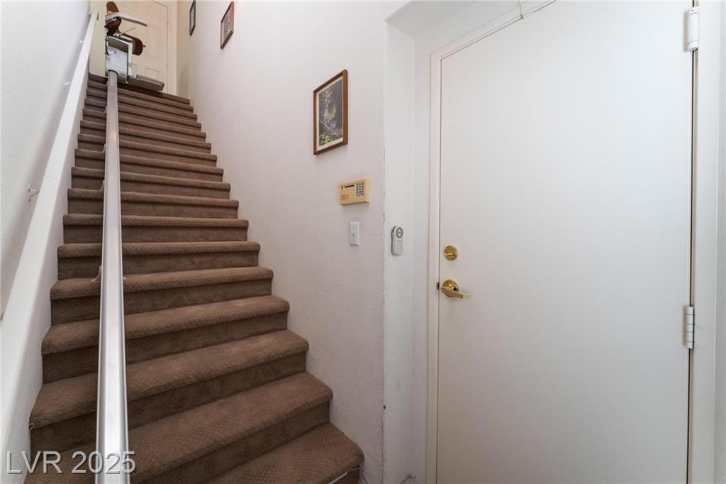 Welcome to the heart of Summerlin! This charming and well-kept 2-bedroom, 2-bath condo offers 1,410 sq ft of comfortable living with its classic original style and brand-new carpet in the bedrooms. Step inside to find a spacious layout that feels warm and inviting, with a large balcony perfect for morning coffee or evening relaxation. The original owner has lovingly cared for this home, and it shows. Convenient features include direct access to your own 2-car garage, a full-size driveway, and even a built-in Acme Stannah stair lift for ease and accessibility. Directly across the street, you’ll enjoy resort-style amenities—swimming pool, spa, and fitness center—just steps from your front door. Prime location! Minutes away from Red Rock Casino, Downtown Summerlin, Costco, Summerlin Hospital, endless dining options, and quick access to the 215. Whether you’re looking for comfort, convenience, or community, this home checks all the boxes!