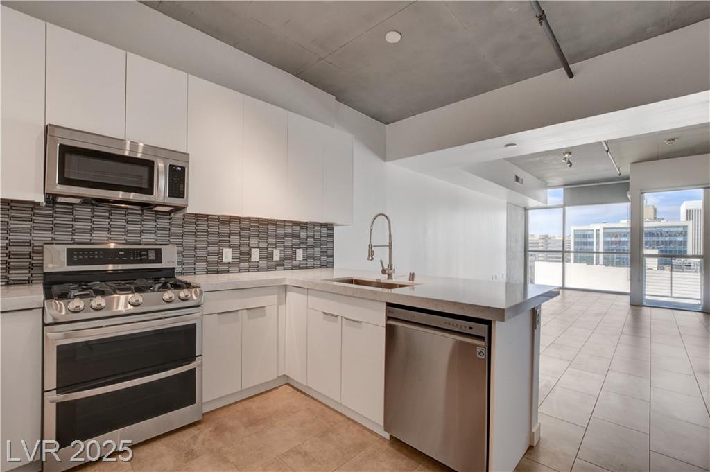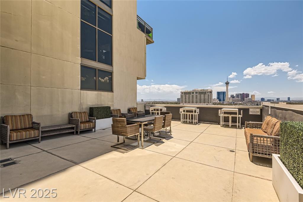 Loft-Style Condo in the Heart of Las Vegas! Experience the lifestyle you've always dreamed of in this 1-bedroom loft-style condo. With soaring 10-foot ceilings, bright finishes, and oversized picture windows and recessed Balcony overlooking the city. The open floor plan is designed for modern living and offers a host of impressive finishes throughout. The kitchen features ample storage, stainless steel appliances, a custom wine rack, and quartz countertops. The bathroom includes a garden tub, dual vanities and a generous walk-in closet, The JUHL offers an abundance of amenities, including a concierge service and a state-of-the-art two-story fitness center that overlooks a sparkling pool and the Las Vegas Strip. The resort-style pool area is the perfect place to relax, featuring an outdoor kitchen with grills, private cabanas, a cozy fireplace, and lush new landscaping. Wind down in the tranquil spa or enjoy a movie under the stars at the outdoor movie theater. Don't miss it!