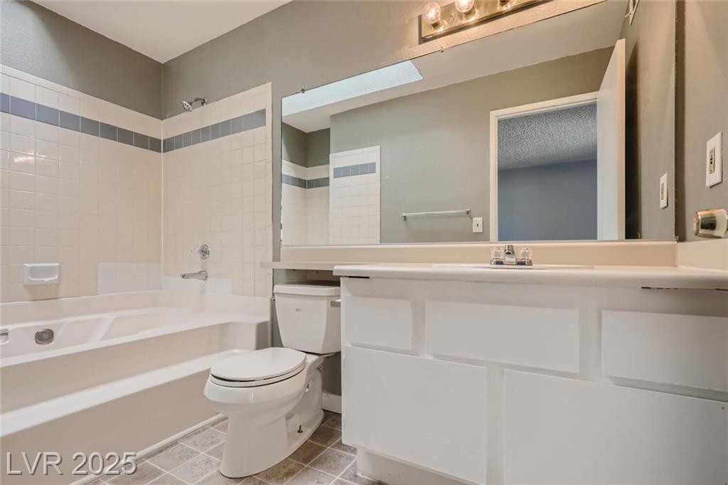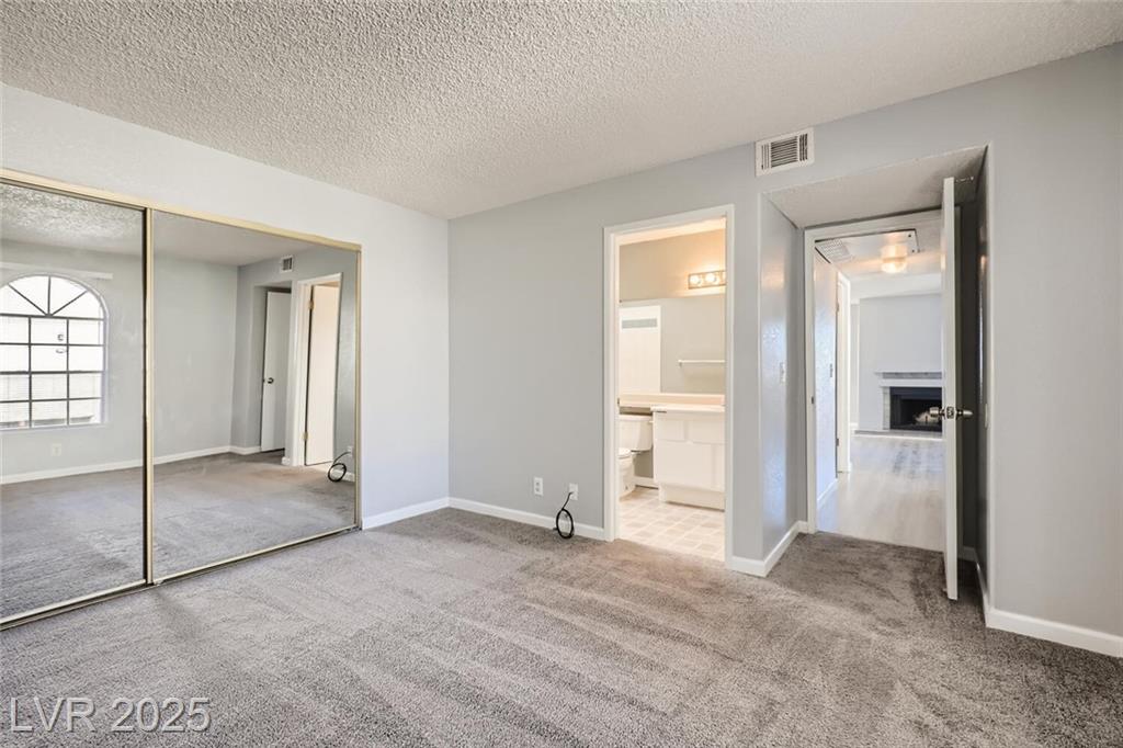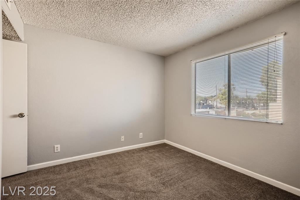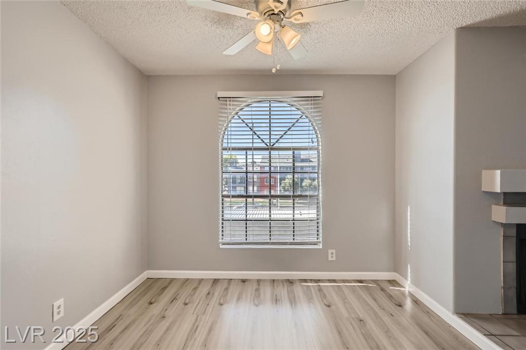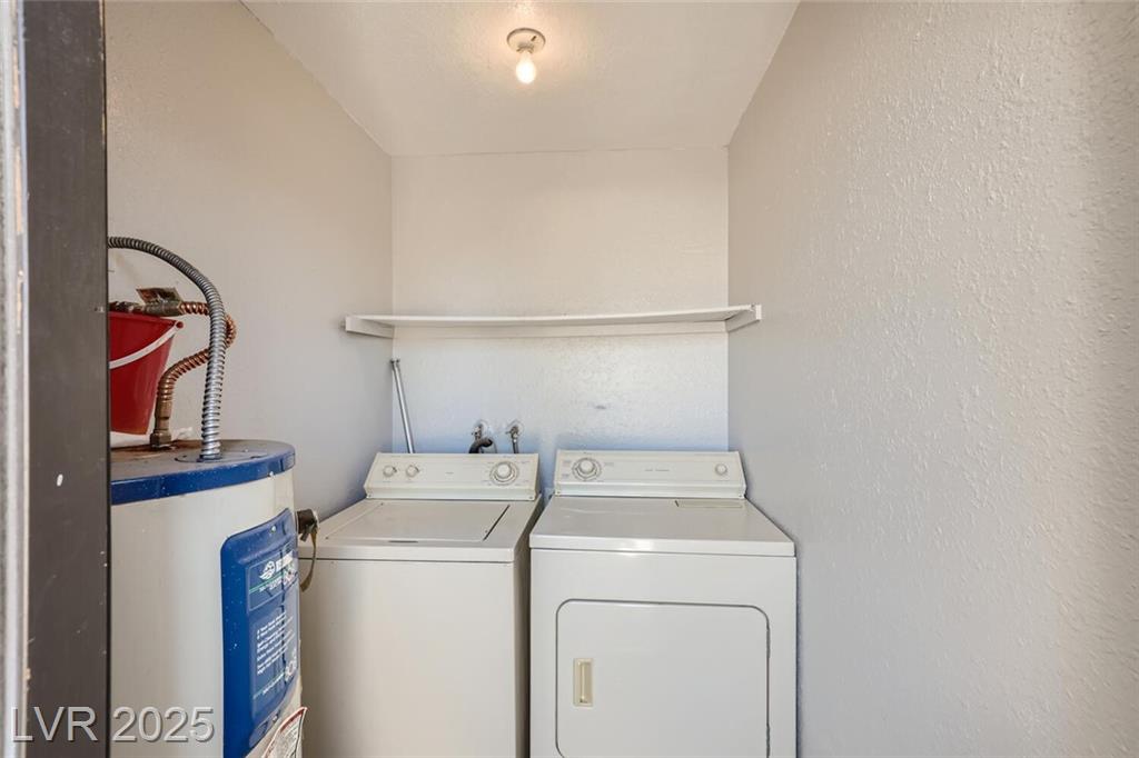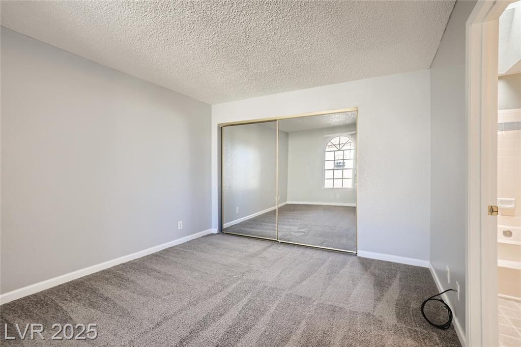 Charming 2nd-story condo in Las Vegas, NV. Situated in a gated community on the east side of the valley, residents enjoy access to a pool, spa, and convenient proximity to shopping, schools, and major highways. This 889 sq. ft. unit features an open floor plan with wood laminate flooring in the main living area, a cozy gas fireplace, ceiling fan with light, and window and door blinds throughout. The kitchen includes a breakfast bar, laminate countertops, and all brand-new appliances. The primary bedroom offers carpet flooring, mirrored closet doors, and a full en-suite bathroom with vinyl flooring and a tub/shower combo. The second bedroom is also carpeted with window blinds and is adjacent to a second full bathroom with similar finishes.