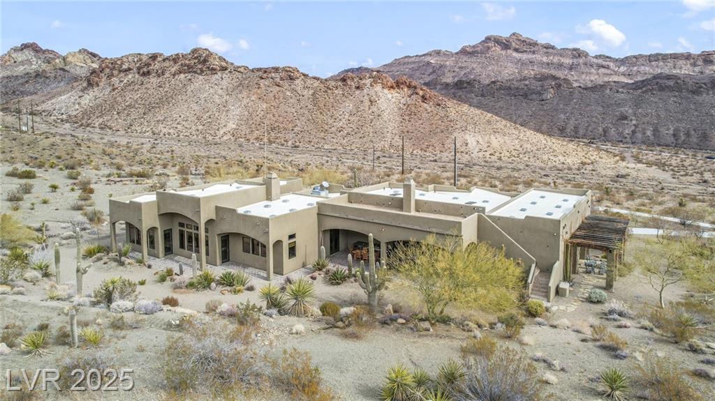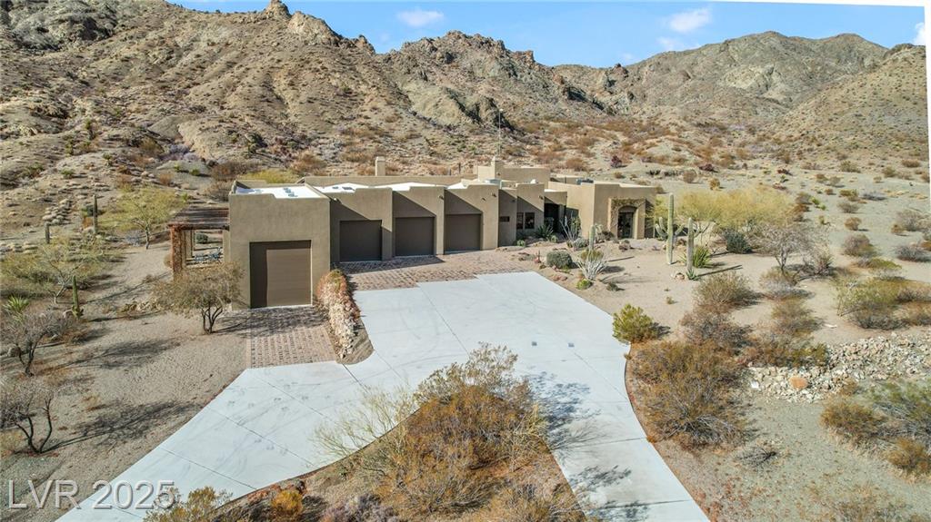 Located in one of Nevada’s oldest mining districts is a rare opportunity to own a piece of Nevada history in this Santa Fe style home. Showcasing superior construction, impeccable details and extraordinary craftsmanship, it perfectly combines luxurious comfort with its surrounding natural beauty. RV garage to envy + 5 car garage for all you toys. This sanctuary is the ultimate escape for the outdoor enthusiast, from its location of just under 9 miles to Nelsons Landing on the Colorado River, with the ability to launch and recover small water craft to kayaking, hiking, biking, road riding, off-roading, stargazing and wildlife watching. 360 degree mountains views, surrounded by 1000's of acres of BLM wilderness, Don't miss this rare opportunity to own you very own desert sanctuary .