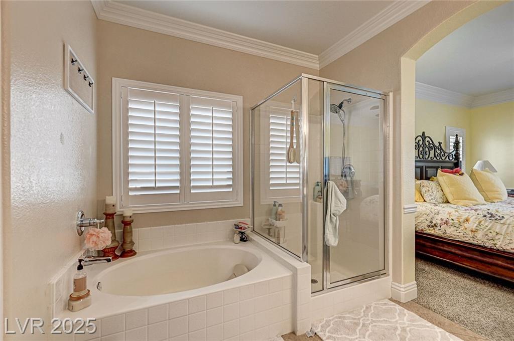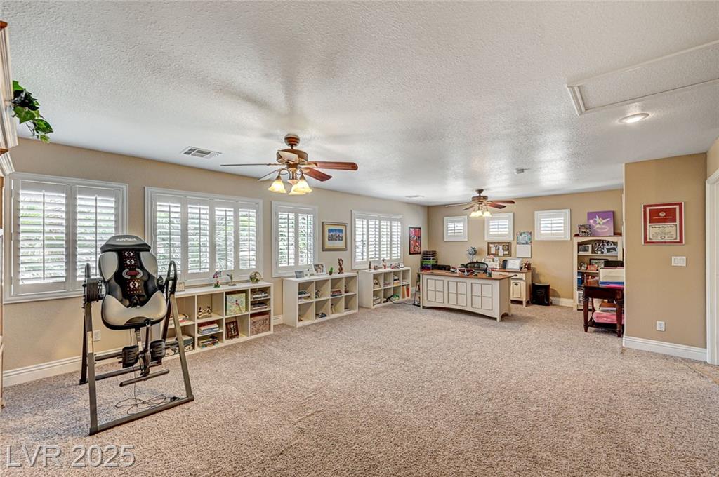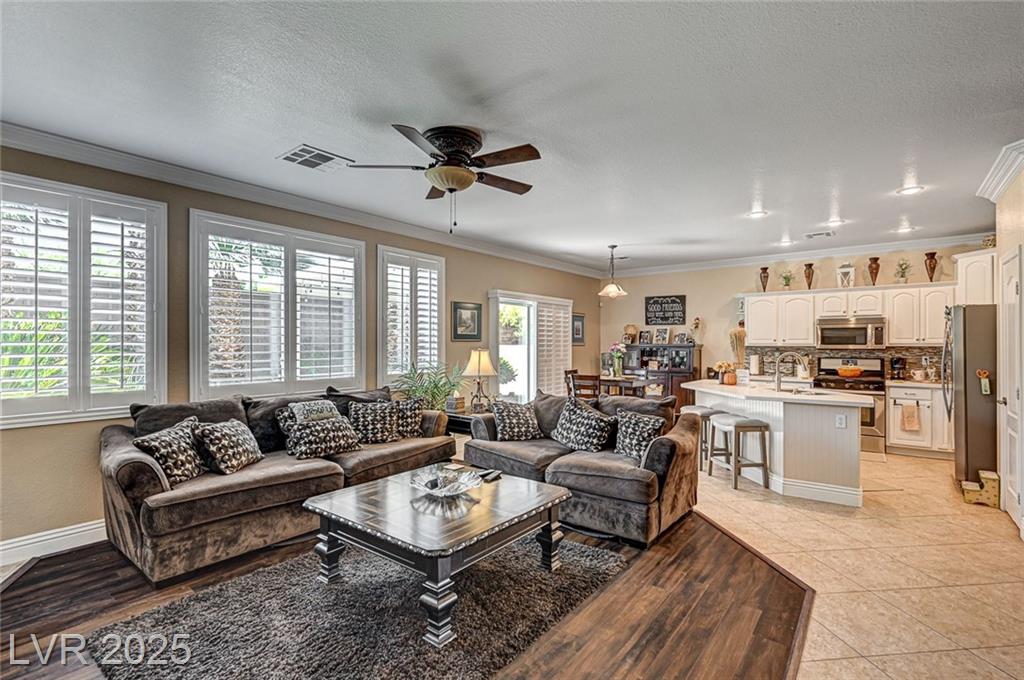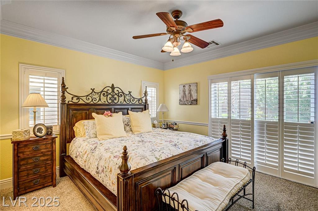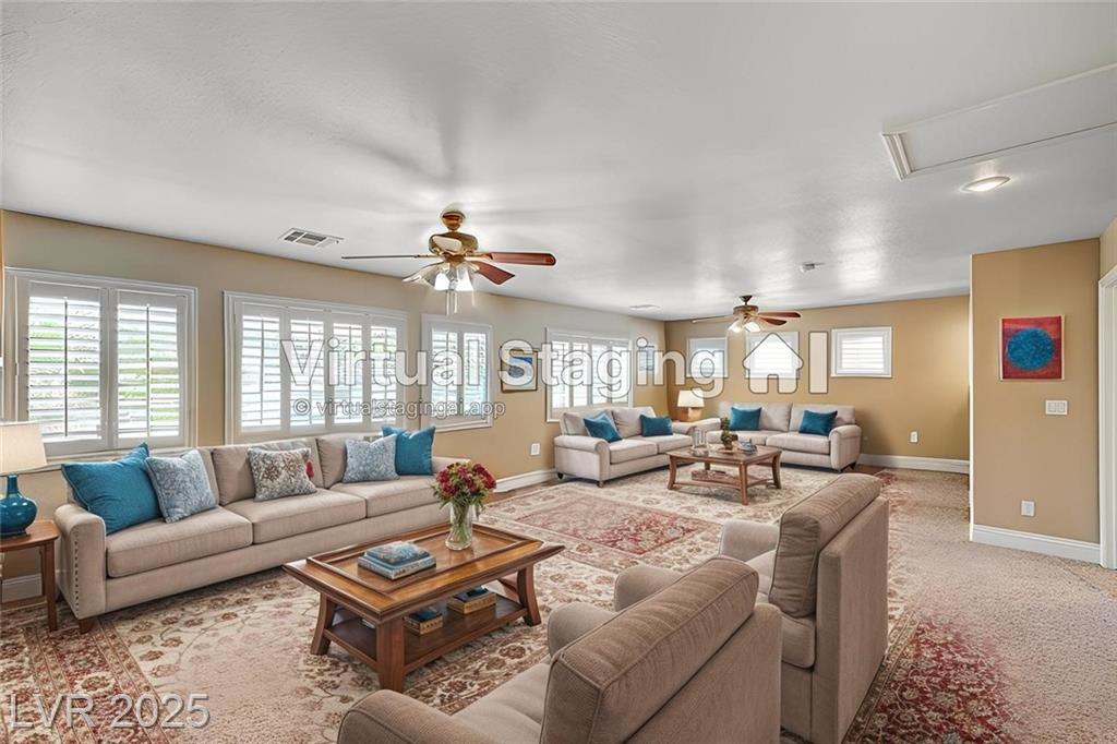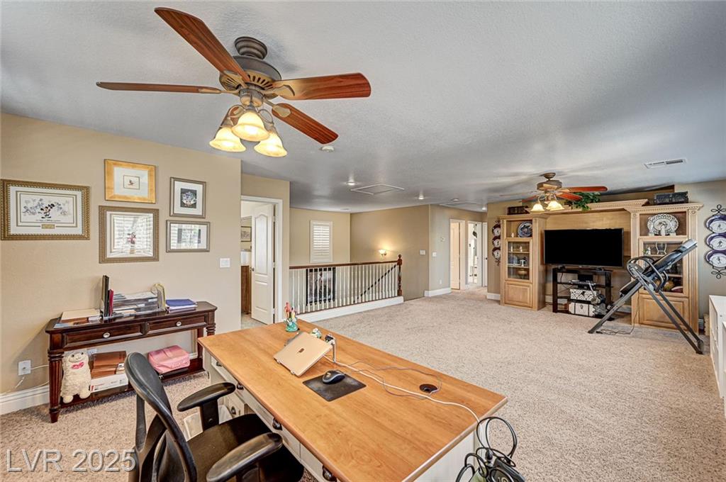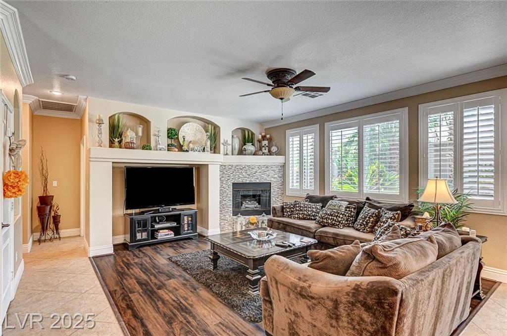 Immaculate 4 bedroom /3 Bathroom/3 Car Garage Nestled in Gated Lone Mountain Community.Pride of Ownership !!!Cute Front Courtyard Entry.Laminate Wood Floors,Tile in Main Downstairs Living area with a fireplace.Primary Bedroom Downstairs with Access to the Back Yard .Double sinks and Separate shower/Tub in the Master Bath.Huge Loft Upstairs can be used to play Billiards ,Games or as an office.Chefs Kitchen with Upgraded Custom Cabinets ,Quartz Counters,Large Island,Breakfast Bar & Pantry .Crown Molding,Custom Paint,Plantation Shutters Thru-out ~Key Less Entry~Beautifully Maintained Landscaped Backyard with Patios to relax with a Mojito after a long Days Work.Your Clients will not be disappointed.Bring A toothbrush & Move in Today !!!
