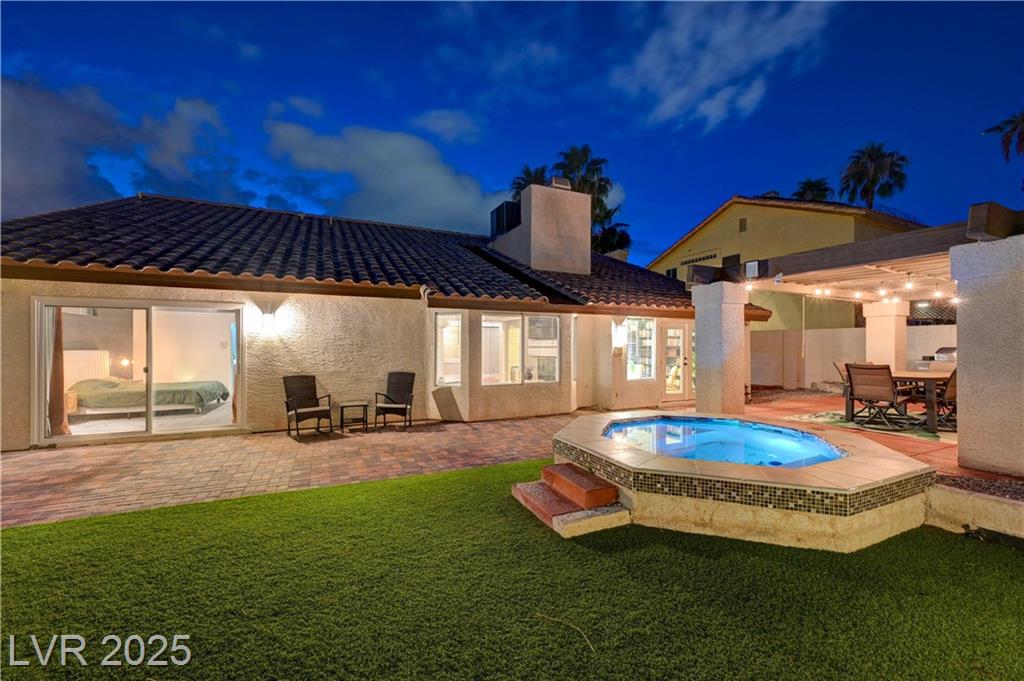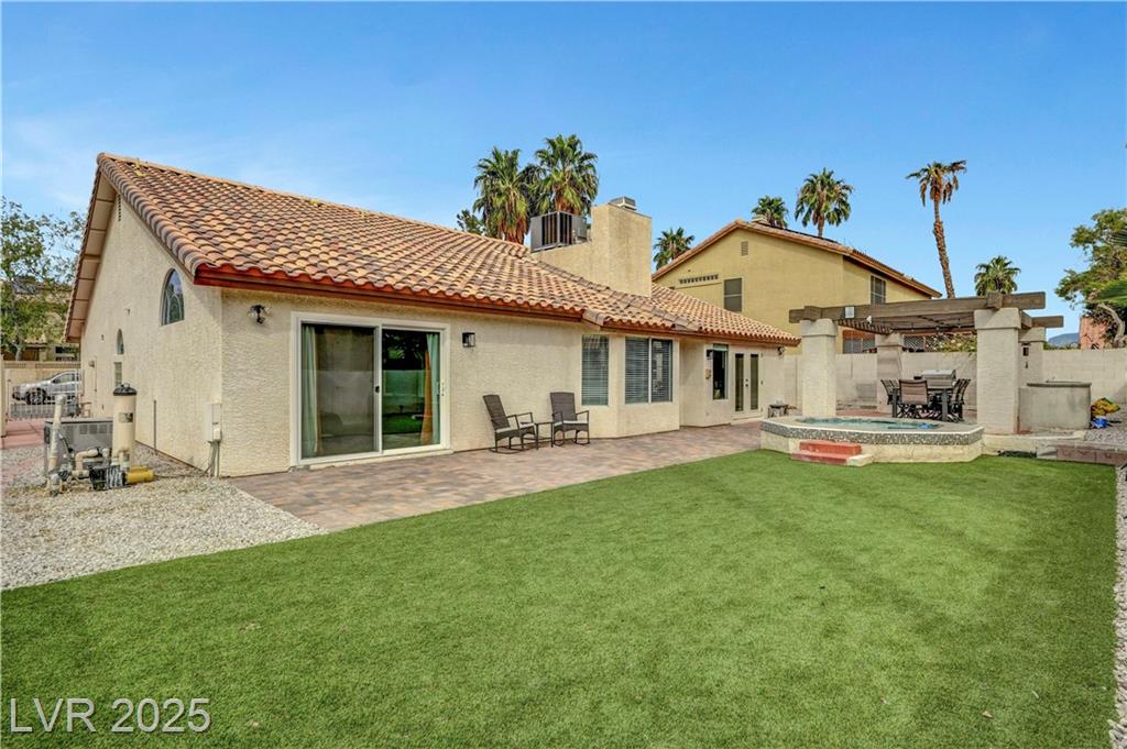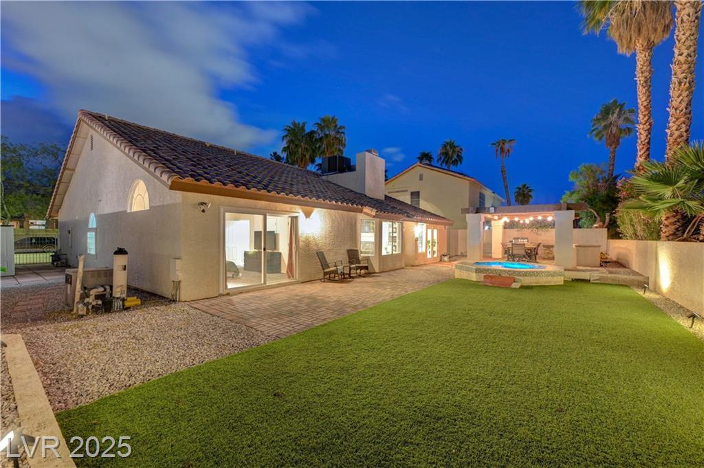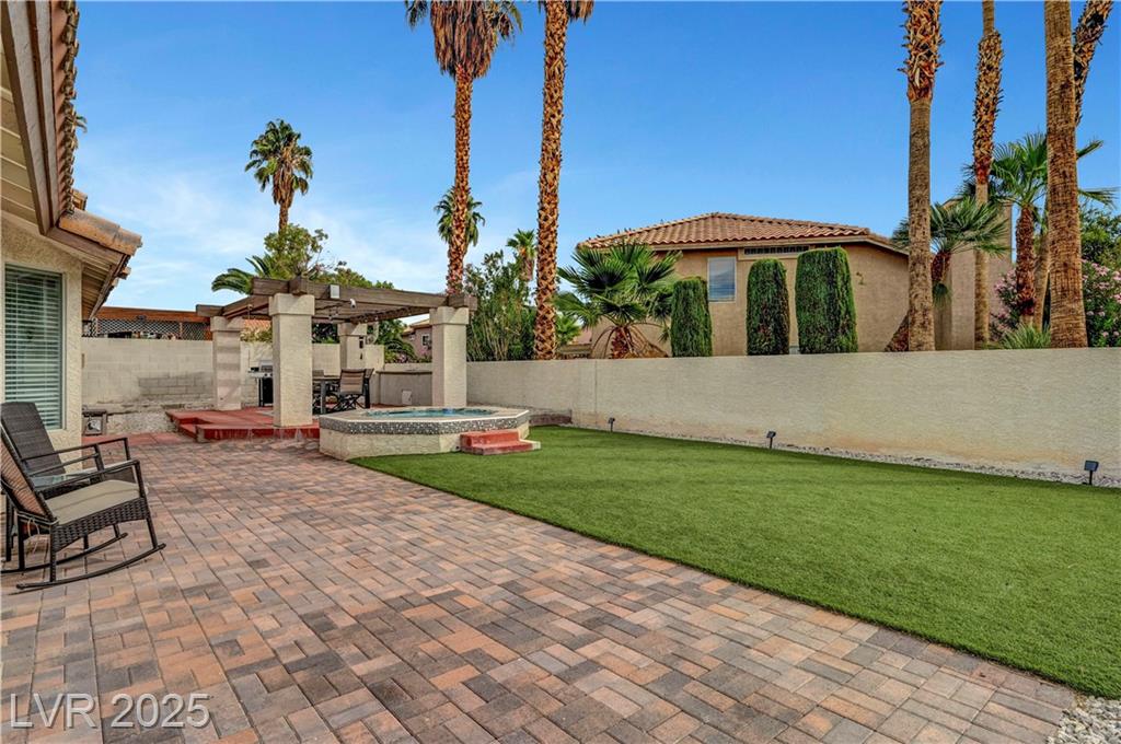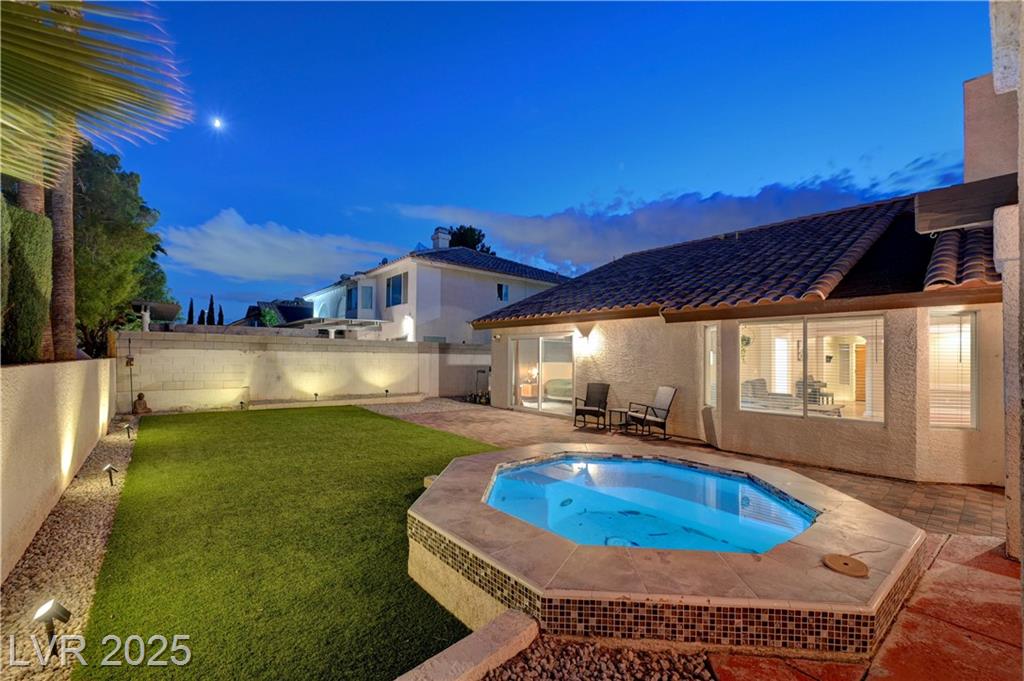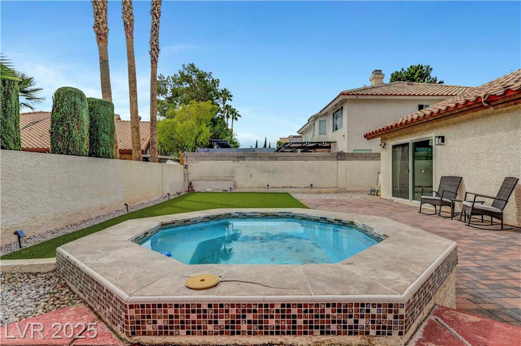 Step into this stunning single-story home where comfort and style come together. Featuring 3 bedrooms, 2 baths, and 2,062 sq ft of living space on a generous 6,970 sq ft lot, this home offers so much natural light and the perfect blend of timeless elegance and functionality. Enjoy upgraded hardwood flooring, granite countertops, and a cozy double sided fireplace in the open great room. The primary suite opens through French doors to a private backyard retreat complete with an in-ground spa, turf and desert landscaping—ideal for entertaining or unwinding. HVAC system replaced in 2024, water heater in 2023, pool pump for the jacuzzi in 2024, and new sliding doors installed. Major upgrades include a new HVAC system (2024), water heater (2023), pool pump for the spa (2024), and new sliding doors.