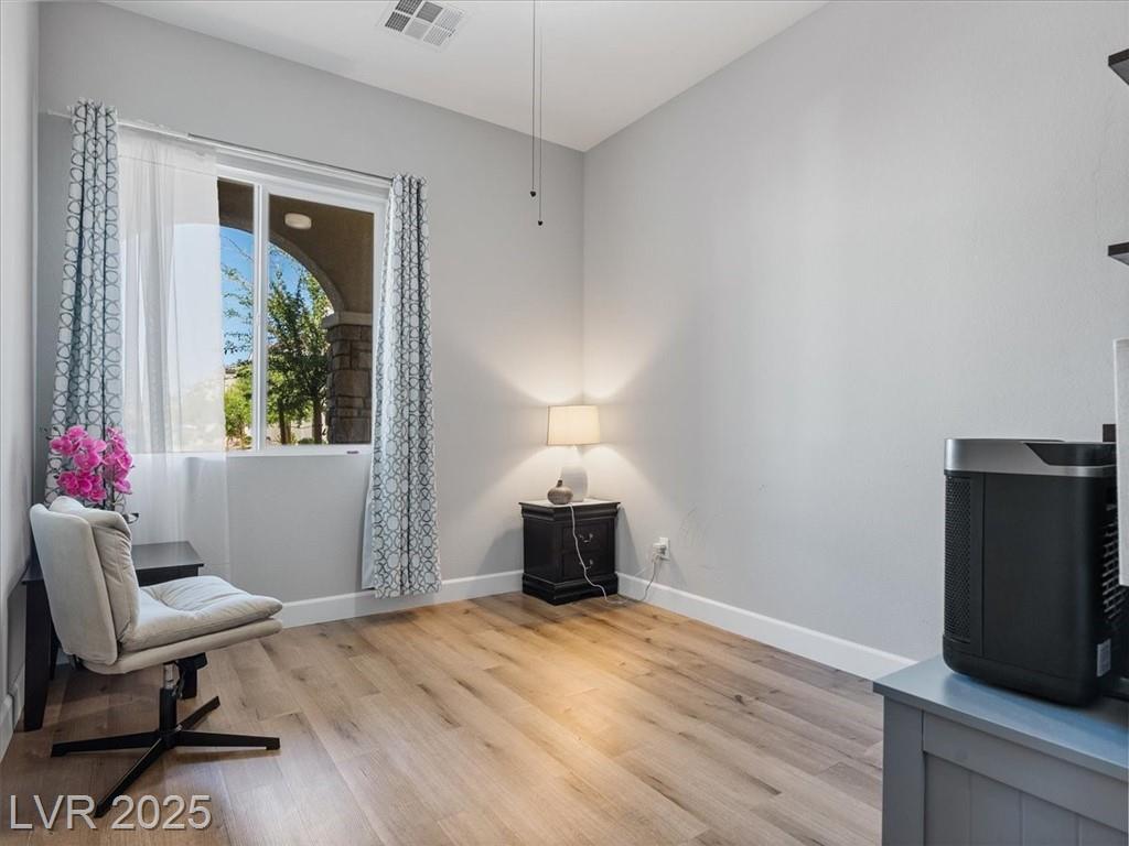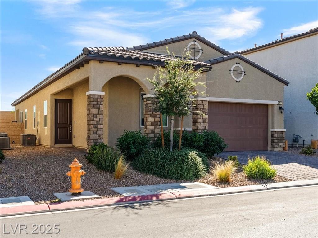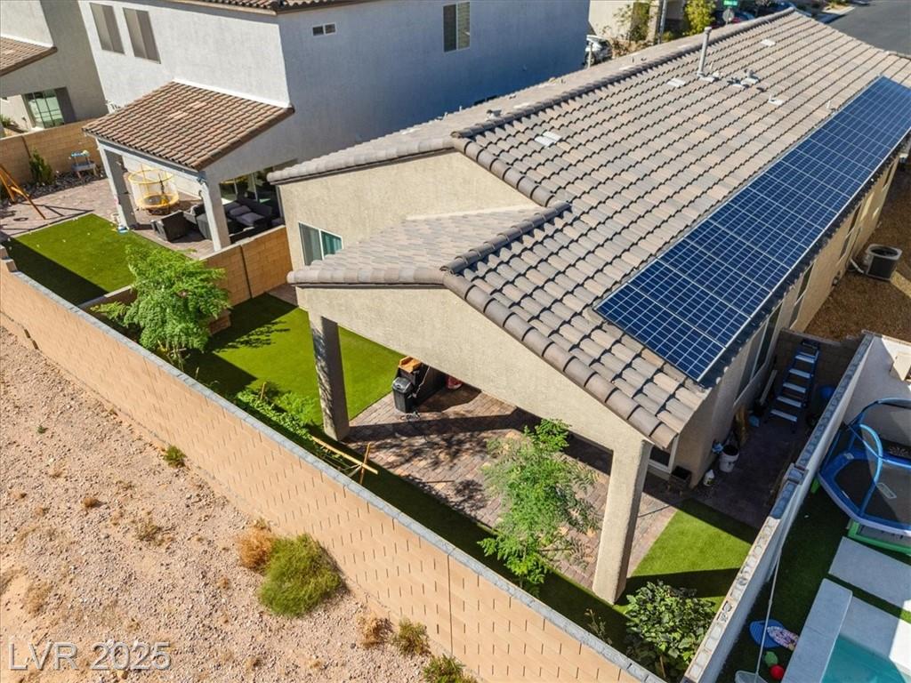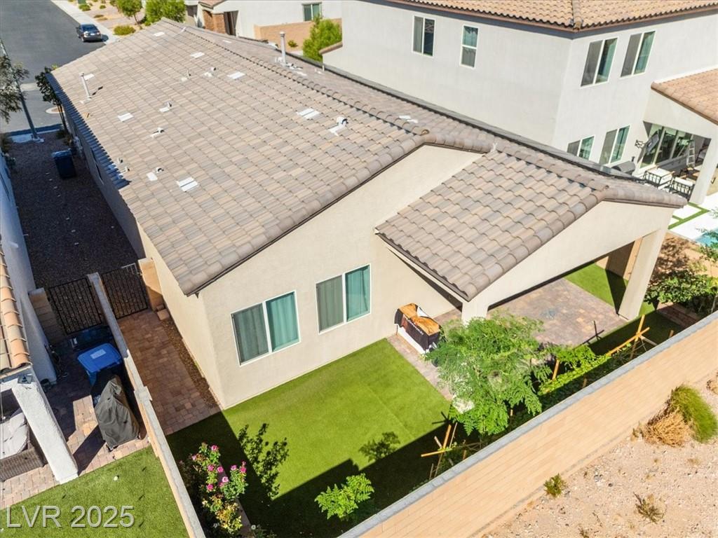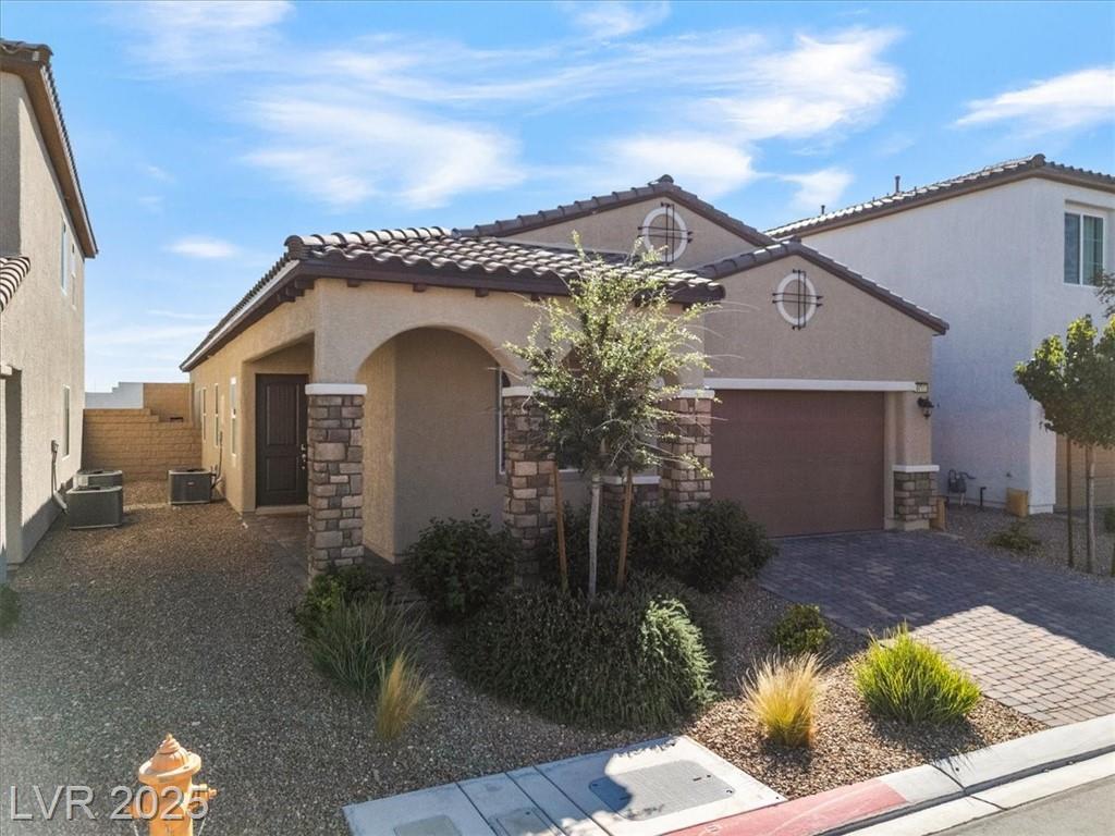Beautifully maintained home in Southwest, Las Vegas next to Rhodes Ranch! Features include 10ft ceilings, quartz countertops with island, gas cooktop, plenty of cabinets, tile & LVP flooring, and a covered patio. Enjoy energy savings with leased solar. Prime location near Durango Casino, UnCommons, freeway 215, shopping, dining & more—a perfect blend of comfort and convenience!