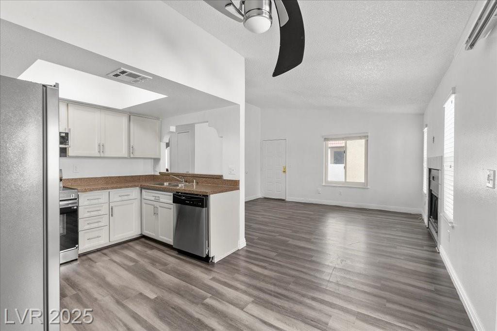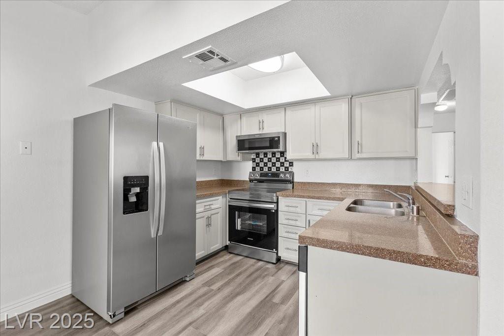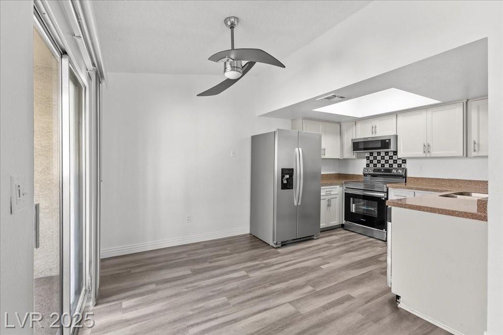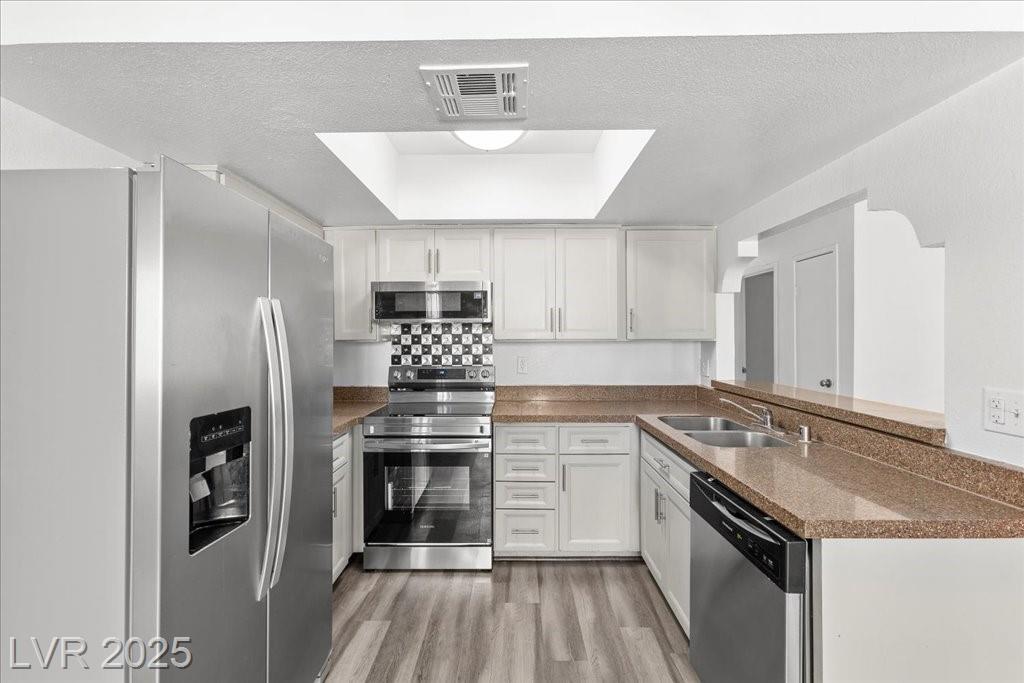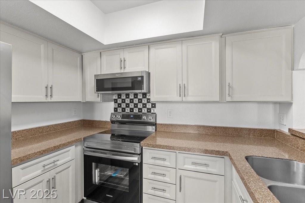 Prime Las Vegas location just east of The Strip! This Newport Cove, Stylish 2-Bedroom, 2-Bath, 2-balcony Condo Near UNLV, is conveniently located just off Tropicana. Discover comfort and convenience in this beautifully remodeled two-bedroom, two-bath condominium. Highlights of this home include tasteful modern renovations: Upgraded ALL stainless steel appliances, including a NEW Frigidaire dishwasher, NEW Samsung range/cooktop. This upstairs corner unit comes complete with a Cozy fireplace, sleek upgraded ceiling fan, and a smart Nest thermostat. Primary Suite features a private covered balcony, a dual vanity bath with a large soaking tub, and a spacious closet. Community Amenities: Enjoy the pool, hot tub, and open parking in a well-maintained landscaping in a quiet setting. Conveniently located close to dining, shopping, public transit, and the airport, this condo offers both ultimate convenience. Don’t miss the opportunity to own this move-in-ready condo in the heart of Las Vegas!