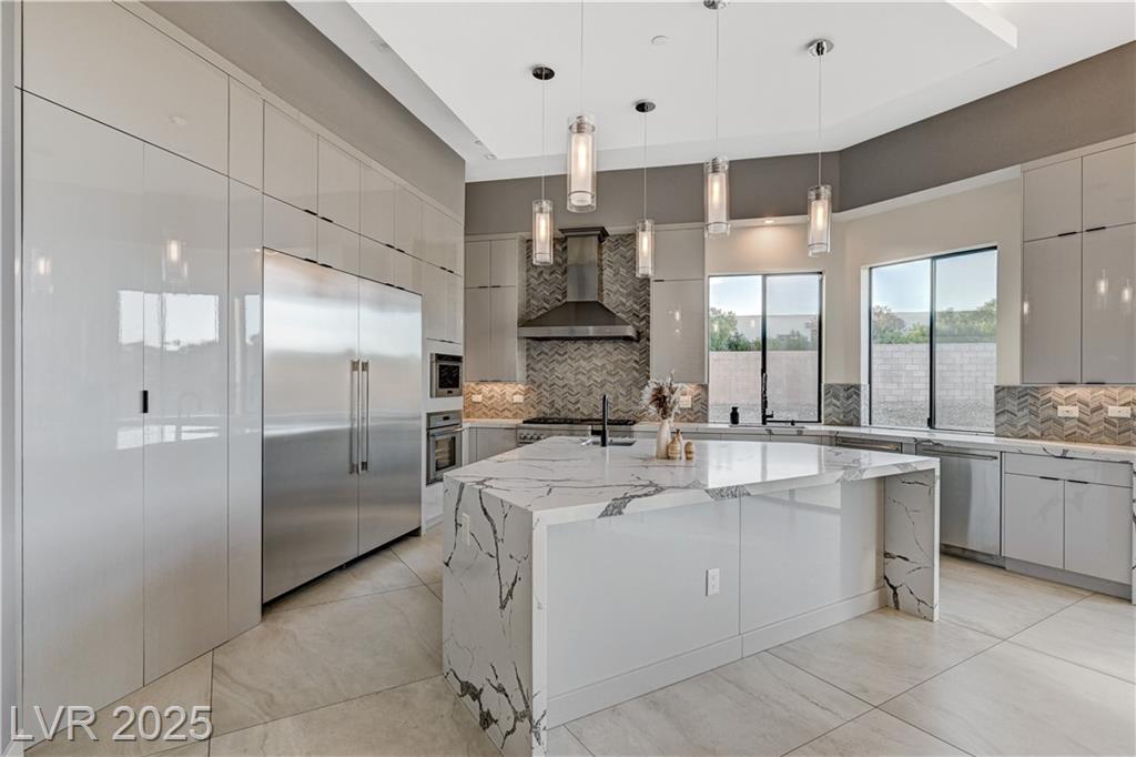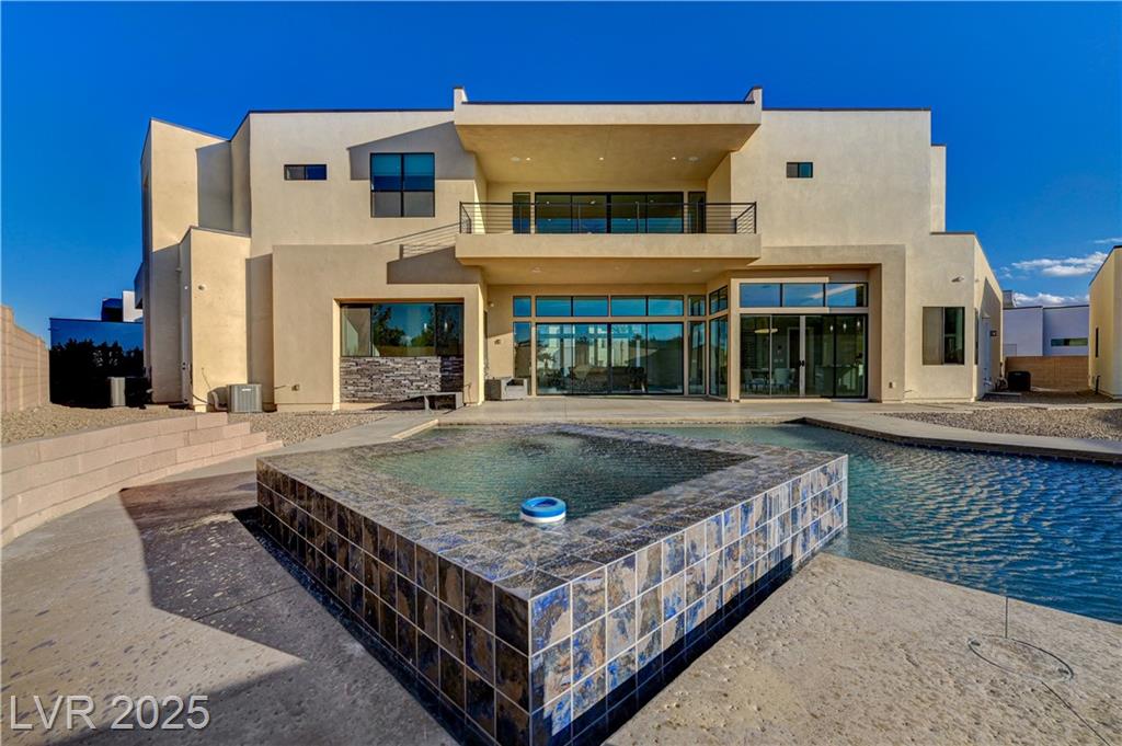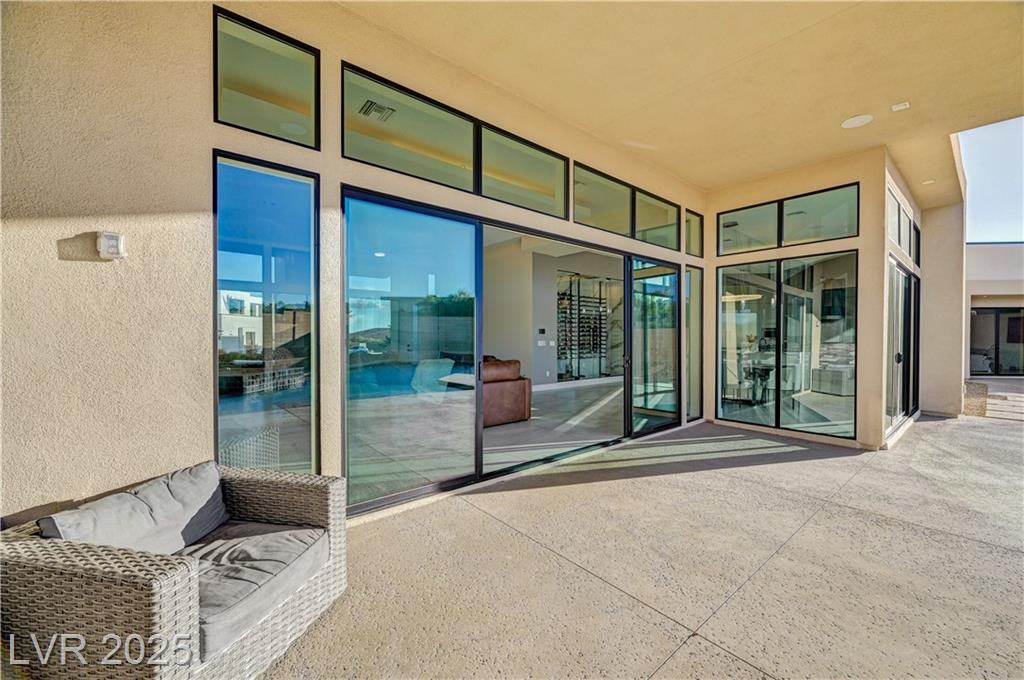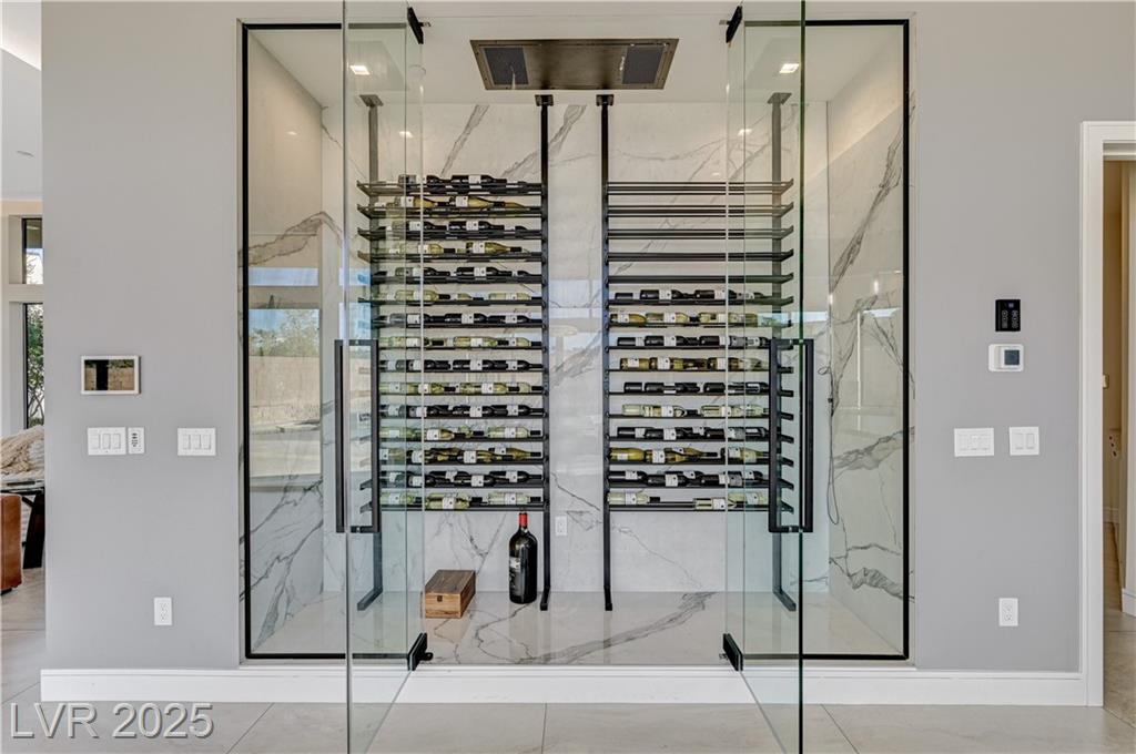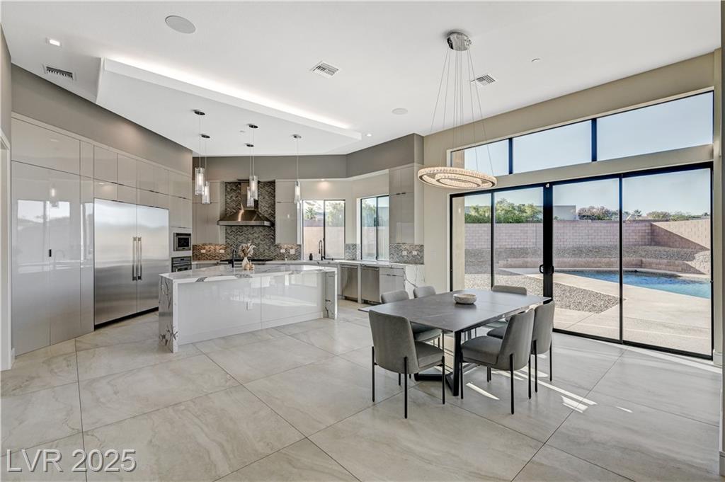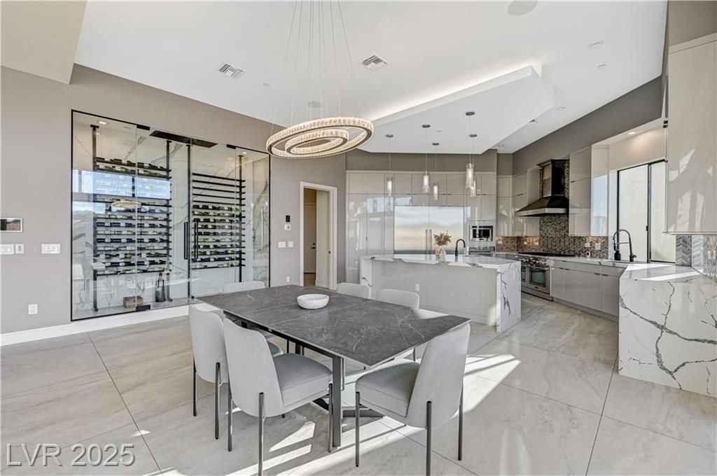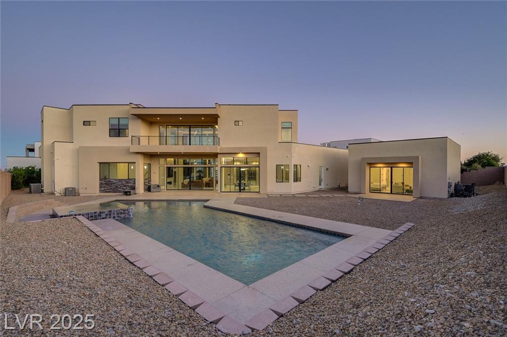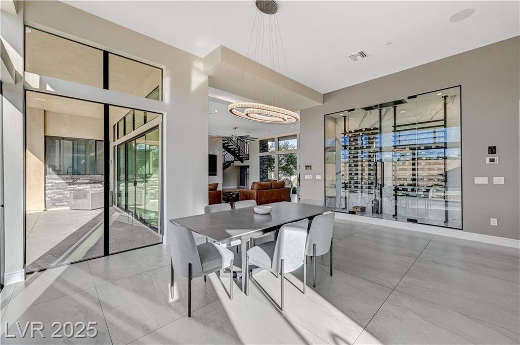 Behind private gates in Centennial Hills, this ultra-modern estate showcases Rose Builders’ coveted Rembrandt floorplan—one of only four in an exclusive gated enclave. Spanning almost 7,000 sq. ft. of sleek modrn living, this home features soaring ceilings, imported tile floors, and dramatic floor-to-ceiling windows throughout. The gourmet kitchen stuns with Thermador appliances, custom cabinetry, and a striking waterfall island. Additional highlights include a 100-bottle wine room, formal living room with linear fireplace, and a loft-style media room. The residence offers 7 ensuite bedrooms and 8 bathrooms, including a luxurious detached casita with washer and dryer and large walk in closet. The first level primary suite is a tranquil retreat with spa-inspired bath and jetted tub. Outside, the private yard frames a resort-style pool perfect for entertaining beneath the stars. Contemporary luxury, minutes from Downtown Summerlin, world class shopping, entertainment and fine dining.