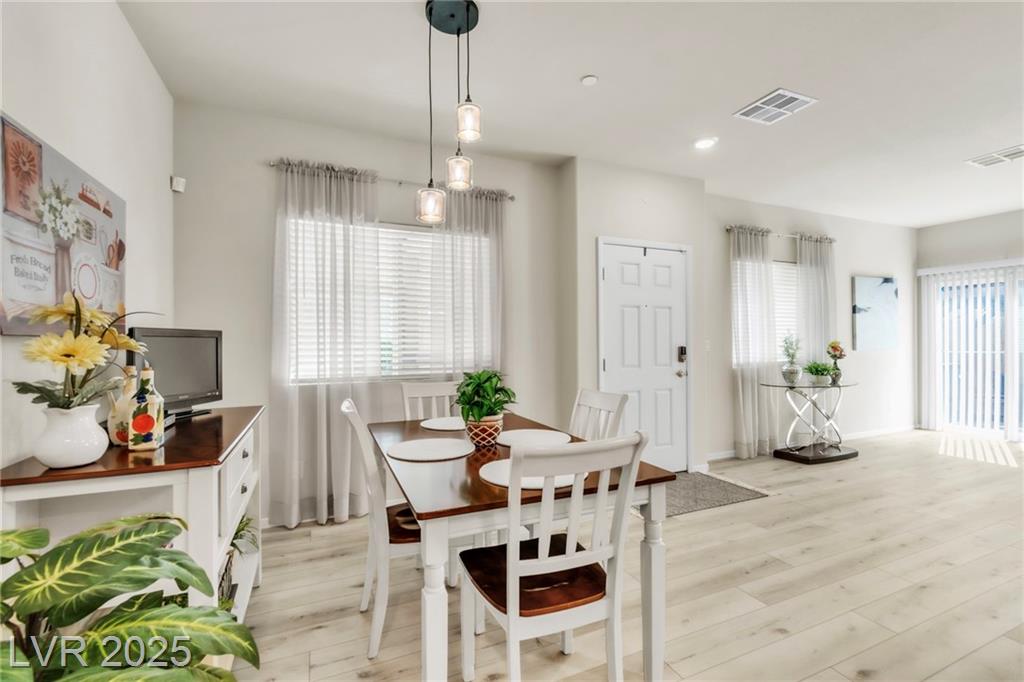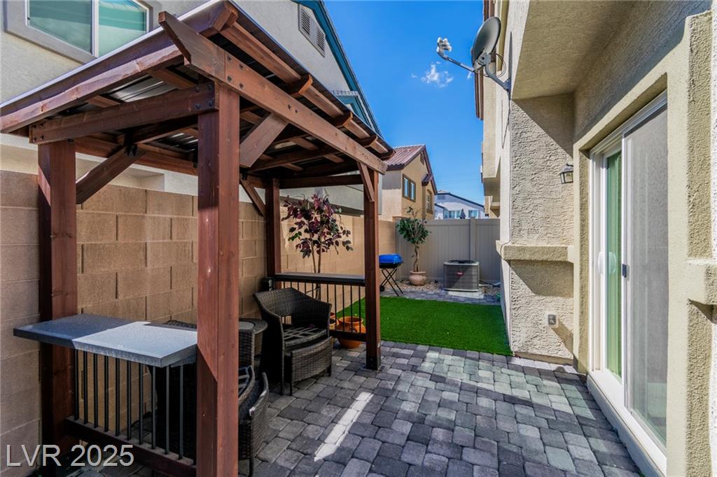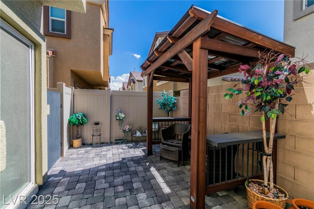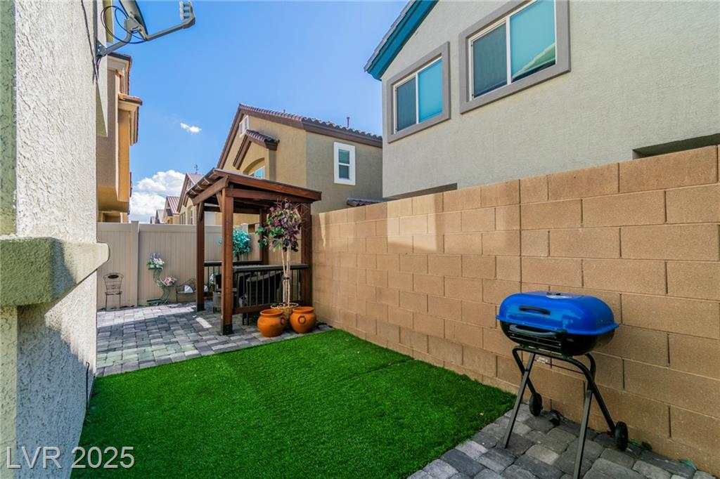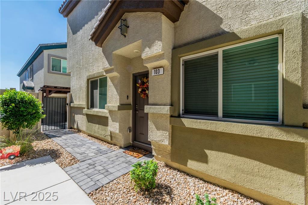 Stylish & turnkey Valley Vista townhome with $20K in upgraded flooring! This 3-bedroom, 2.5-bath, 2-car garage home offers a bright, inviting layout with a generous living area, flexible dining space, and a well-appointed kitchen featuring granite counters, upgraded cabinetry, stainless appliances, and an oversized prep island. Upstairs, all bedrooms are thoughtfully placed for privacy, including a comfortable primary suite. Outside, enjoy a low-maintenance backyard with pavers, turf, and a gazebo — perfect for weekend gatherings or quiet evenings. The gated neighborhood includes a pool, playground, dog park, and direct access to Galaxy Park with sports courts (including the rising trend of pickellball courts), picnic spots, and play areas. Conveniently close to shopping, dining, Aliante Casino, and quick 215 access.