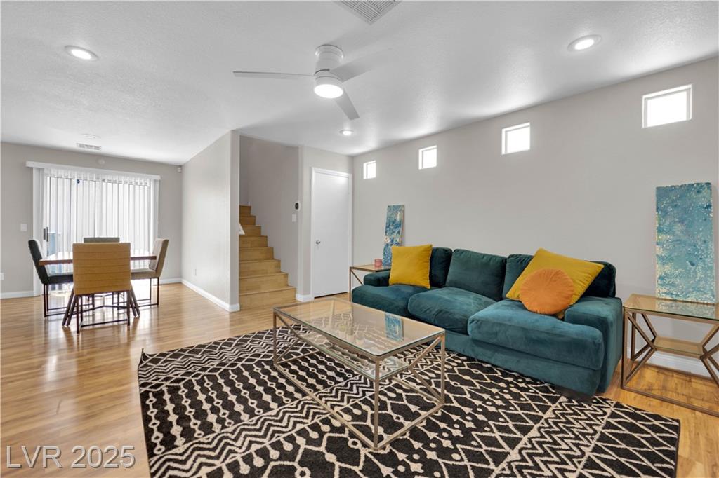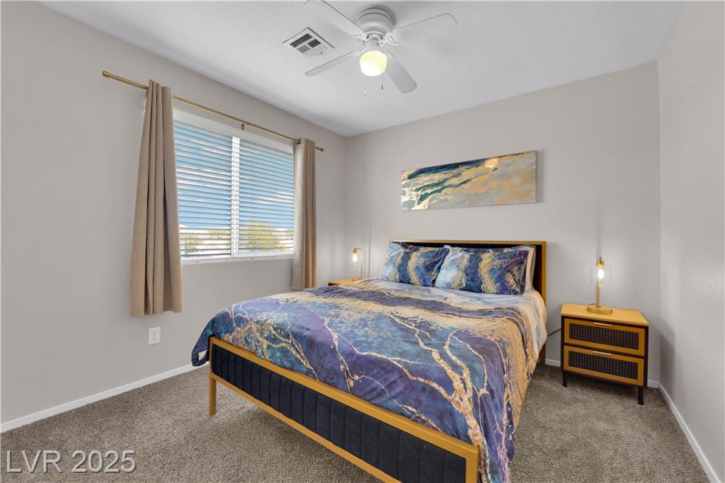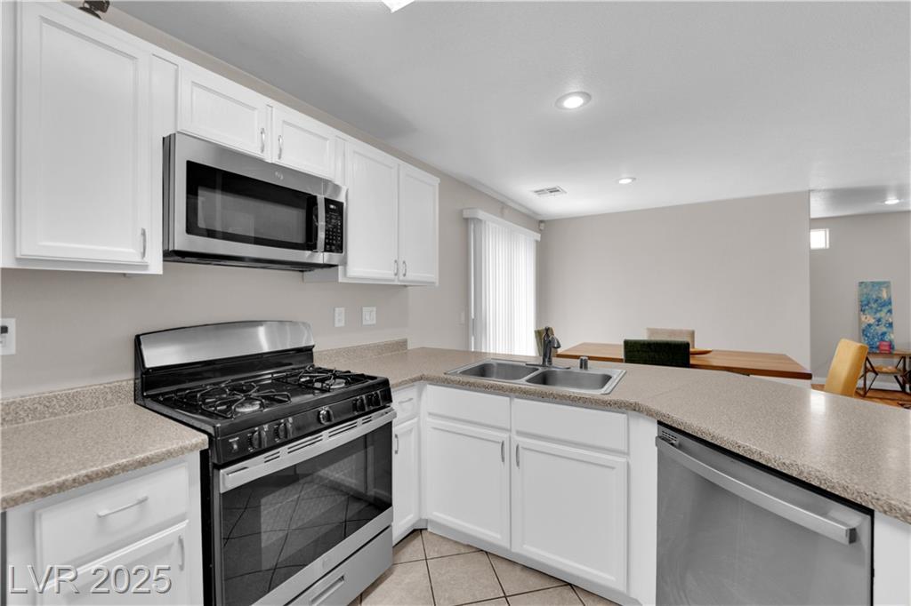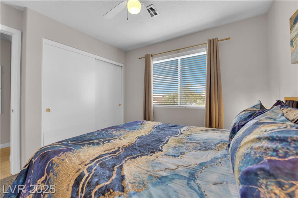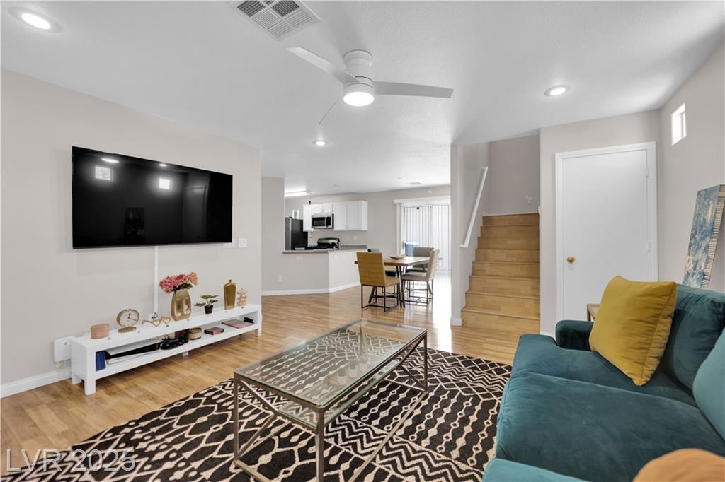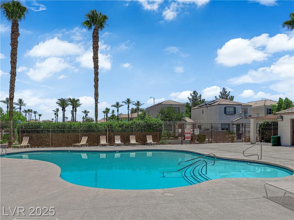 Amazing location! Located in the desirable Silverado Ranch area, this home offers easy access to freeways, shopping, and more. The community features great amenities, including a pool and playground for residents to enjoy. Step inside this move in ready home that includes stainless steel appliances, a spacious downstairs family room, and a cozy breakfast nook. You'll also enjoy direct access to a private, fenced side yard and backyard space. Upstairs, the generous primary bedroom features a ceiling fan and mirrored closet doors, while both secondary bedrooms also come equipped with ceiling fans. The attached one-car garage includes sleek epoxy-style flooring and opens directly into the home. Plus, there's an additional driveway on the opposite side, offering extra parking convenience. Come see this home today!
