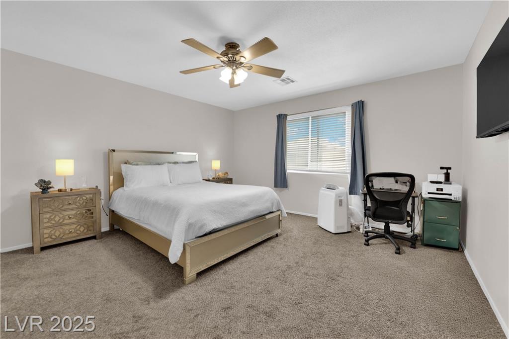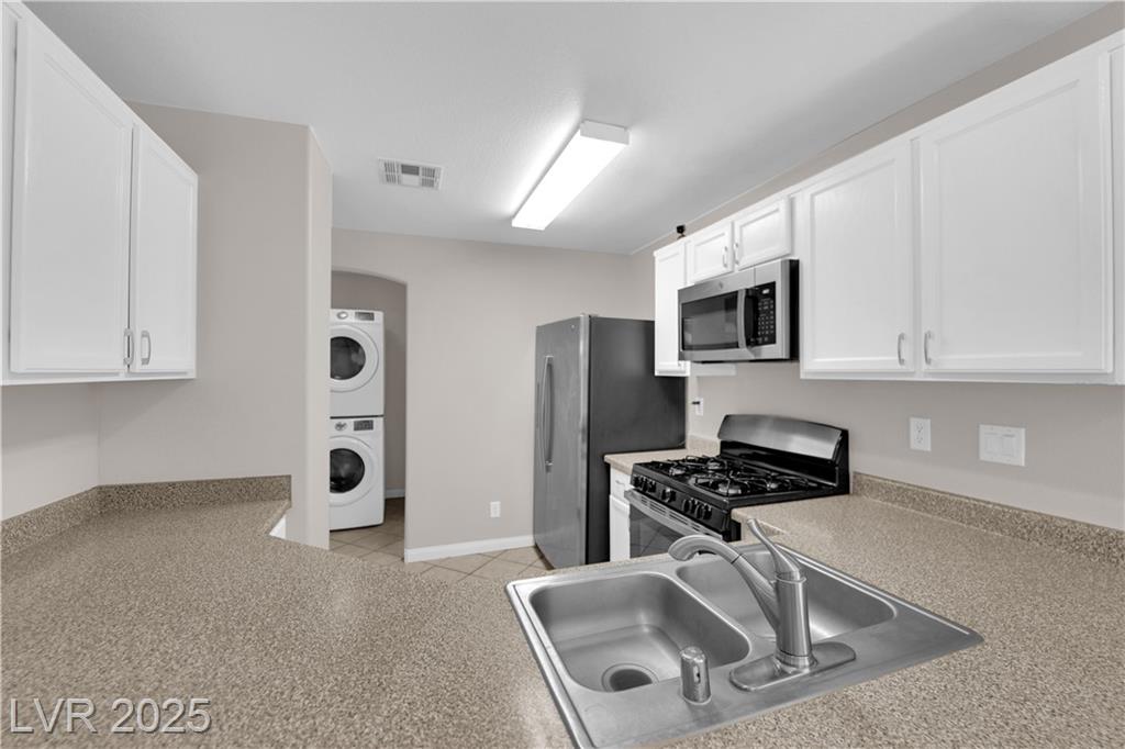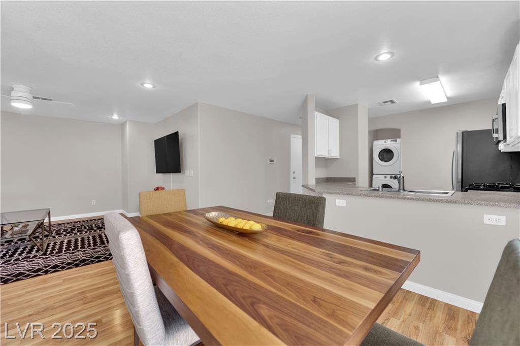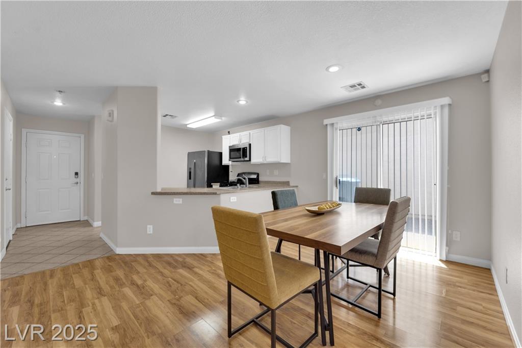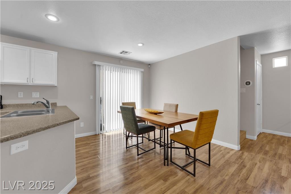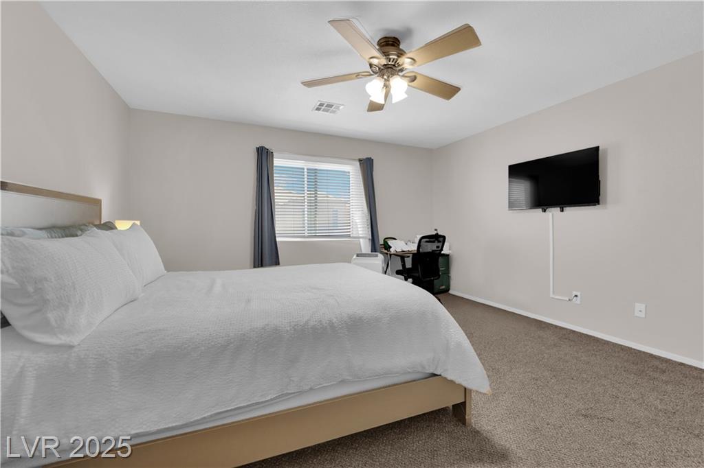 Amazing location! Located in the desirable Silverado Ranch area, this home offers easy access to freeways, shopping, and more. The community features great amenities, including a pool and playground for residents to enjoy. Step inside this move in ready home that includes stainless steel appliances, a spacious downstairs family room, and a cozy breakfast nook. You'll also enjoy direct access to a private, fenced side yard and backyard space. Upstairs, the generous primary bedroom features a ceiling fan and mirrored closet doors, while both secondary bedrooms also come equipped with ceiling fans. The attached one-car garage includes sleek epoxy-style flooring and opens directly into the home. Plus, there's an additional driveway on the opposite side, offering extra parking convenience. Come see this home today!