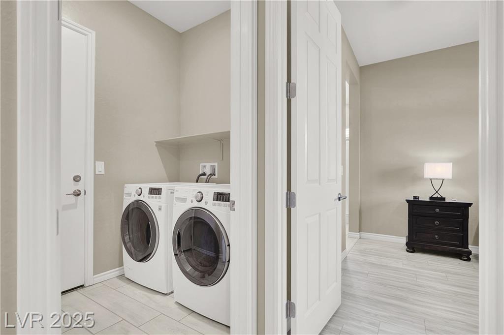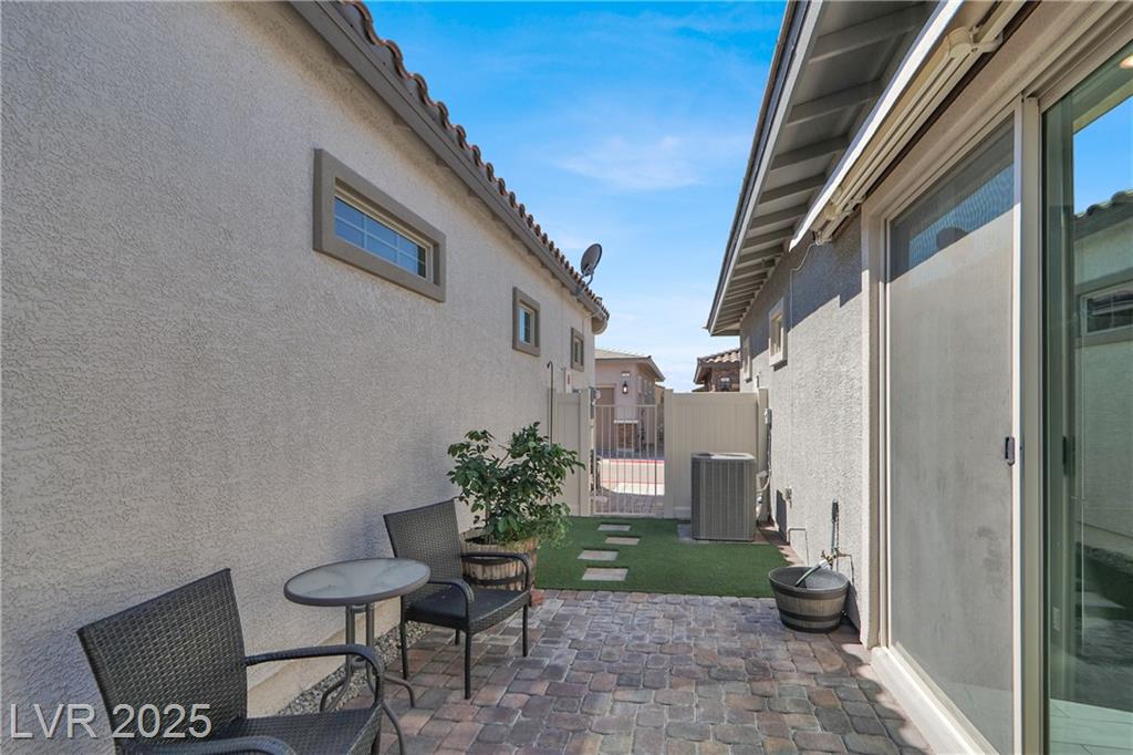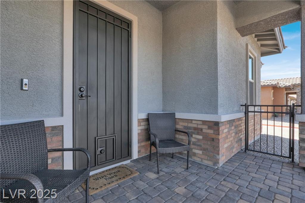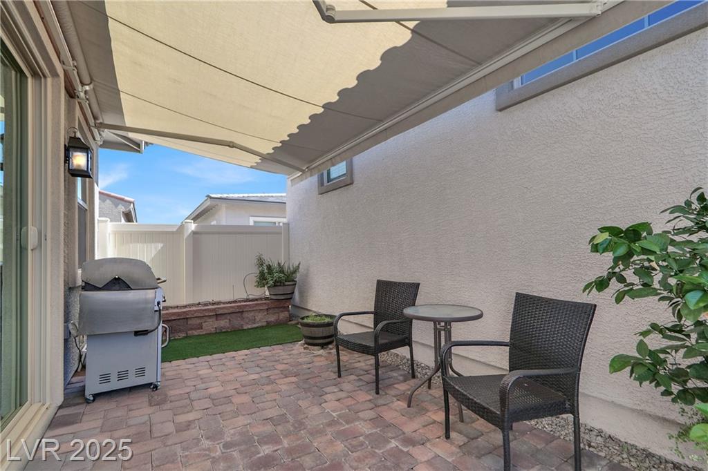 Welcome to this stunning Lennar home located in the highly sought-after 55+ guard-gated active lifestyle community, Heritage at Cadence! This popular floor plan provides plenty of natural light, high ceilings, and modern luxury finishes. The open-concept kitchen features all-new stainless appliances (upgraded from the builders), custom pull-outs, R/O system, and granite countertops. Throughout the home you’ll find beautiful wood style tile flooring- no carpet- fresh upgraded SW interior paint, custom front railing, fence, and security screen door that your pups would surely love! The premium end-cap lot offers added curb appeal and convenience, while the backyard boasts a custom retractable awning and turf for outdoor enjoyment. Garage has overhead and side storage, plus a water softener. Residents enjoy resort-style amenities including a 22,000+ sq. ft. clubhouse, fitness center, indoor/outdoor pools, pickleball, trails, and a vibrant social calendar. This home is ready for you!