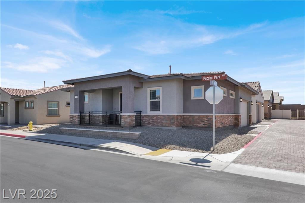 Coming from 215 E take Lake Mead for 4 miles, left onto Cadence Crest, Right onto New Heritage St, Show ID to guard gate and enter community. Left onto Open Hill, Right on Park Bend, Left onto Heritage Bridge, Right on Brahms Field, Left on Iris Desert, Home on Left, 762