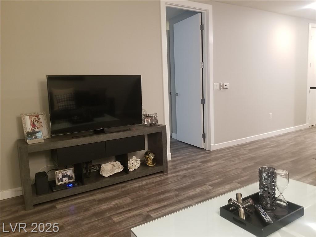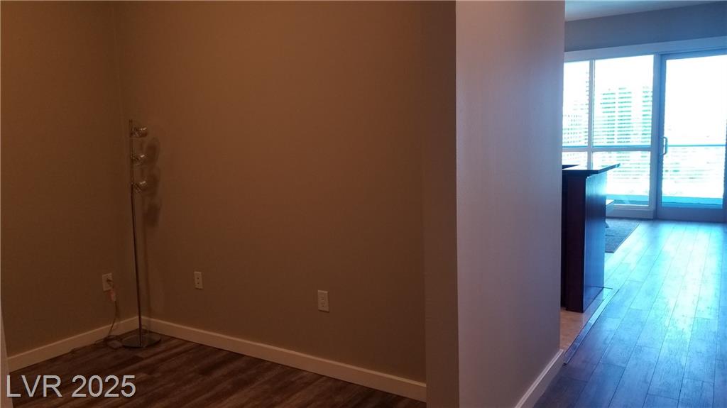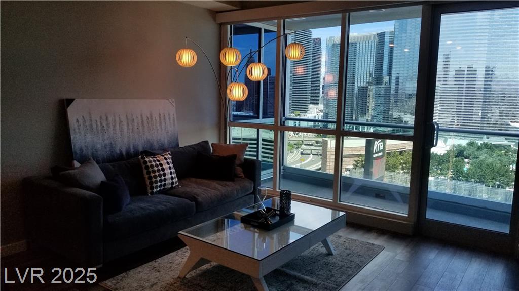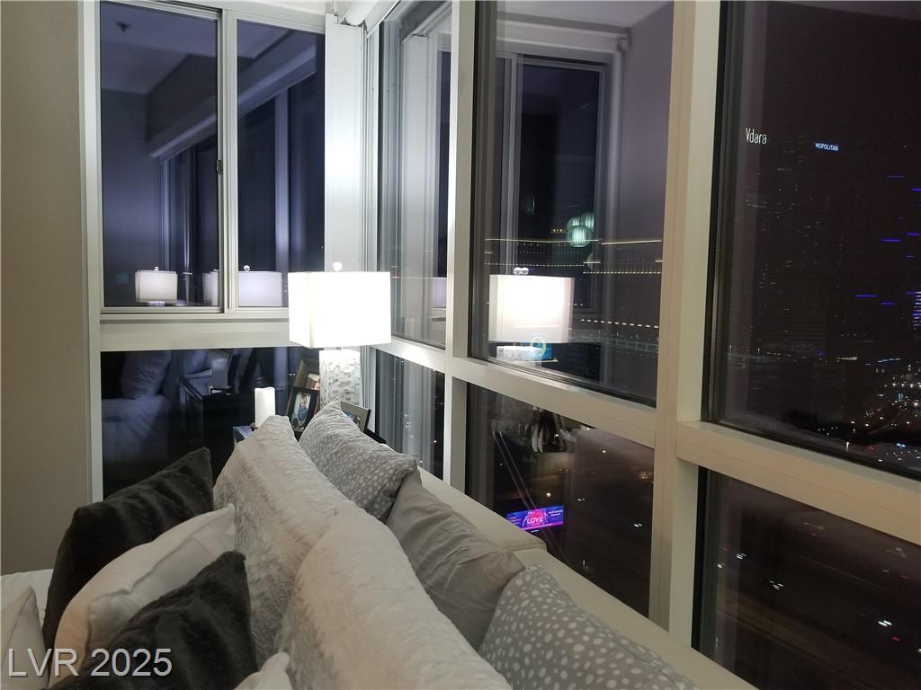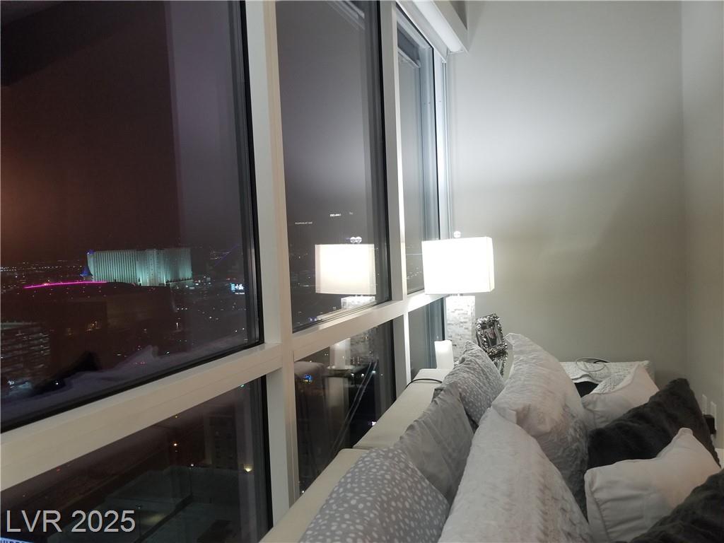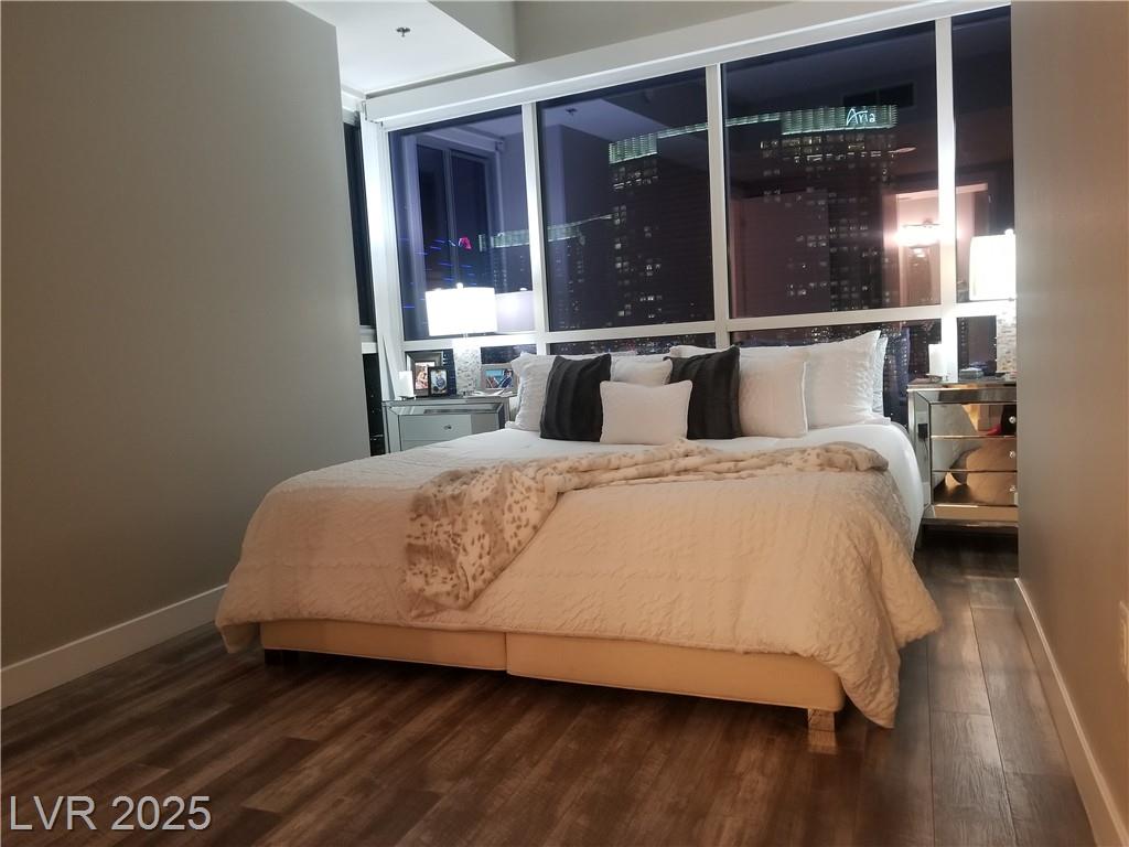 Fully furnished. Most popular floorplan, 1 master bedroom with a den, 1.5 baths. All hardwood floor and motorized window shades throughout. Free Cox cable TV and Internet. Kitchen features marble flooring, granite countertops, and stainless steel appliances. Fitness center with spa and steam room, valet, swimming pool house limousines service. All located within minutes of the Strip. Absolutely Stunning!