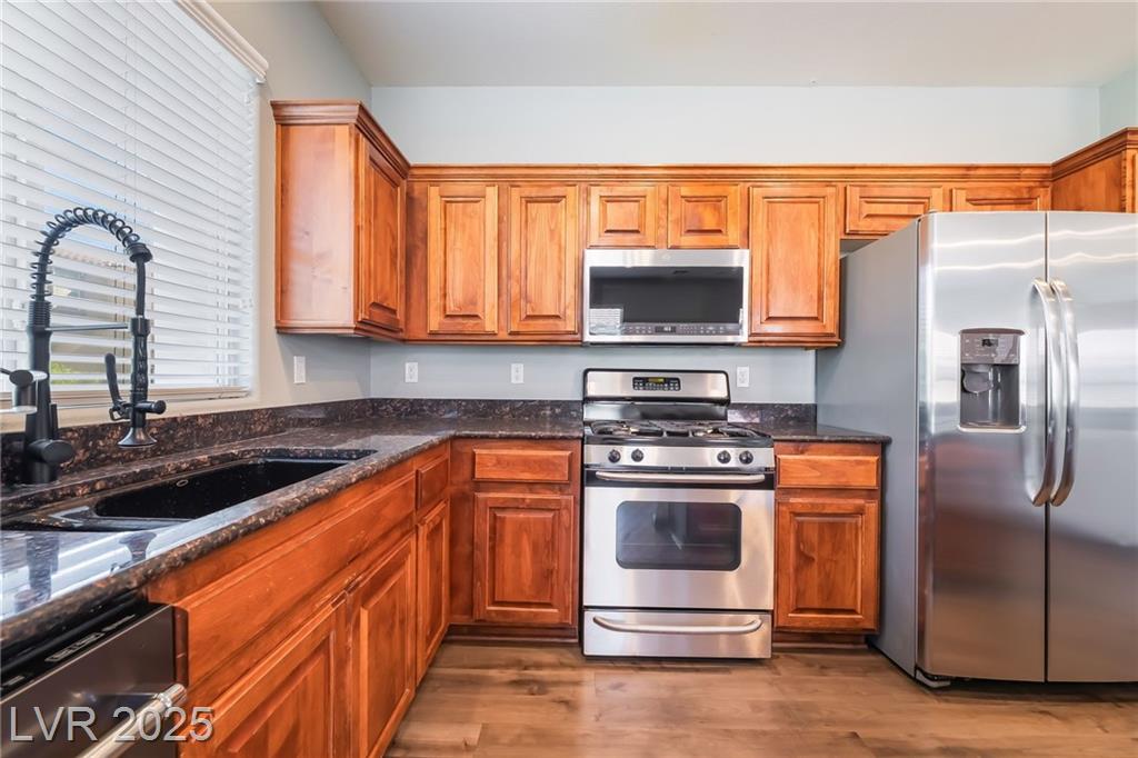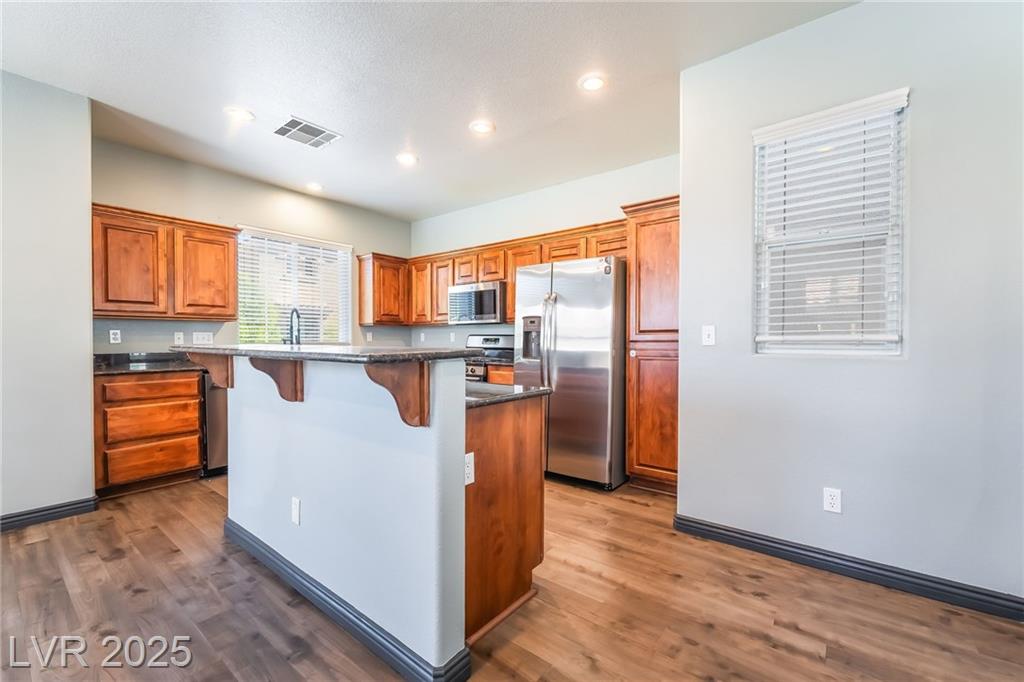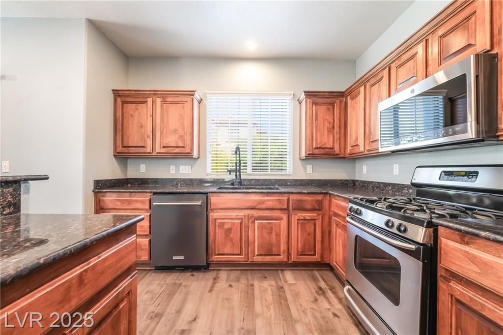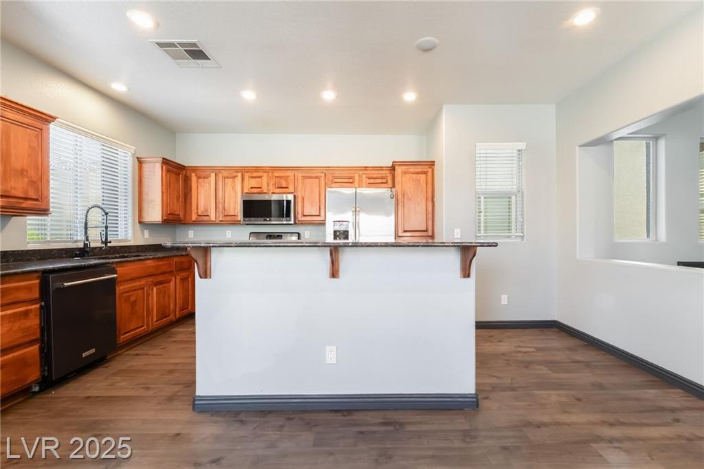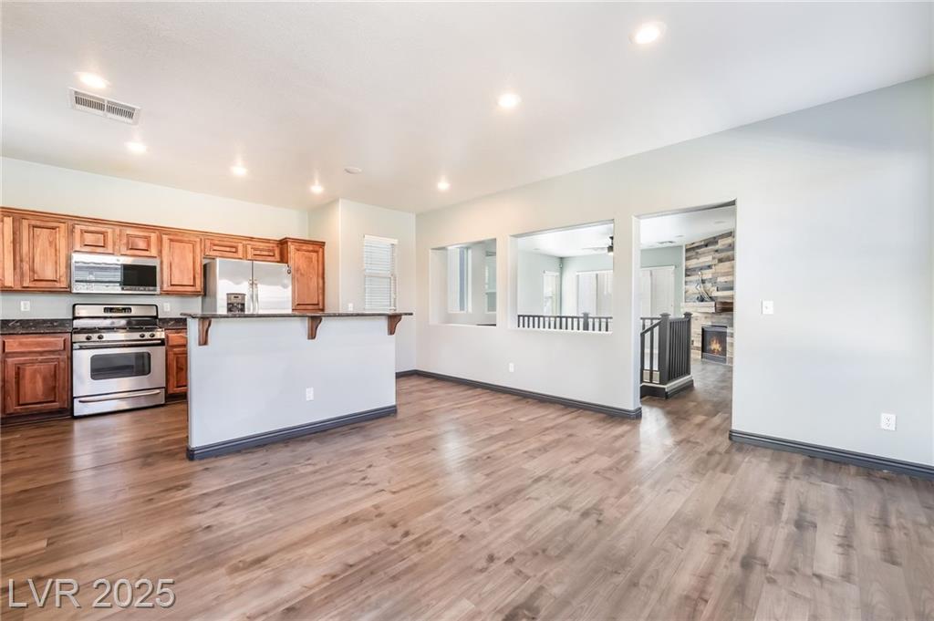 This beautiful 4-bedroom, tri-level home is located in the thriving Blue Diamond area and is waiting for the perfect homeowner like you. The main floor with the kitchen and living room have upgraded laminate flooring. The kitchen includes granite counter tops with an island and a breakfast bar as well as stainless steel appliances. The spacious living room feels homely with the fireplace nestled in the perfect spot to provide ambiance and warmth. To add to the mood there are ceiling speakers located throughout the house. The downstairs bedroom has its own full bathroom and is perfect for house guests. The exterior of the house was painted a year and a half ago making it appear as if brand new. The garage has a 220 plug and is ready for an electric car charger to be installed. The HOA is friendly and takes care of the front landscaping and includes a lovely little park in the center of the community. This is a must see!!