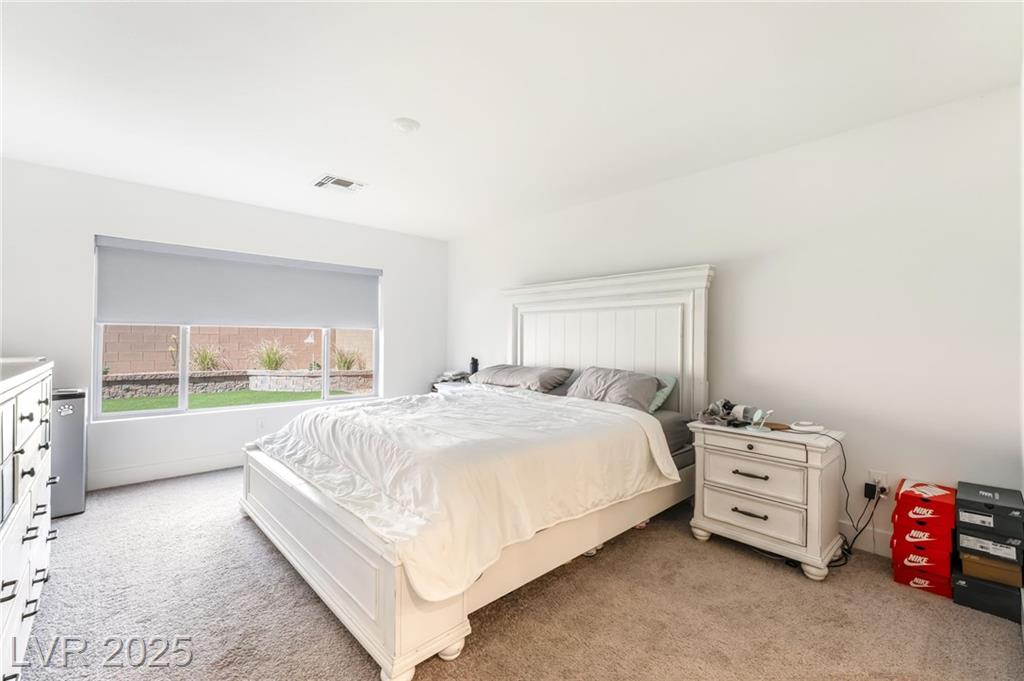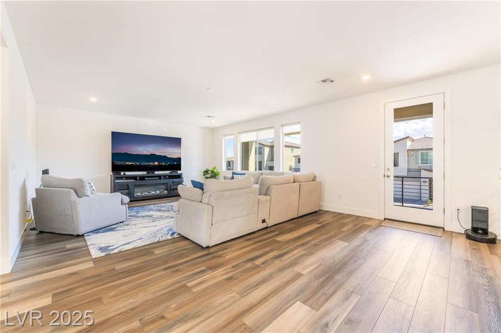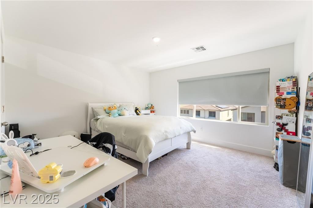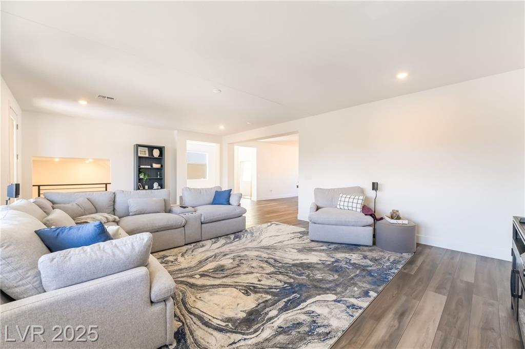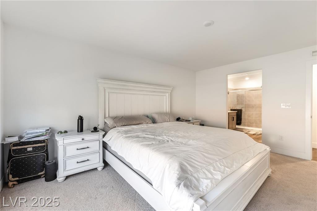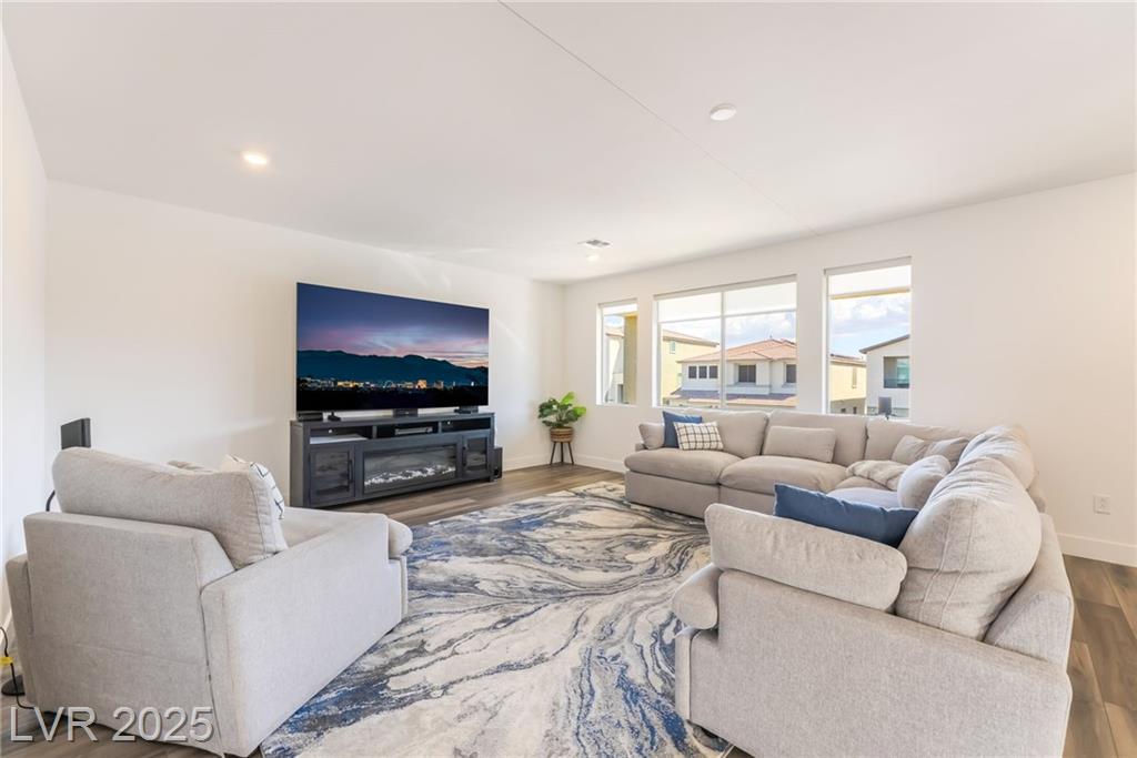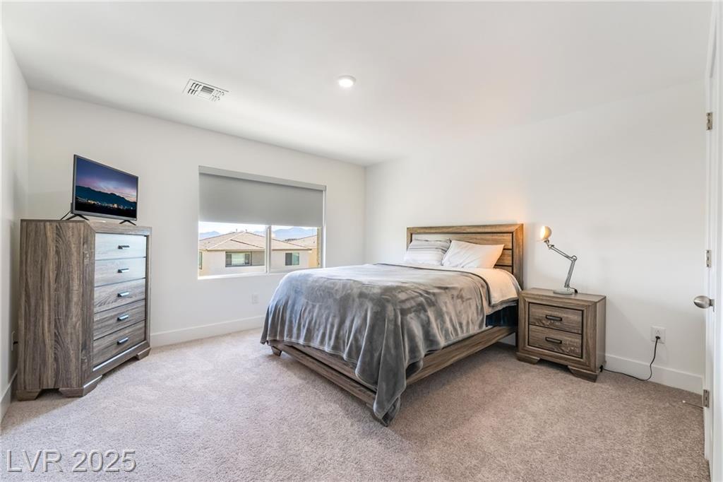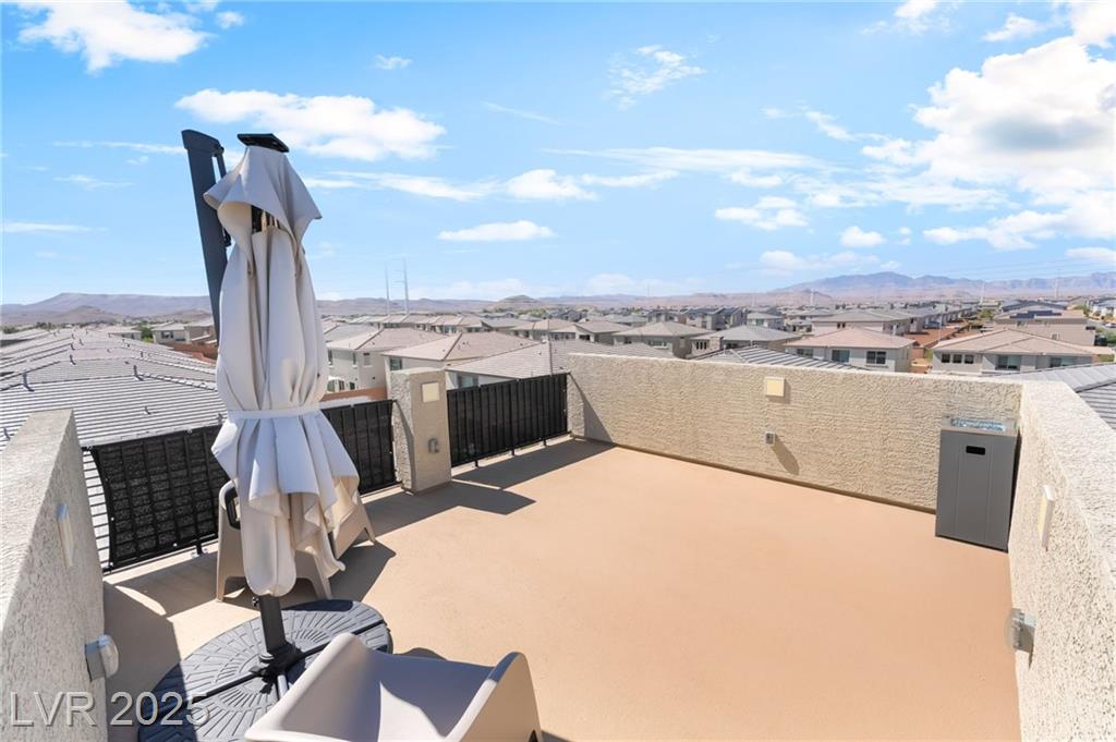 Beautiful 3-story gem with rooftop deck in a desirable neighborhood! This 2024-built 5 bed, 4.5 bath, 4,108 sq. ft. home features over $60K in upgrades and a 3-car garage. Designed for flexibility, it offers dual owner’s suites—one on the first level with a private living room and direct access to a finished backyard with turf, misters, and covered awning. The main level boasts an open kitchen, dining, and living area that flows to a large patio for indoor-outdoor entertaining. Upstairs, the second owner’s suite and additional spacious bedrooms provide comfort and privacy. The crown jewel is the rooftop deck with panoramic mountain and Strip views. Low monthly HOA, close to top-rated schools, shopping, dining, and freeway access. A rare opportunity blending style, convenience, and value—schedule your private tour today!