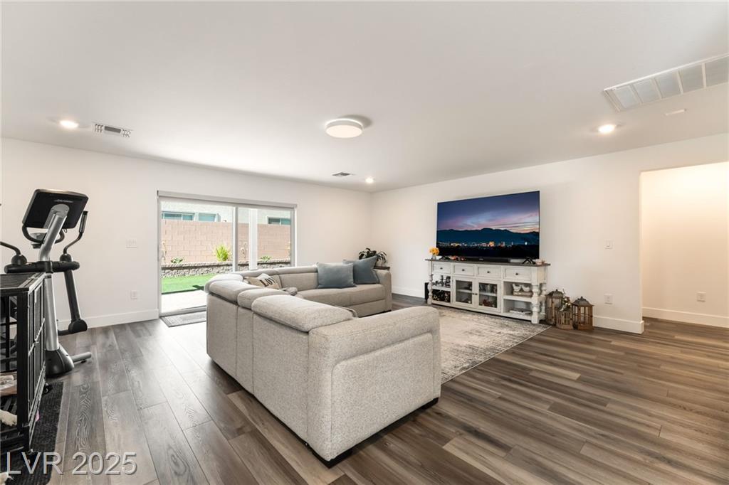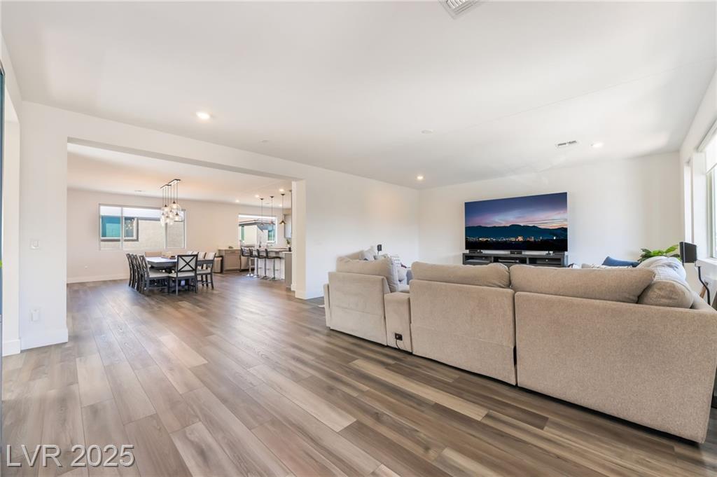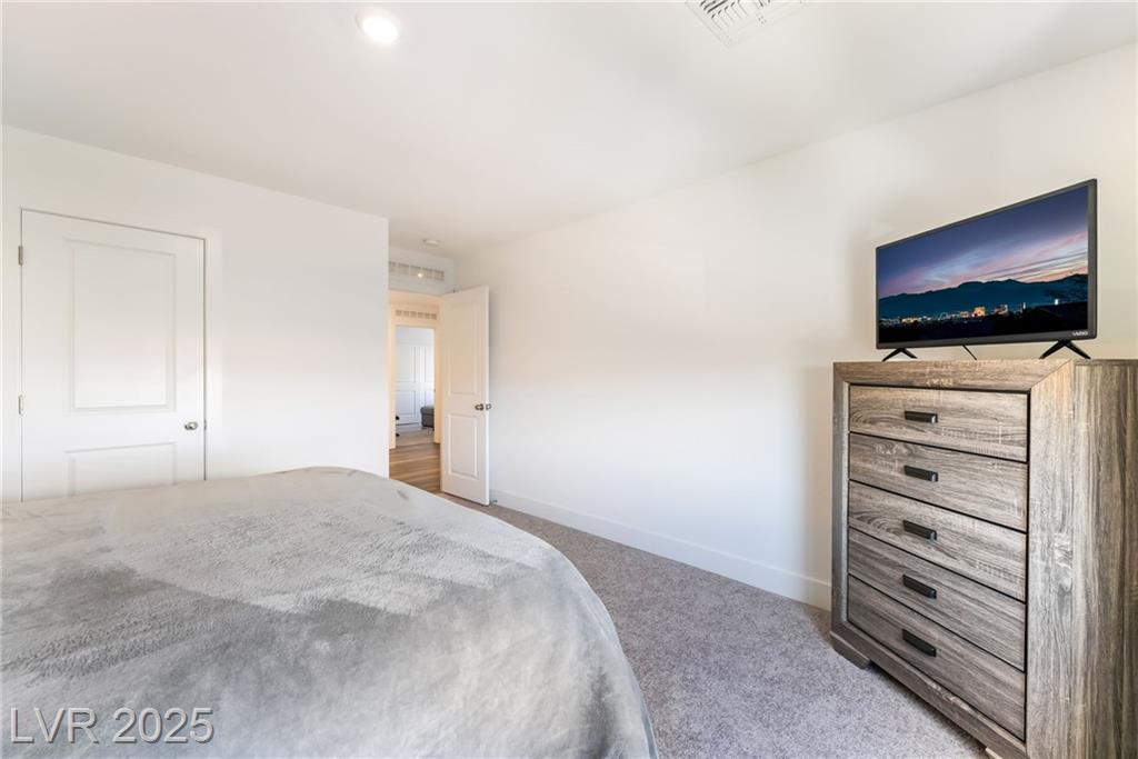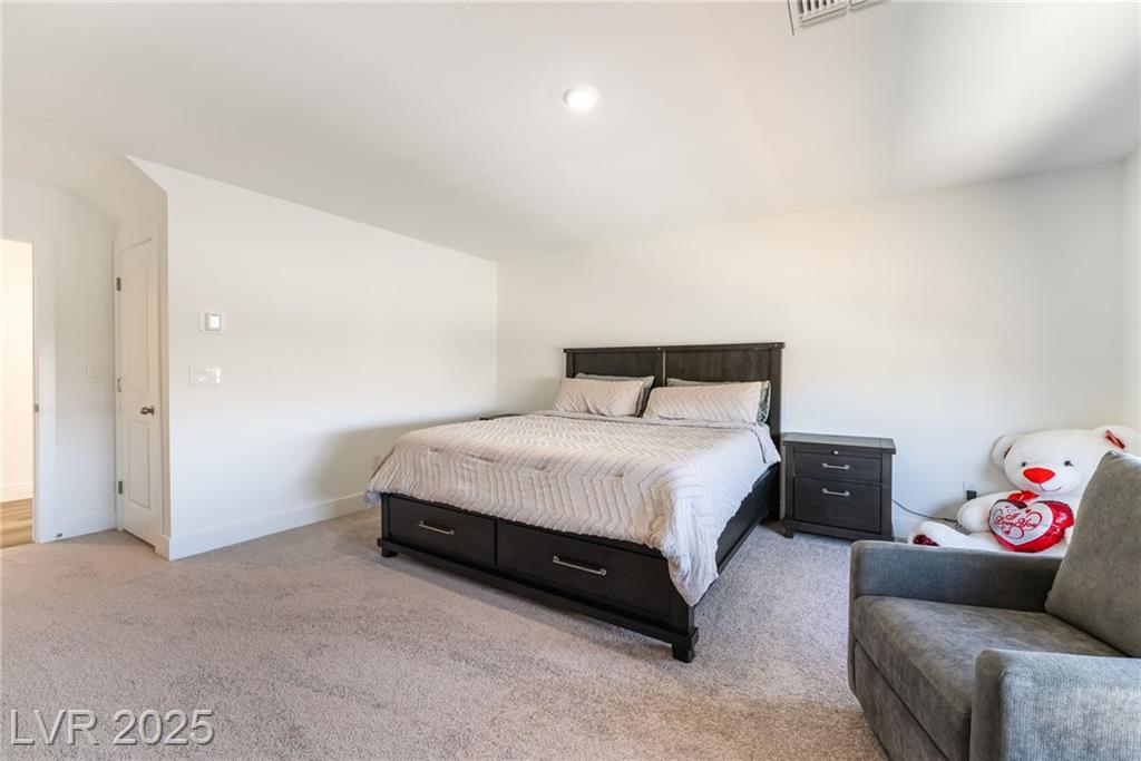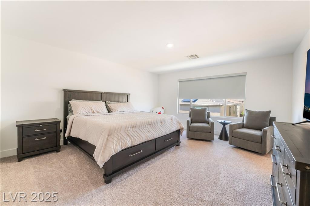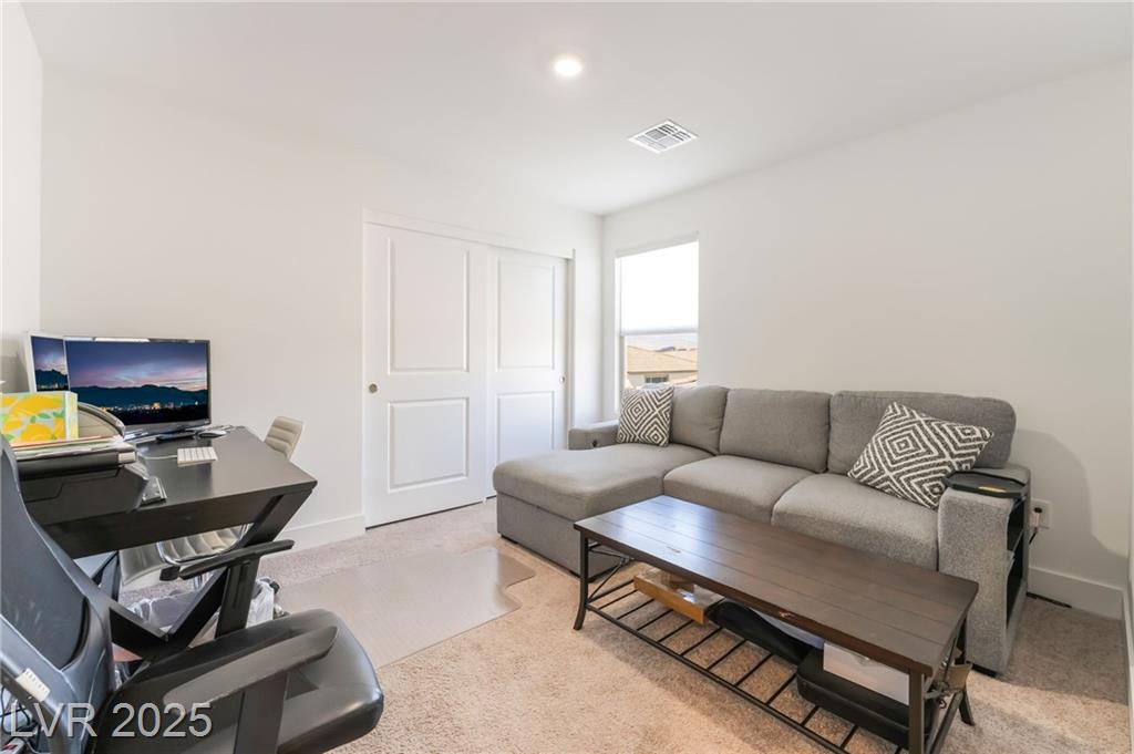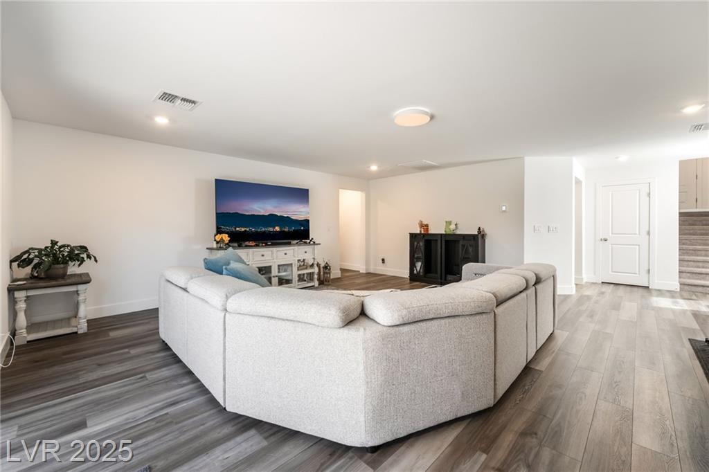 Beautiful 3-story gem with rooftop deck in a desirable neighborhood! This 2024-built 5 bed, 4.5 bath, 4,108 sq. ft. home features over $60K in upgrades and a 3-car garage. Designed for flexibility, it offers dual owner’s suites—one on the first level with a private living room and direct access to a finished backyard with turf, misters, and covered awning. The main level boasts an open kitchen, dining, and living area that flows to a large patio for indoor-outdoor entertaining. Upstairs, the second owner’s suite and additional spacious bedrooms provide comfort and privacy. The crown jewel is the rooftop deck with panoramic mountain and Strip views. Low monthly HOA, close to top-rated schools, shopping, dining, and freeway access. A rare opportunity blending style, convenience, and value—schedule your private tour today!