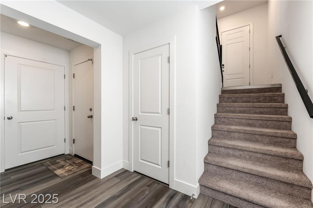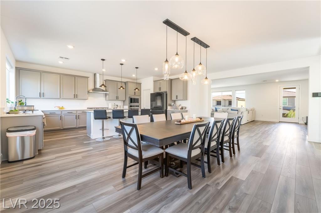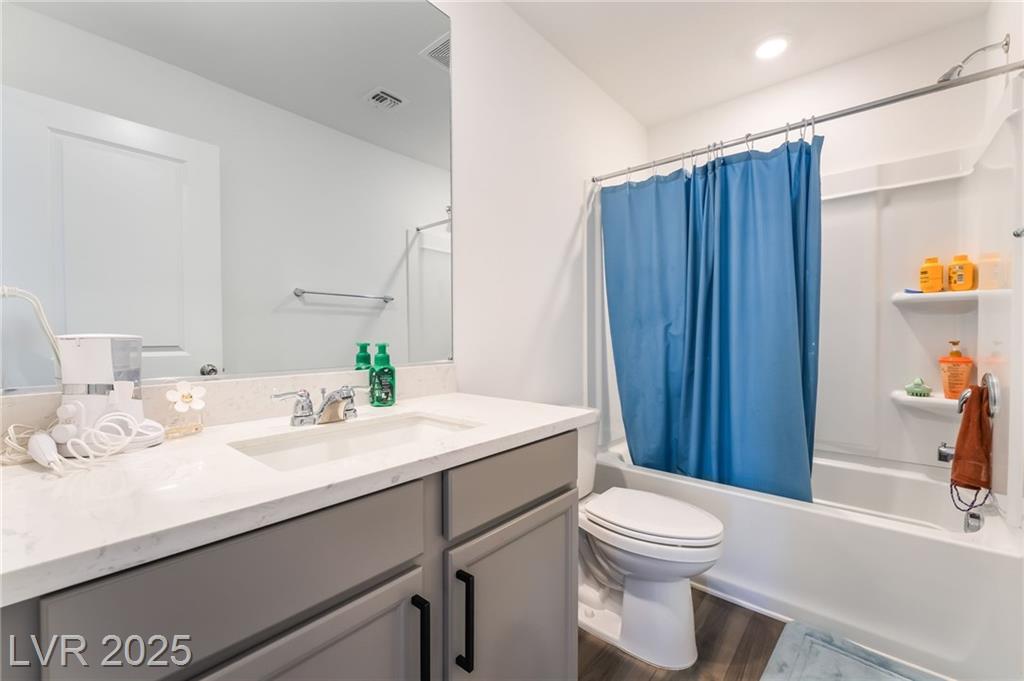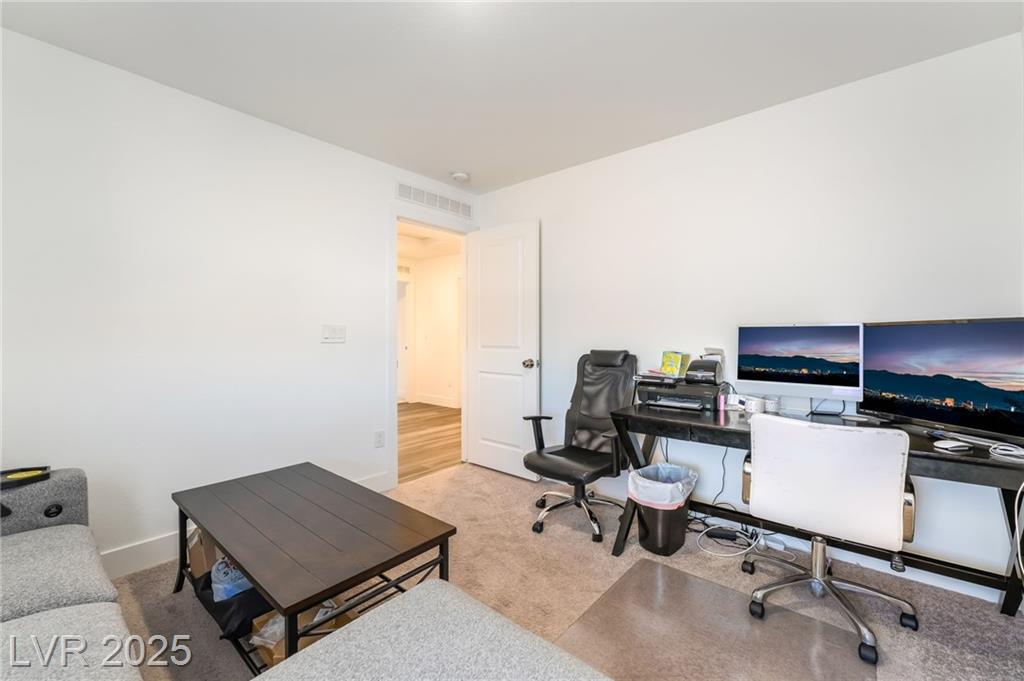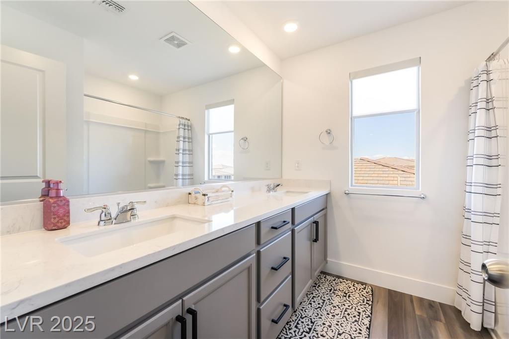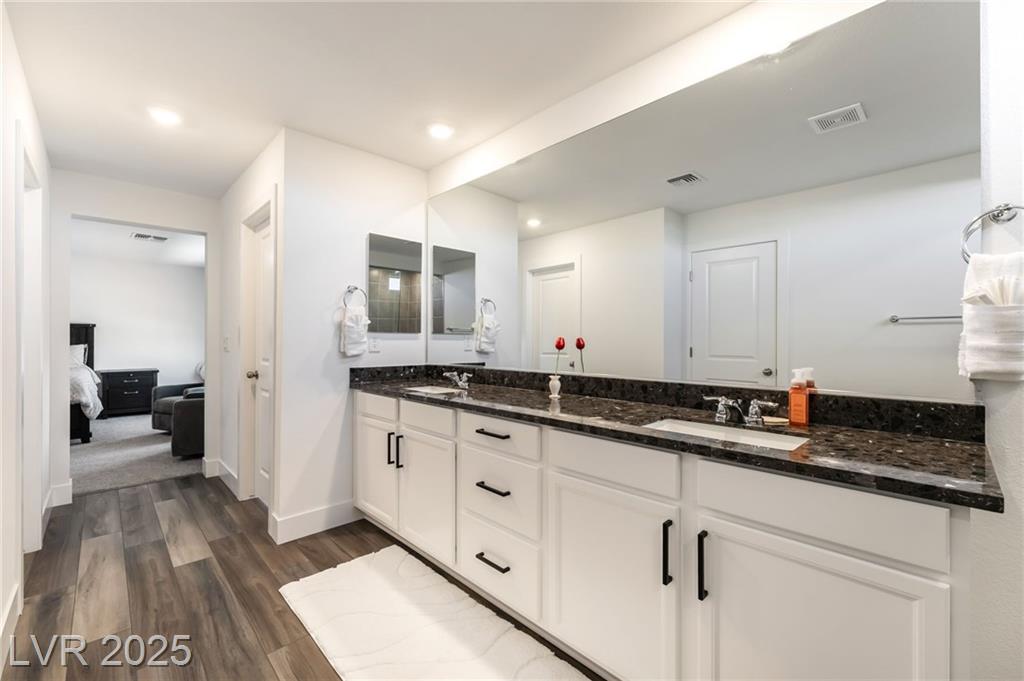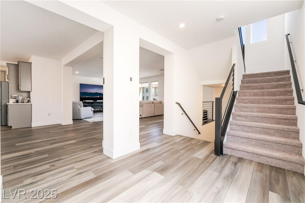 Beautiful 3-story gem with rooftop deck in a desirable neighborhood! This 2024-built 5 bed, 4.5 bath, 4,108 sq. ft. home features over $60K in upgrades and a 3-car garage. Designed for flexibility, it offers dual owner’s suites—one on the first level with a private living room and direct access to a finished backyard with turf, misters, and covered awning. The main level boasts an open kitchen, dining, and living area that flows to a large patio for indoor-outdoor entertaining. Upstairs, the second owner’s suite and additional spacious bedrooms provide comfort and privacy. The crown jewel is the rooftop deck with panoramic mountain and Strip views. Low monthly HOA, close to top-rated schools, shopping, dining, and freeway access. A rare opportunity blending style, convenience, and value—schedule your private tour today!