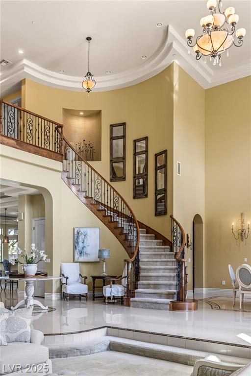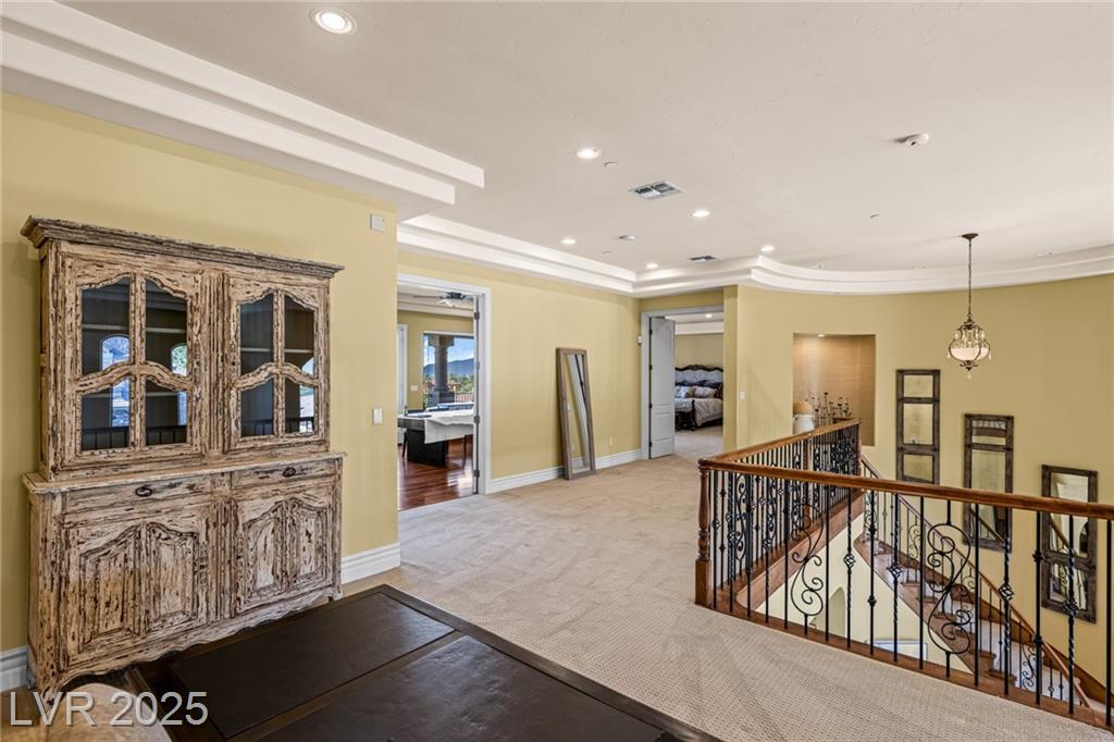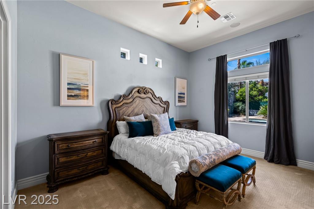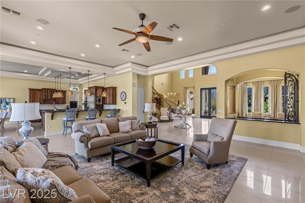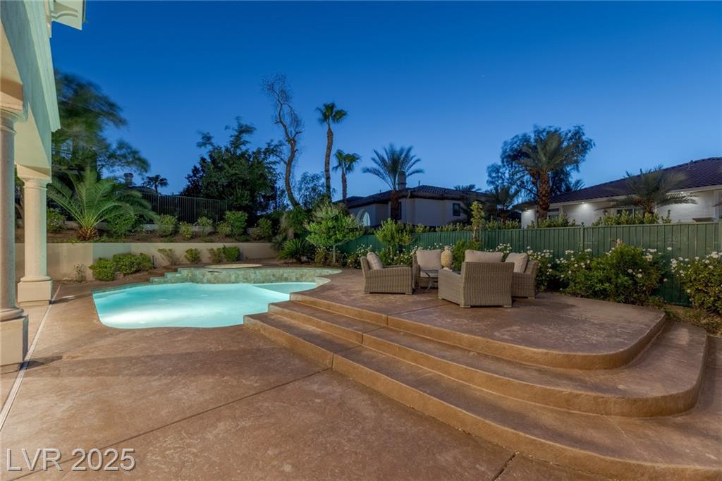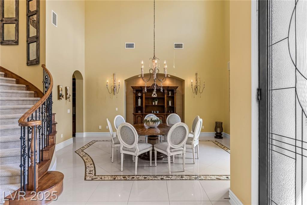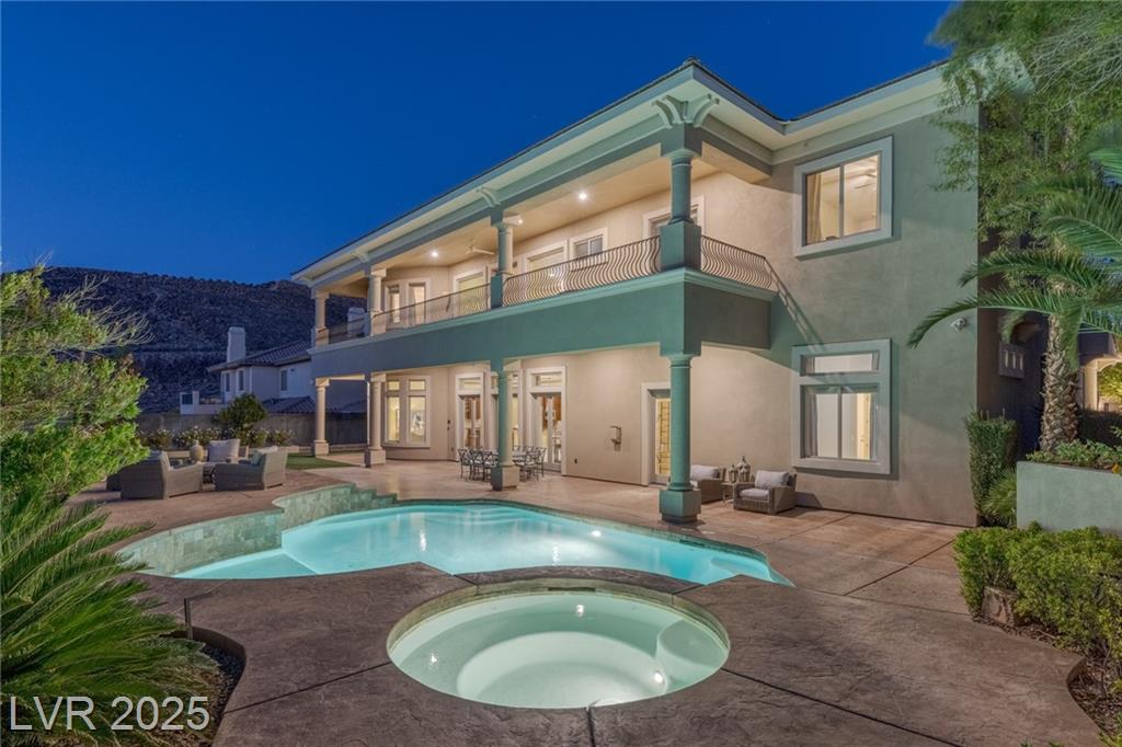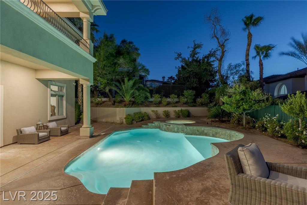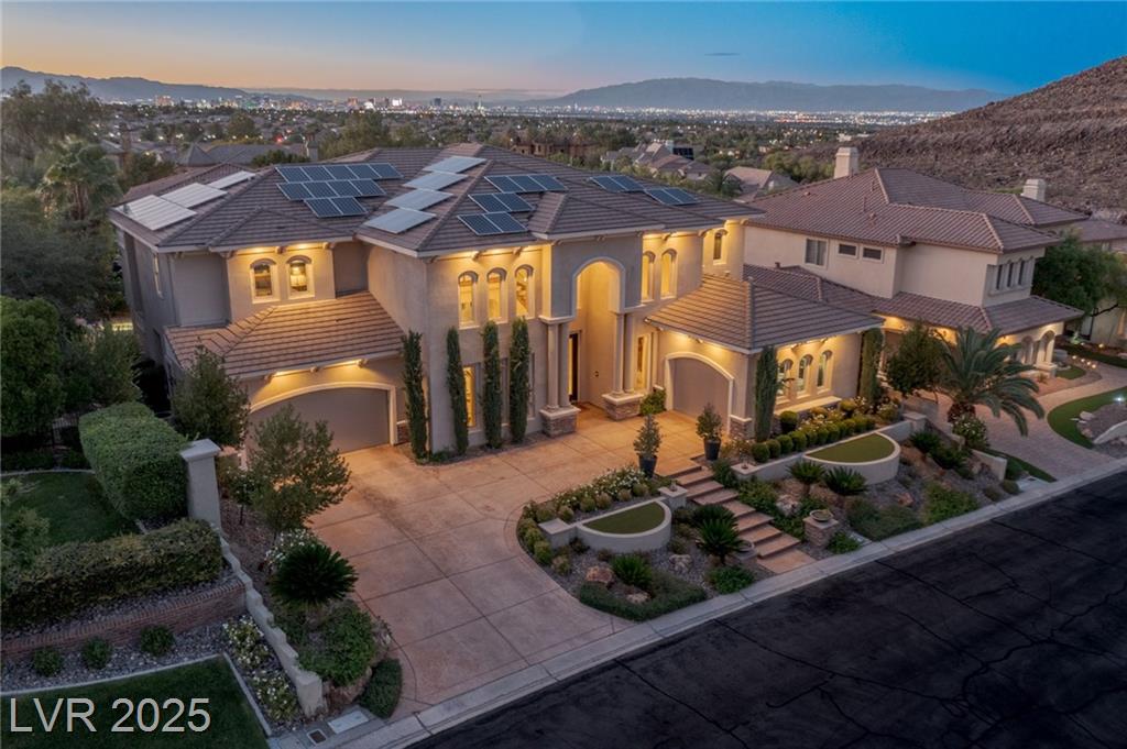 Wow! This timeless & elegant estate in guard-gated Roma Hills, is surrounded by Henderson’s most exclusive hillside communities & adjacent to Dragon Ridge Country Club. Over 6,000 square feet of refined living offers 6 bedrooms, 6 baths, soaring ceilings & expansive open concept design ideal for entertaining. A chef’s kitchen with custom cabinetry, oversized island, butlers pantry & premium stainless appliances anchors the heart of the home. The primary suite is a private retreat with spa-like bath featuring dual vanities, soaking tub, custom closet & oversized shower. The Resort Style backyard boasts pool, spa, lounge space with downtown "Strip" & mountain views from the view decks! Additional highlights include a home office/art studio, wine cellar, spacious family room, generational suite, 3 car garage & solar!. Minutes from world-class dining, shopping & entertainment, this home delivers a perfect blend of privacy, luxury & lifestyle in one of Henderson’s most prestigious enclaves.