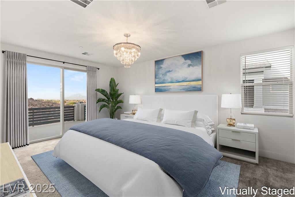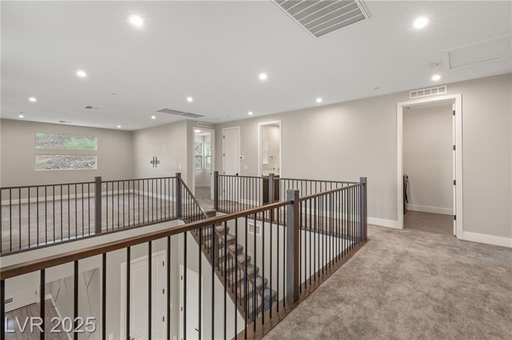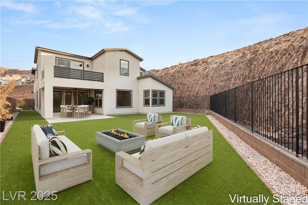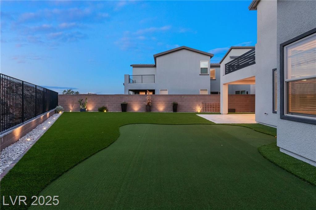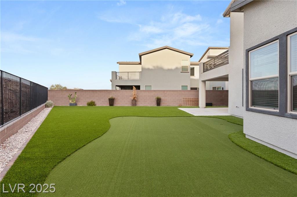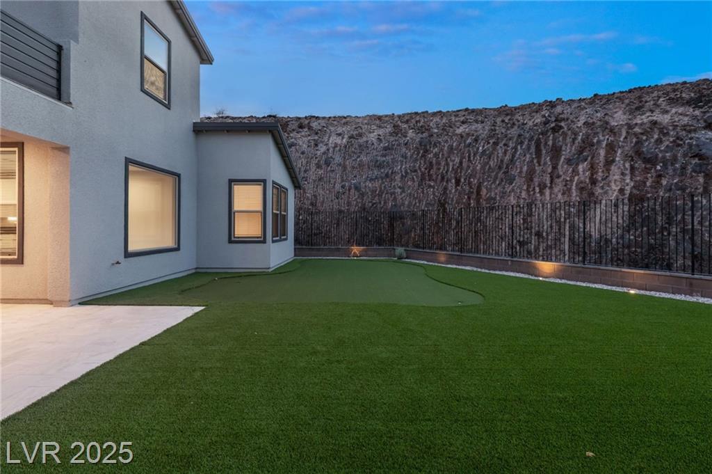 Luxury home in the gated community of Midnight Ridge, a secluded canyon surrounded by foothills and landscapes! Located at the end of a private cul-de-sac, this home offers unparalleled privacy. The expansive open floor plan features generously sized bedrooms and upgraded ceiling heights. Upon entering, you'll find a designer wall and modern fixture. The kitchen is a chef's dream with quartz countertops, a matte black island, stainless steel appliances & walk in pantry. Downstairs includes luxury vinyl flooring & full bedroom suite with a private bath. Upstairs, the primary bedroom features a balcony and a large walk-in closet. The primary bath offers a spa-like experience with a walk-in shower, dual sinks, quartz counters & rain shower. The home includes modern stair railing and smart home technology. With outdoor living spaces, including two balconies, a courtyard, stacking doors to the patio, a putting green, and a large lot, this home is your personal retreat atop the mountains!