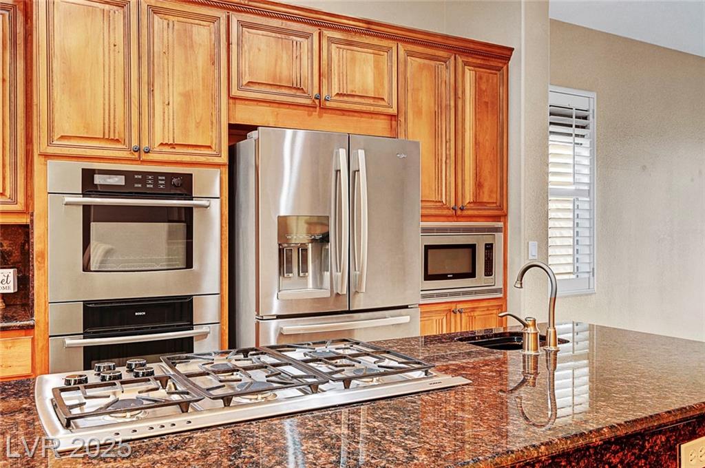 Beautiful FORMER MODEL HOME Located In Guard Gated Tuscany Community. Home Sits On An Oversized Lot With Pool Renderings Available. 3 Bedrooms, 3 Full Baths, And An Open Floorplan. Large Family Room With Patio Access. Spacious Well-Appointed Kitchen With Bosch Stainless Steel Appliances, Double Oven, Granite Countertops, an Oversized Island With Separate Sink, Plenty Of Storage, And Slider Door For Backyard Access. Large Primary Bedroom With Access To The Backyard. Primary Bath Features Separate Dual Sink Areas, Granite Countertops, Oversized Garden Tub, Walk-In Shower, And Large Walk-In Closet With Built-In Storage. Third Bedroom Features French Doors, Ensuite With Full Bath, And Patio Access. Separate Laundry Room With Storage. Quaint Patio With Travertine Tile And Fire Pit. Solar Screens Throughout. Tankless Water Heater. Garage Features Custom Storage, Overhead Storage, And Storage/Work Bench.