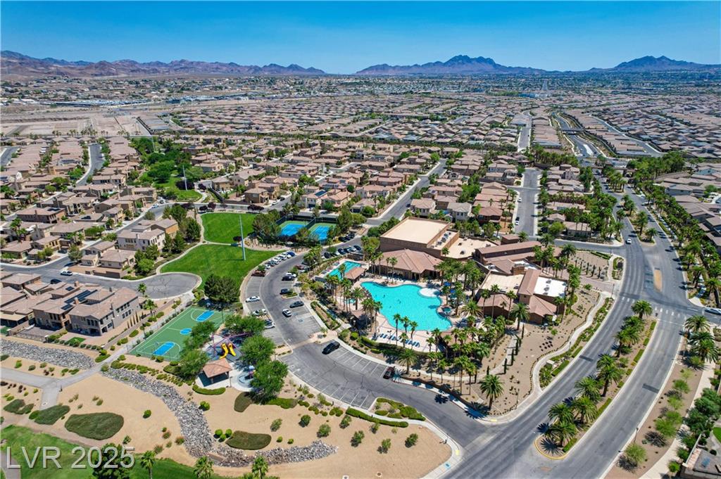 From 215-E Continue To Lake Mead Pkwy, Turn Left to Cadence Crest Ave/Mohawk. Proceed To Tuscany Guard Gate. Continue Straight To Olivia Pkwy, Then Turn Right On Via Garofano Ave. Property Is On The Right Across From The Community Center, Tennis Courts, and Park.
