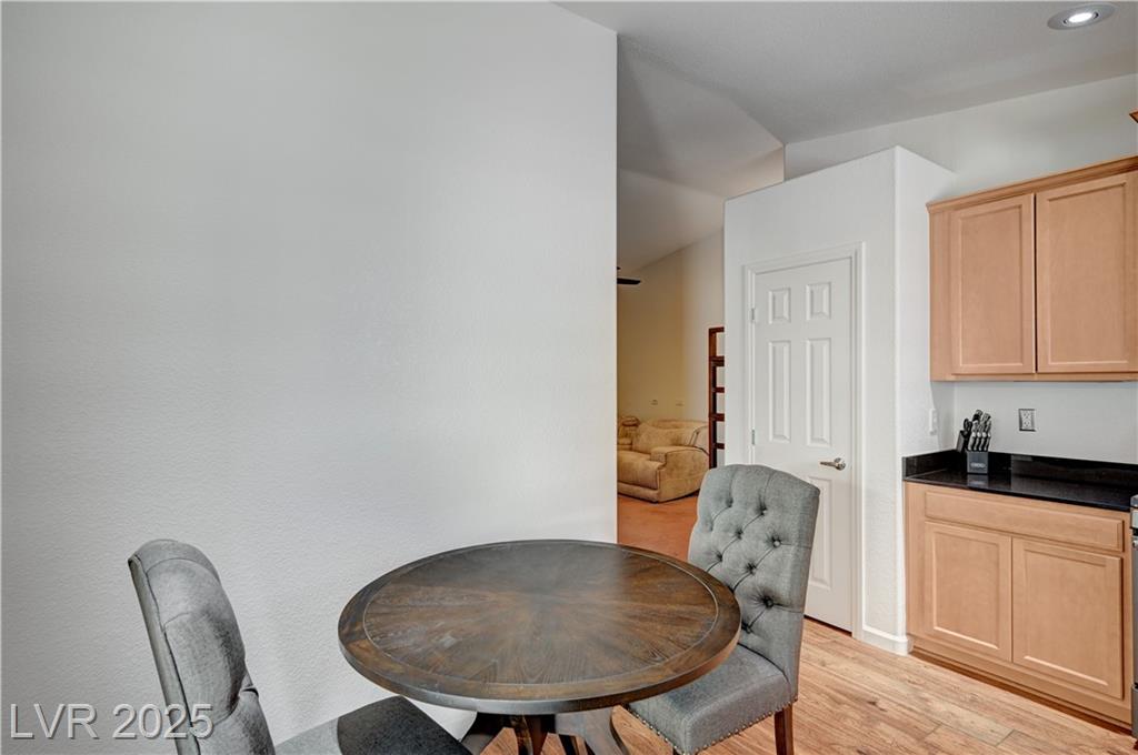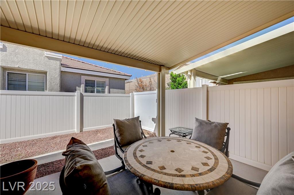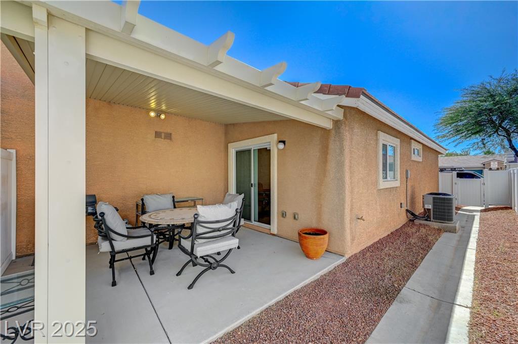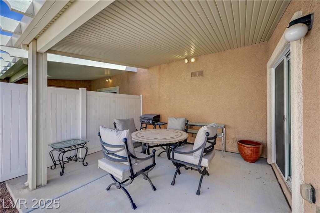 Welcome to one of the few single-story 3 bed, 2 bath condos just outside Southern Highlands! This gated community offers the lifestyle without the high HOA fees. Inside, you’ll find thoughtful upgrades throughout: newer appliances, custom cabinets with pull-out drawers and underlighting, updated countertops, shutters, modern hardware, reverse osmosis system, newer flooring, and water heater. A security door adds extra peace of mind, and additional insulation in the attic enhances energy efficiency and comfort. The garage includes a utility sink, while outside, a private backyard with newer covered awning and built-in gas line for BBQ creates the perfect retreat. With its rare single-story layout, low maintenance, and prime location, this home won’t last long!