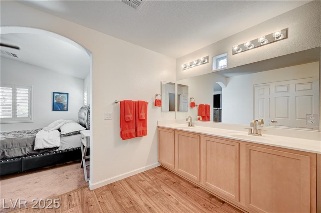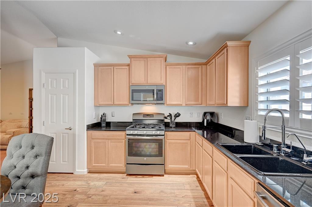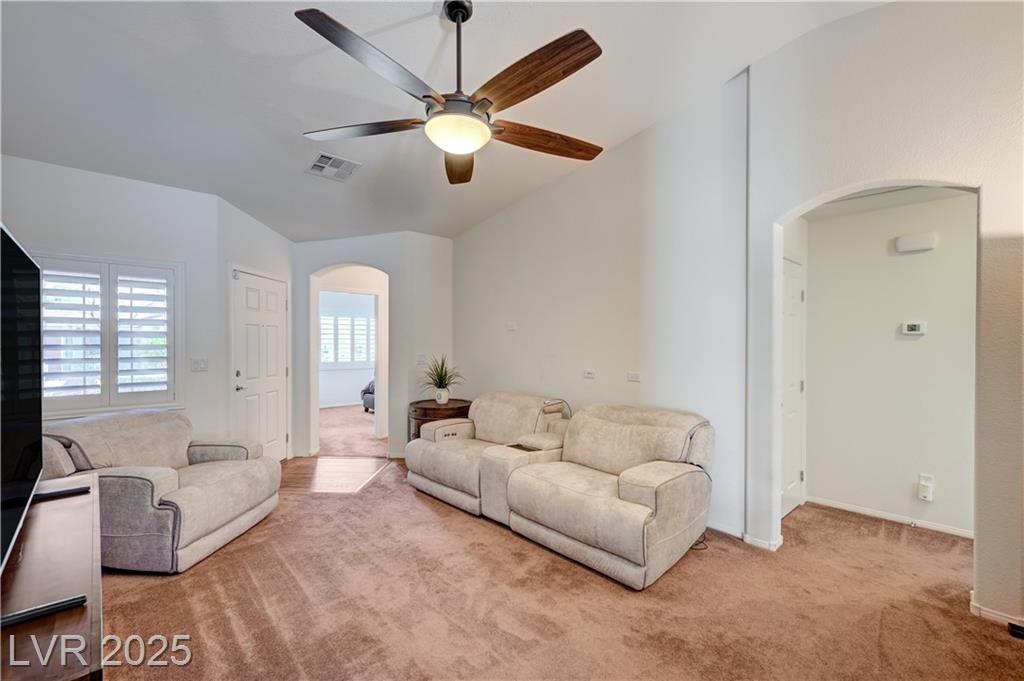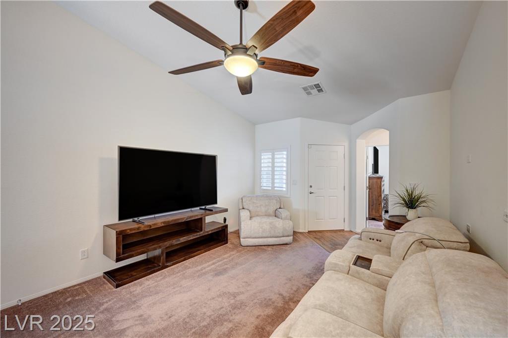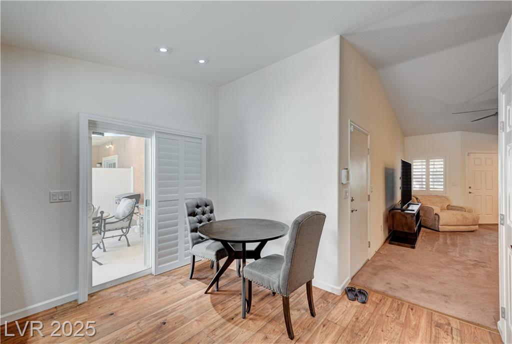 Welcome to one of the few single-story 3 bed, 2 bath condos just outside Southern Highlands! This gated community offers the lifestyle without the high HOA fees. Inside, you’ll find thoughtful upgrades throughout: newer appliances, custom cabinets with pull-out drawers and underlighting, updated countertops, shutters, modern hardware, reverse osmosis system, newer flooring, and water heater. A security door adds extra peace of mind, and additional insulation in the attic enhances energy efficiency and comfort. The garage includes a utility sink, while outside, a private backyard with newer covered awning and built-in gas line for BBQ creates the perfect retreat. With its rare single-story layout, low maintenance, and prime location, this home won’t last long!