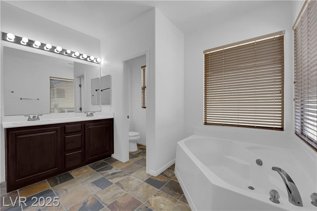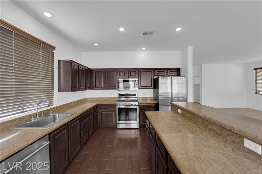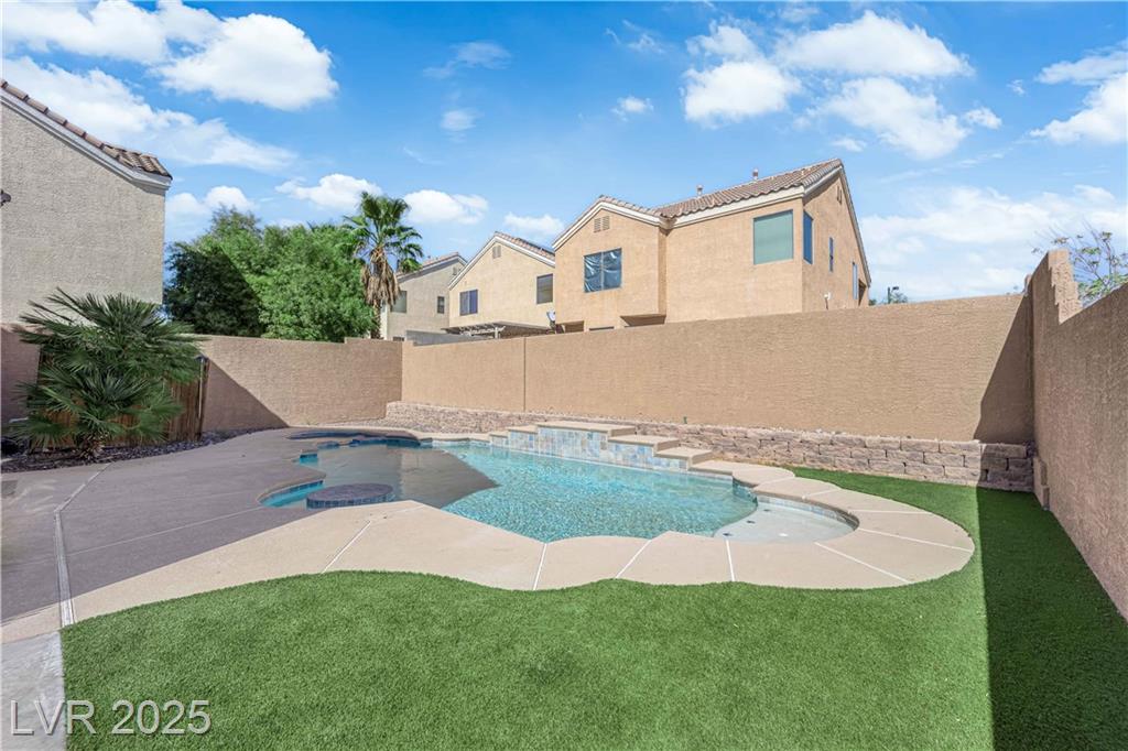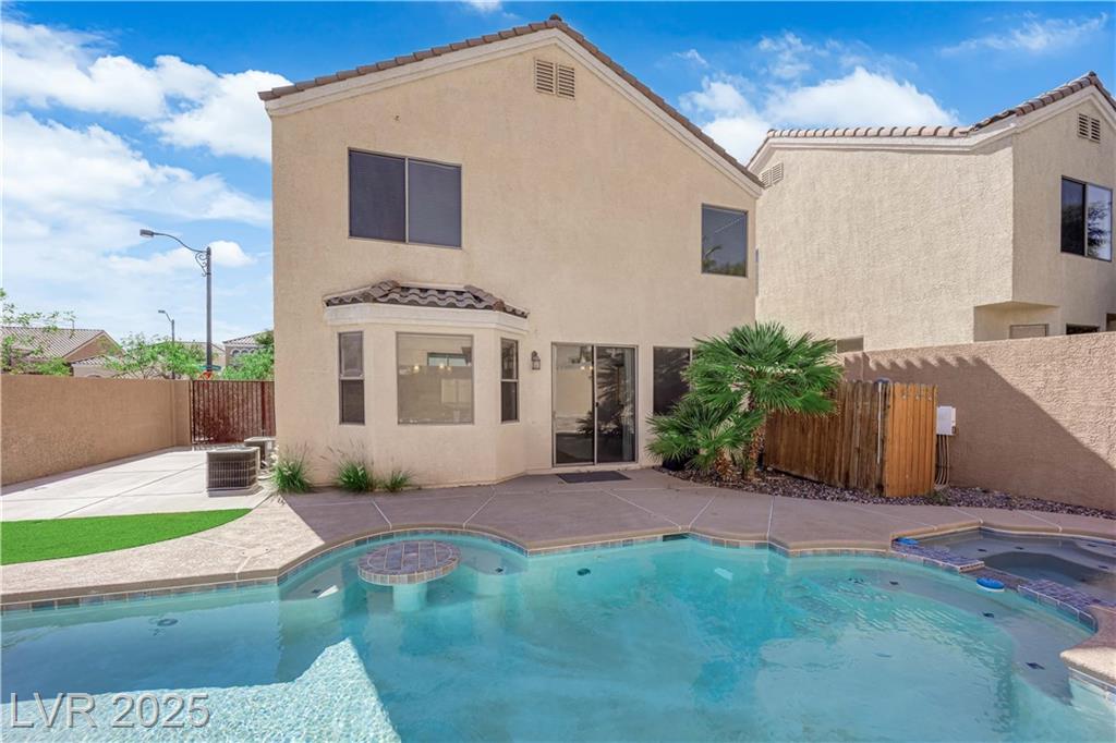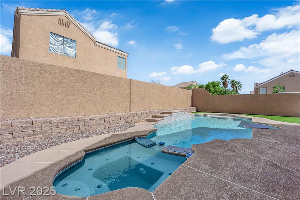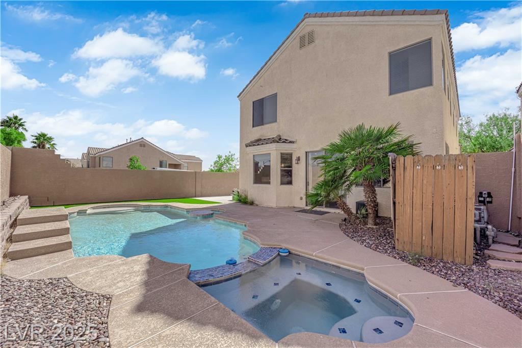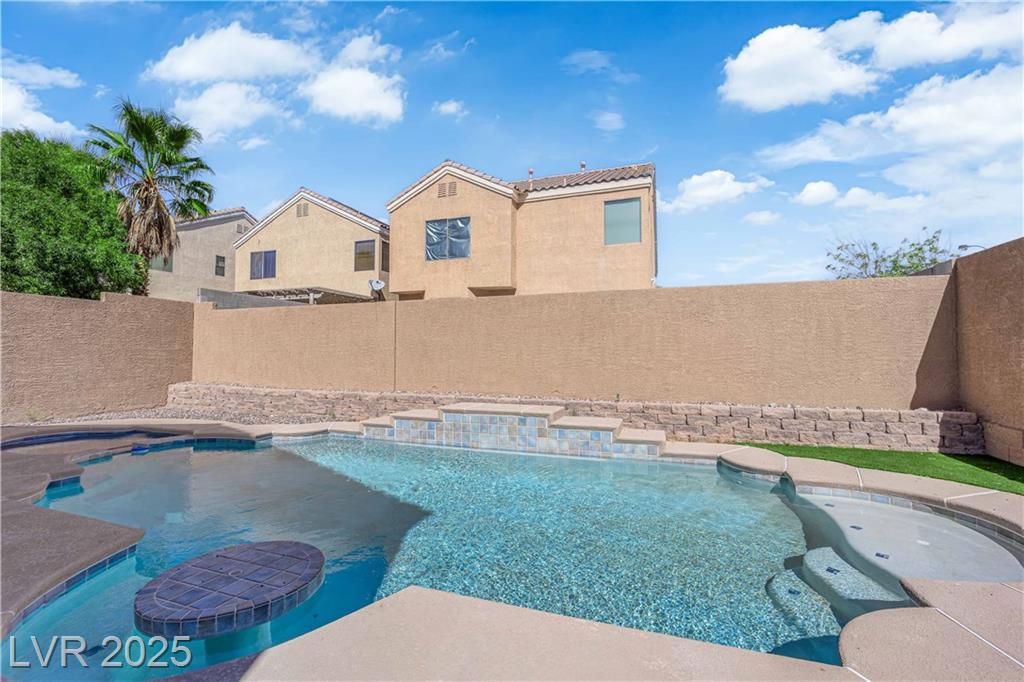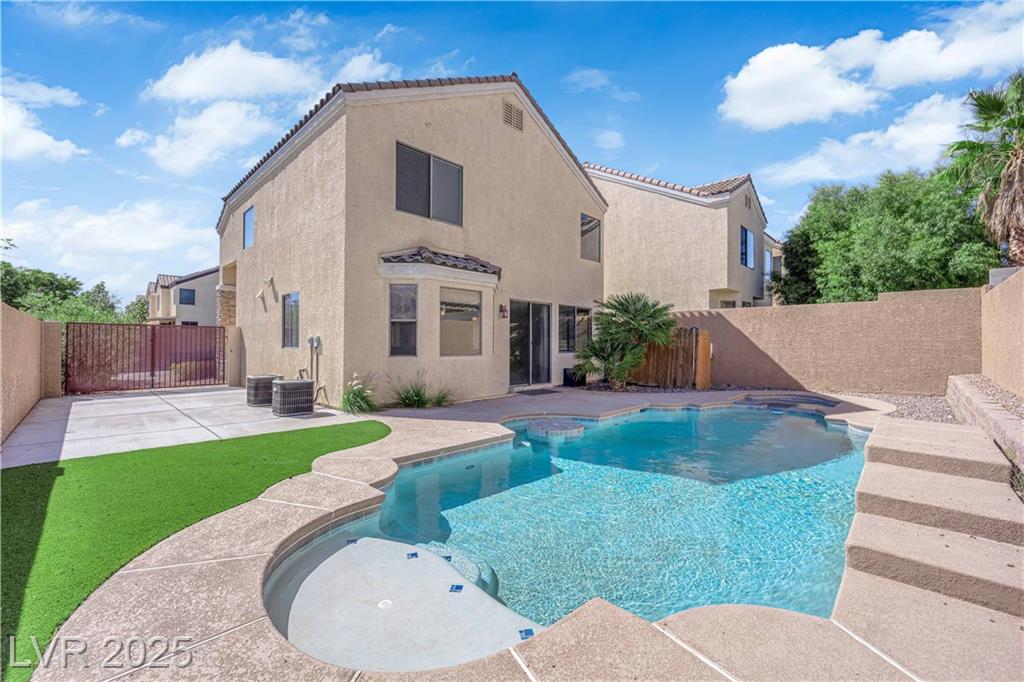 Discover your dream home in the heart of Centennial Hills! This stunning 2-story residence offers a spacious 2-car garage and RV parking, perfect for all your outdoor adventures. Dive into relaxation with a heated inground pool and spa, ideal for entertaining or unwinding after a long day. Inside, the large kitchen boasts an island, breakfast bar, granite countertops, and stainless steel appliances, making it a chef’s delight. The airy primary bedroom features a generous sitting room, providing a private retreat. The primary bath is designed for comfort, with dual sinks, a separate tub, and shower. Enjoy the convenience of ceiling fans and blinds throughout the home, enhancing your comfort year-round. Located just minutes from shopping, restaurants, freeway access, and Centennial Hospital, this home perfectly blends luxury and convenience.