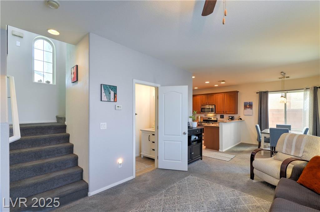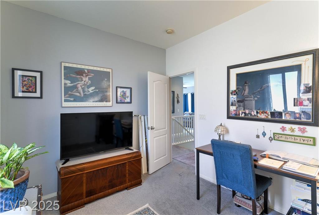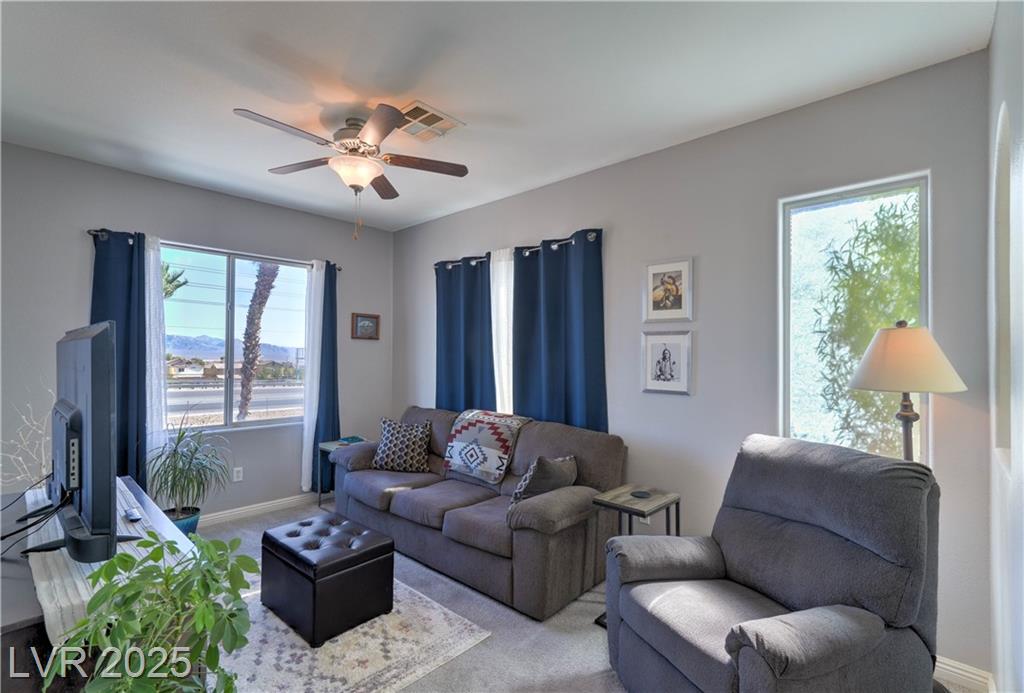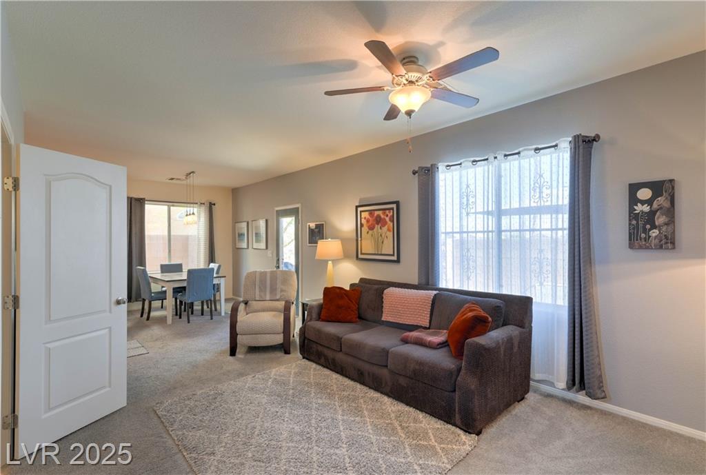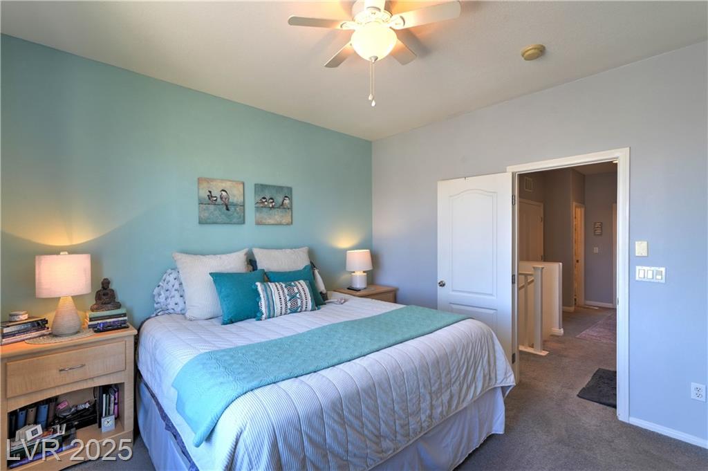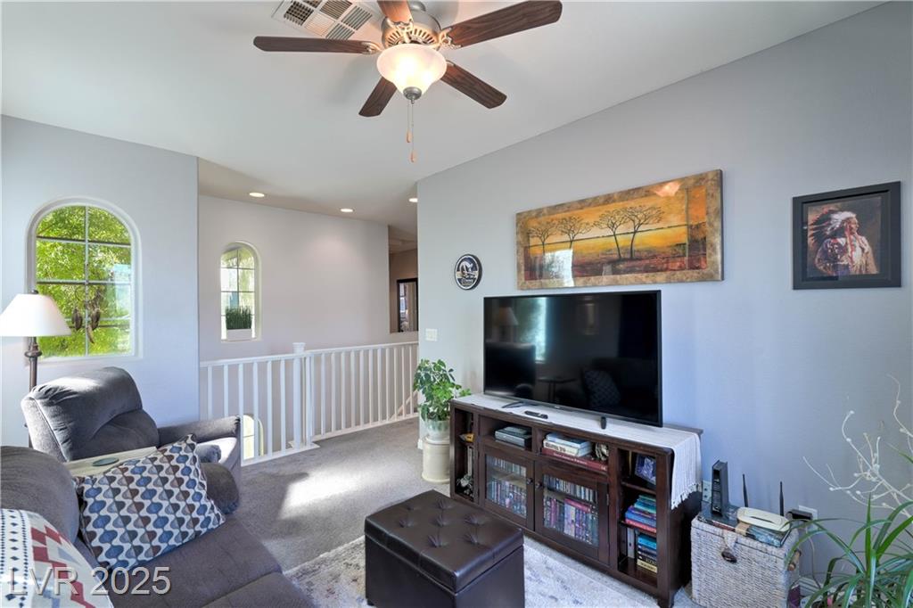 NW 2-story home priced to sell! Enjoy sweeping mountain and city views from three rooms upstairs. With no rear neighbor, the setting feels open and serene. Inside, the home has been impeccably maintained and thoughtfully updated. The downstairs powder bath has been beautifully remodeled, and the kitchen features granite countertops, solid cabinetry in excellent condition, and stainless steel appliances. Recent AC replacements and ceiling fans throughout keep the home comfortable year-round. Upstairs, a spacious loft offers flexible living space, and the primary suite includes a walk-in closet and a relaxing view. Located toward the end of a low-traffic street in a high demand Northwest location near Skye Canyon, this home enjoys a peaceful neighborhood setting. Priced to sell, this is an exceptional opportunity to secure a well-cared-for home with standout features and real value.