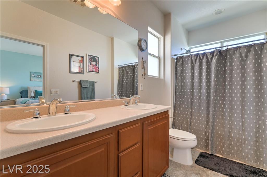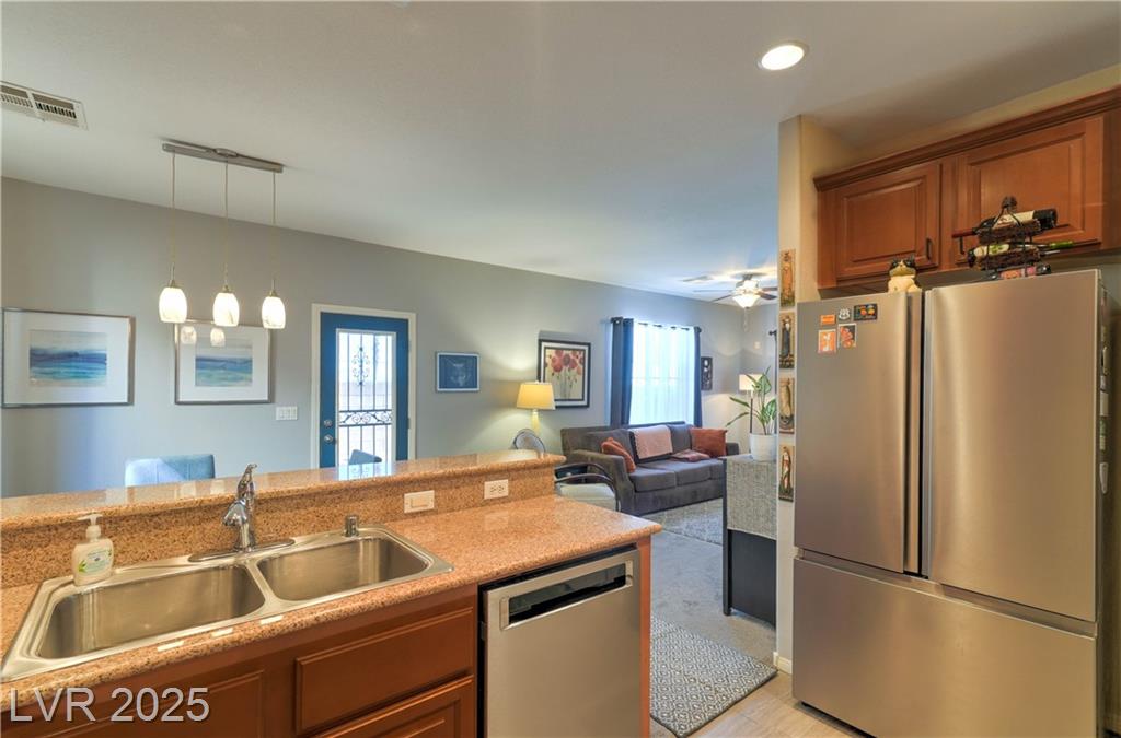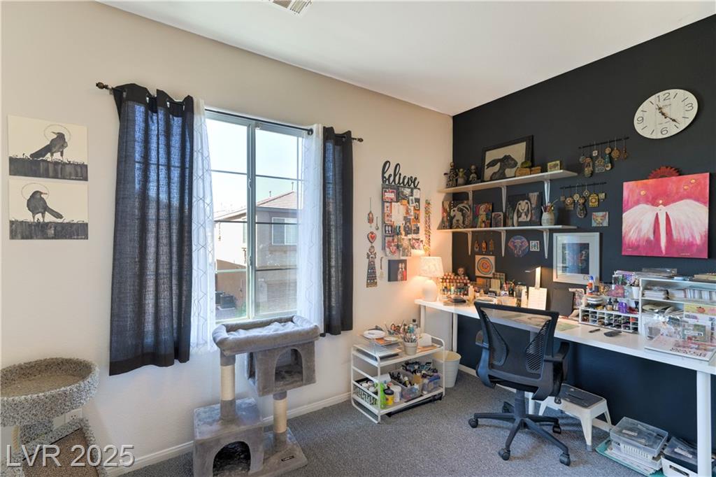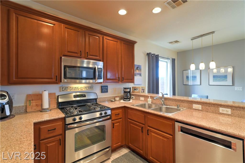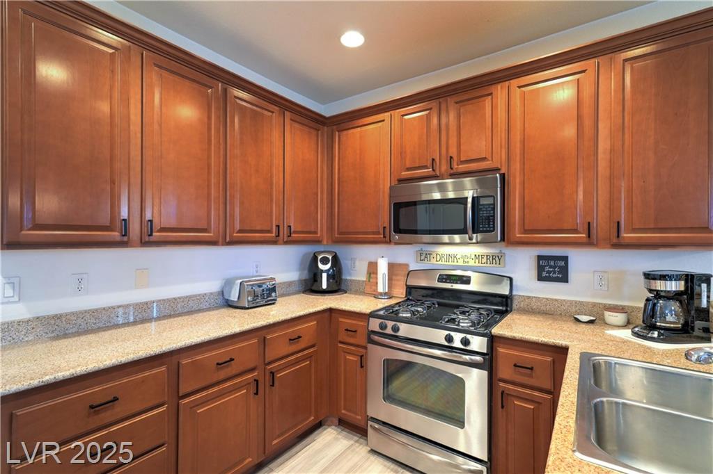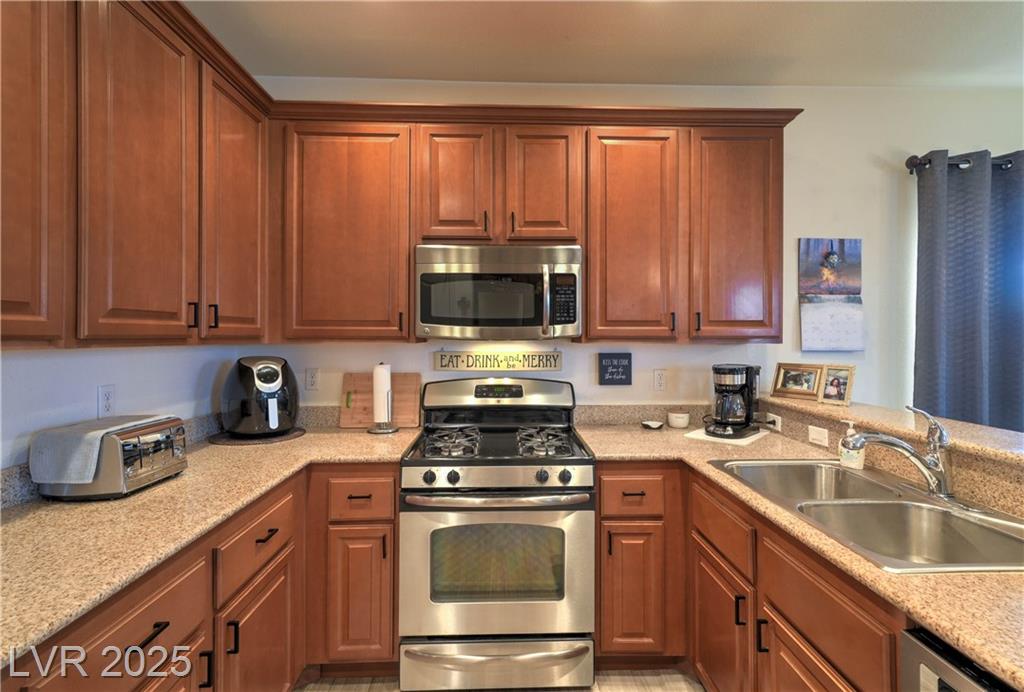 NW 2-story home priced to sell! Enjoy sweeping mountain and city views from three rooms upstairs. With no rear neighbor, the setting feels open and serene. Inside, the home has been impeccably maintained and thoughtfully updated. The downstairs powder bath has been beautifully remodeled, and the kitchen features granite countertops, solid cabinetry in excellent condition, and stainless steel appliances. Recent AC replacements and ceiling fans throughout keep the home comfortable year-round. Upstairs, a spacious loft offers flexible living space, and the primary suite includes a walk-in closet and a relaxing view. Located toward the end of a low-traffic street in a high demand Northwest location near Skye Canyon, this home enjoys a peaceful neighborhood setting. Priced to sell, this is an exceptional opportunity to secure a well-cared-for home with standout features and real value.