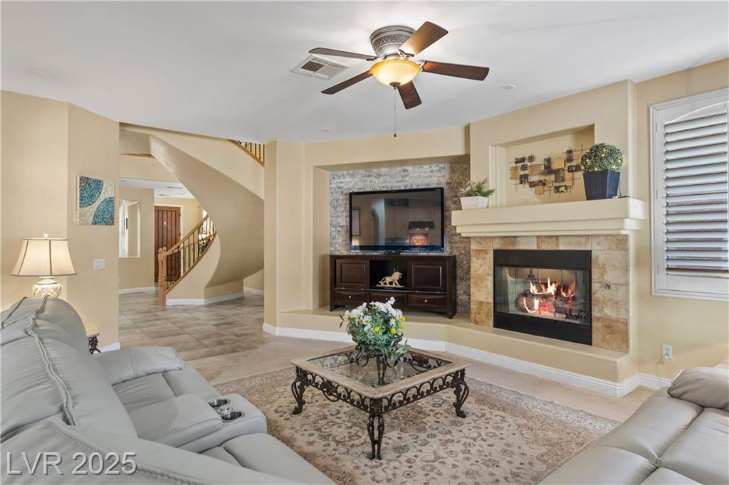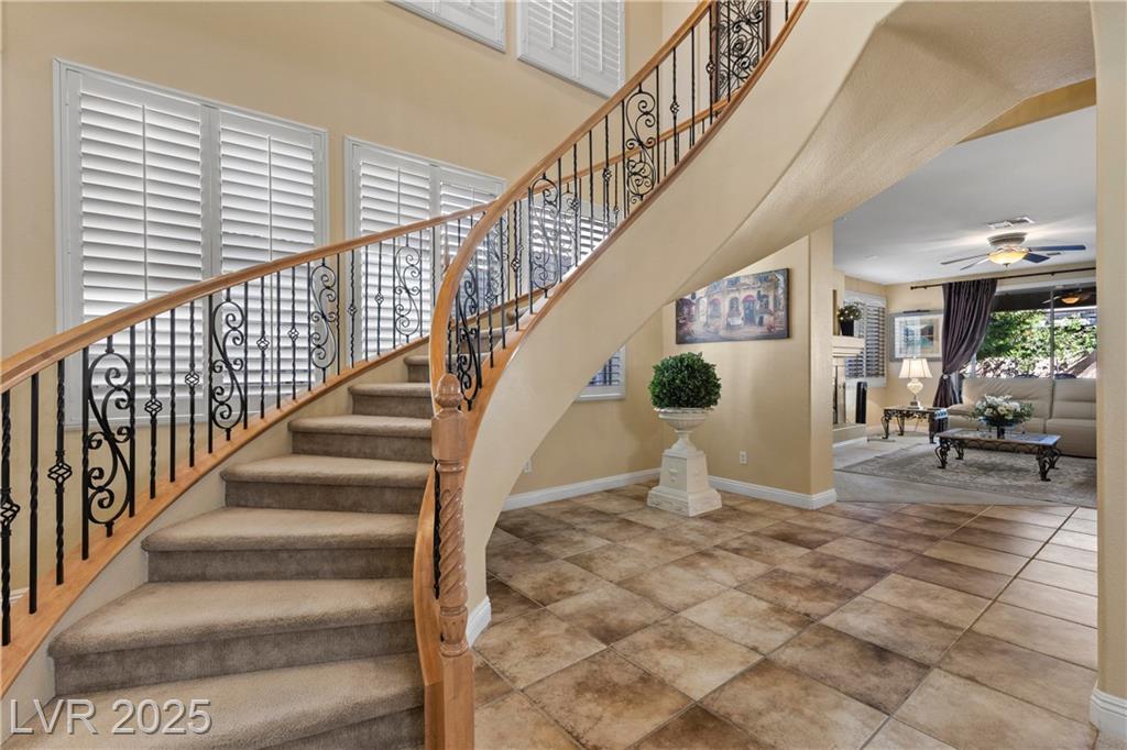 Rare opportunity! Own this 5-bedroom, 4.5-bath Henderson home with a 2.87% ASSUMABLE mortgage — huge savings in today’s market! Located in guard-gated Tuscany at Calico Ridge, this 3,811 sq. ft. home features a grand entry with wrought iron staircase, chef’s kitchen with granite countertops and wine hall, family room with fireplace, formal living and dining areas, loft, and spa-like master suite with walk-in closet. Private backyard with covered patio and access to golf course, clubhouse, and fitness center. Close to shopping, dining, and top-rated schools.