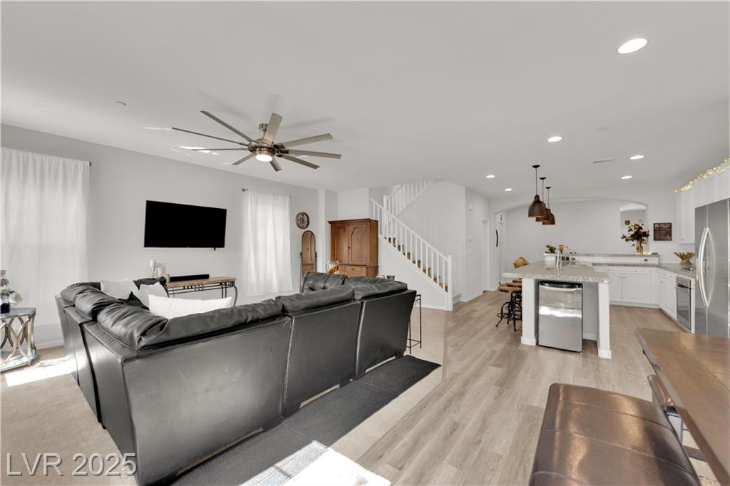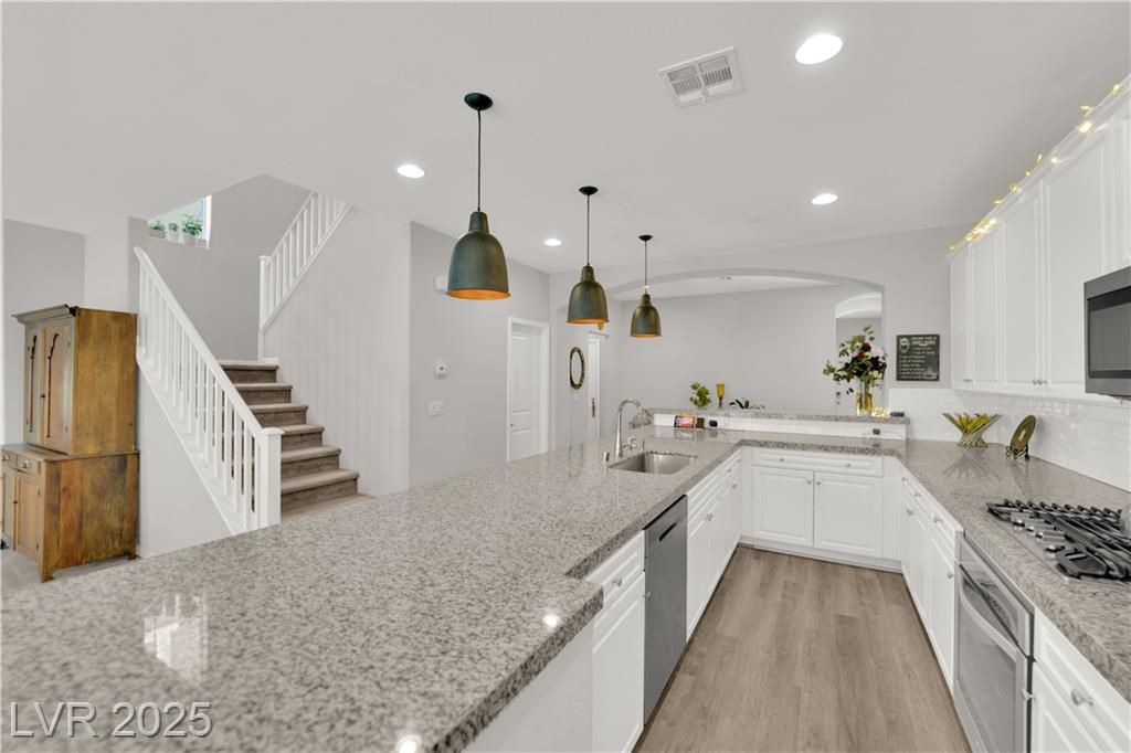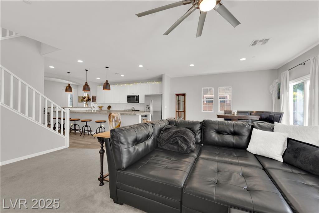 Step into effortless living in this move-in ready home nestled in the vibrant Cadence community. Designed for today’s lifestyle, the chef’s kitchen features open floor plan with sleek granite countertops, stylish tile backsplash, and premium cabinet hardware—all enhanced by a reverse osmosis system, water softener for everyday comfort. The spacious family room flows naturally for casual gatherings or downtime. Upstairs, unwind in the oversized primary suite with 2 large walk-in closets, plus a versatile loft perfect for a home office or a quiet meditation spot. Enjoy community perks like pools with breathtaking Strip views, a community gated dog park, community parks, splash pads, all just minutes away from top schools, shops, restaurants, and the historic Water Street District. This home perfectly blends style, function, and convenience for the way you live today.