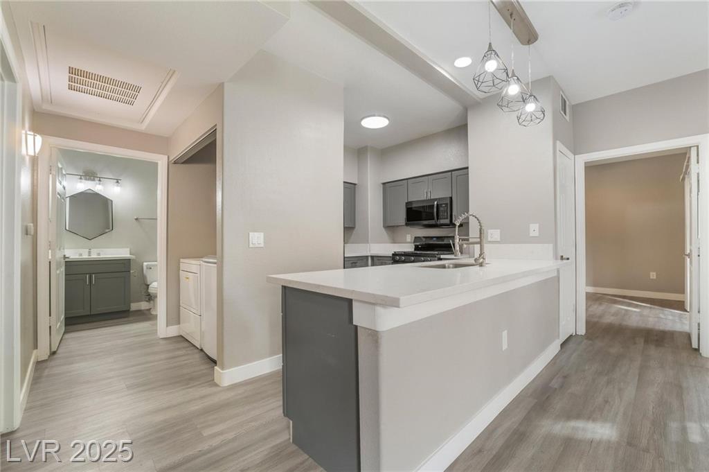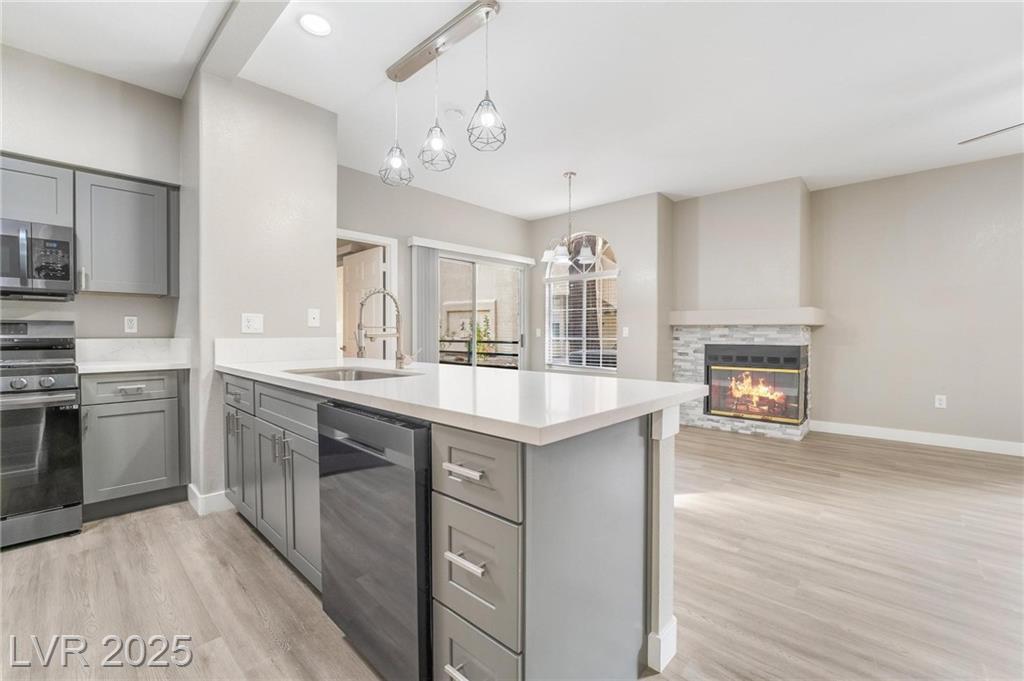 This beautifully updated 2-bedroom, 2-bath condo in the Legacy Condos of Green Valley is move-in ready! Located just minutes from the 215, shopping, dining, gyms, golf, and parks, it’s the ideal spot to live, work, and play. Features include luxury vinyl plank flooring, quartz countertops, black stainless steel appliances, and a rare living room fireplace. The primary suite offers a spa-inspired walk-in tile shower and plenty of space to relax. A detached 1-car garage provides convenience, while the community offers two pools for your enjoyment. Don’t miss your chance to call this stylish condo home!