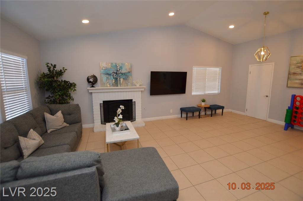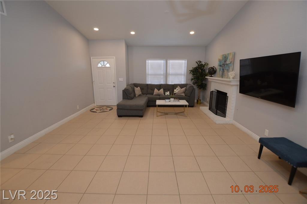 This beautiful 4-bedroom, 3-bathroom single-story home with a 2-car garage features a modern open layout with high ceilings and a cozy fireplace in the spacious living room. The elegant design includes tile flooring throughout, a stylish kitchen with stainless steel appliances, quartz countertops, designer backsplash, and fresh paint. Each bedroom with ceiling lights, and the bathrooms also showcase quartz countertops, with the master bathroom featuring a double sink. The home boasts a sparkling pool in a huge backyard perfect for entertaining, along with low-maintenance desert landscaping in the front. Conveniently located near schools, shopping centers, and freeway access, fully furnished, this must-see home perfectly combines comfort, style, and convenience.