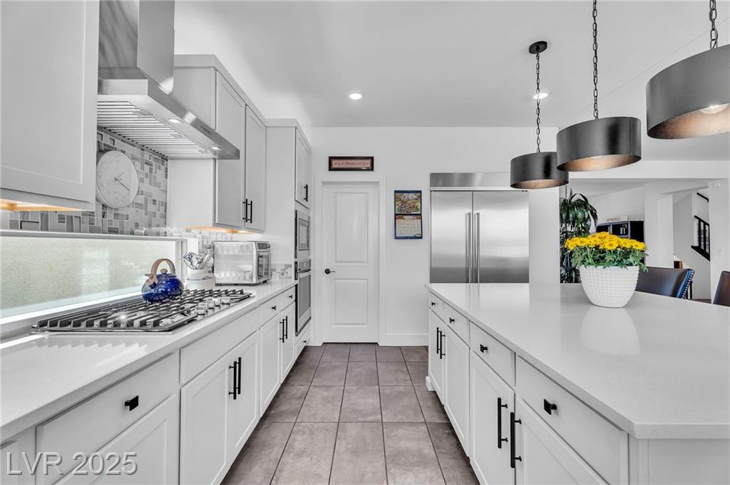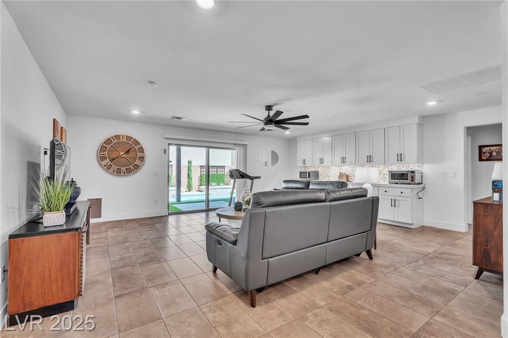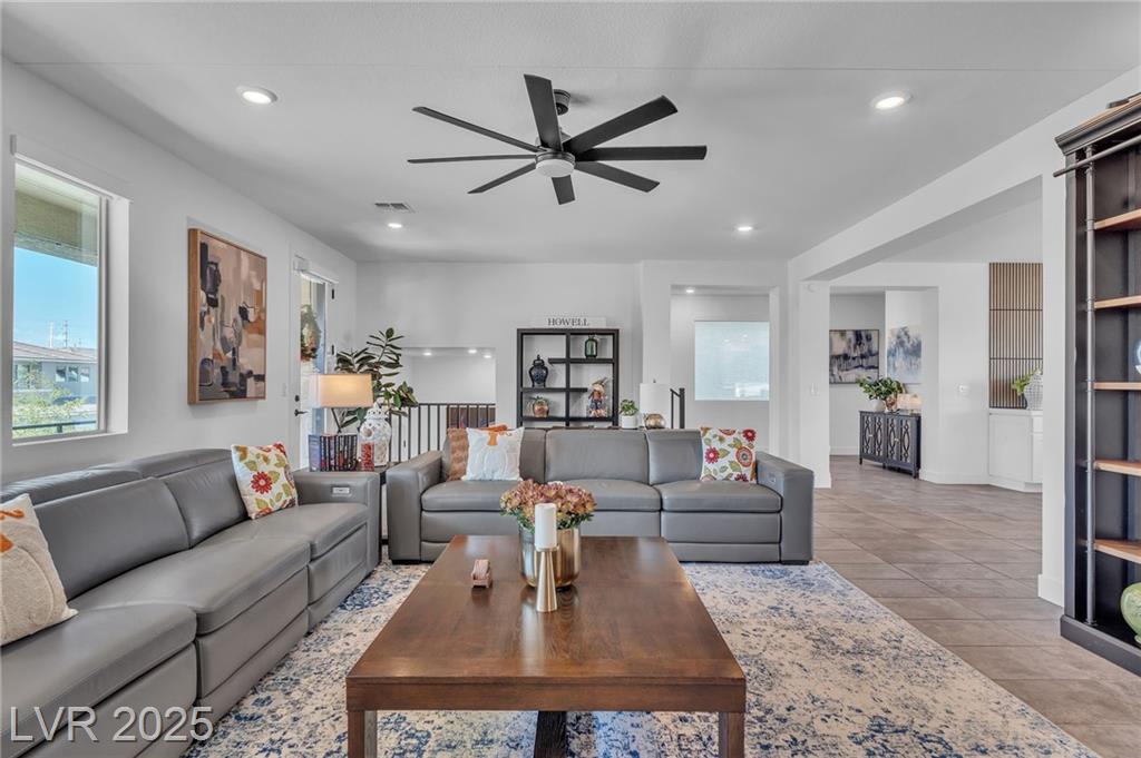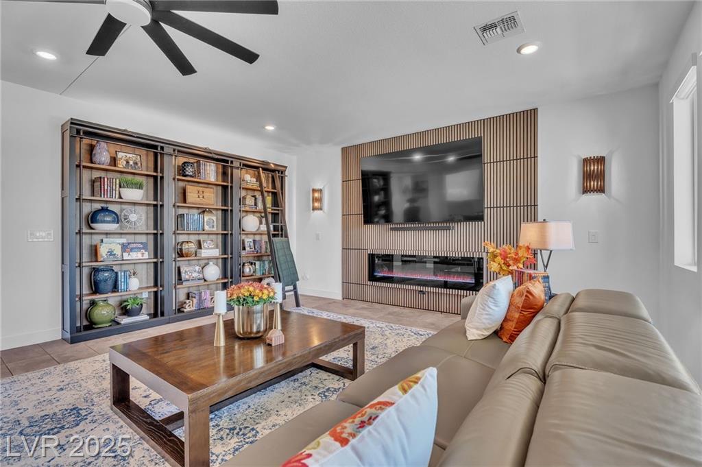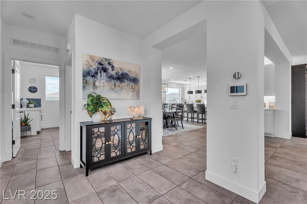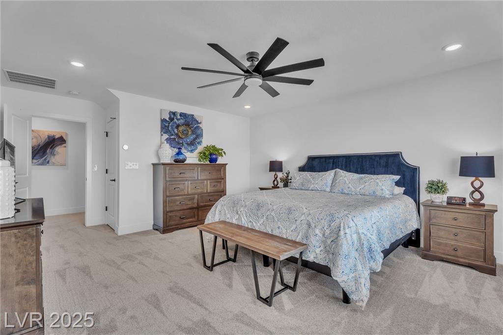 Fall in love with the home as you discover its unique features & be amazed! Rooftop deck has mountain and strip views. Enjoy the panoramic views all year. Less than six months old; upgraded carpet (50 year Mohawk) and front yard landscape. Custom pool, covered patio and backyard landscaping w/ accent lighting might make this your favorite vacation spot. First floor has a large gathering area and large bedroom suite, perfect for guests. All bedrooms have walk in closets. Extra cabinetry on first and main floor makes for abundant storage. Beautiful fans, mechanical blinds, designer lighting and more. Bookcases on main floor become an instant WOW feature and newer fireplace and custom walls are stunning. Oversize refrigerator was purchased and fitted a little over a year ago. Dedicated holiday lighting makes decorating easy, all year long. First floor gathering room and main floor are tile. Laundry has cabinets and a sink. Check out the custom closet in the primary..absolutely beautiful.