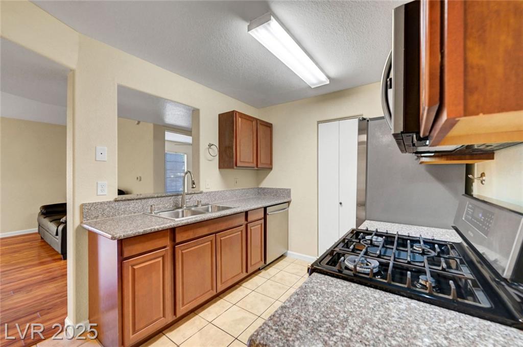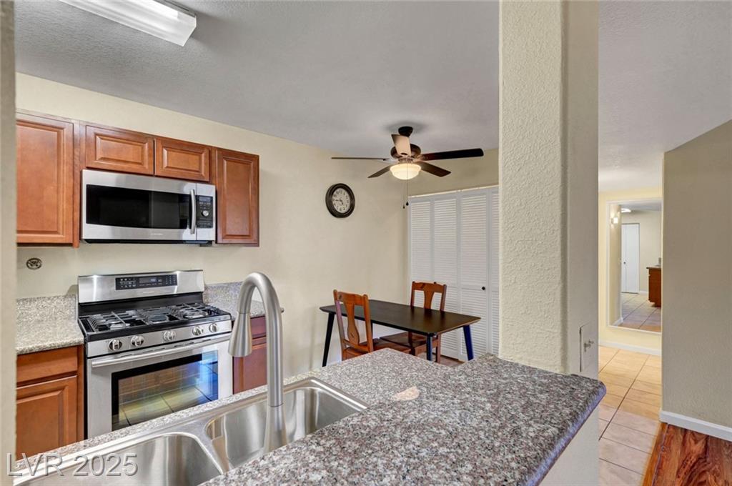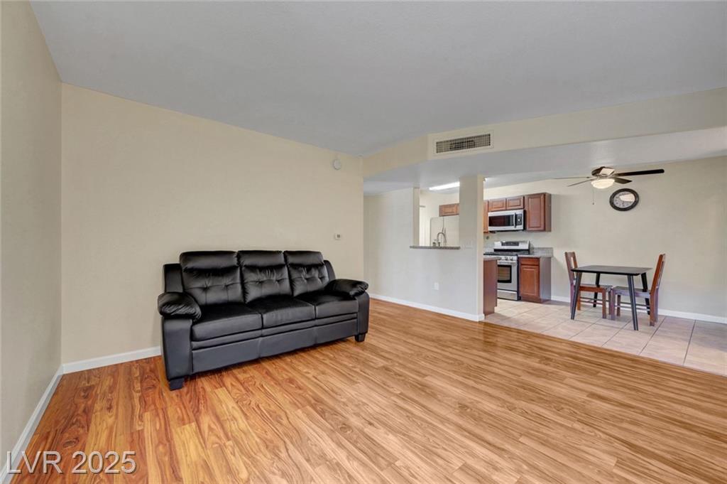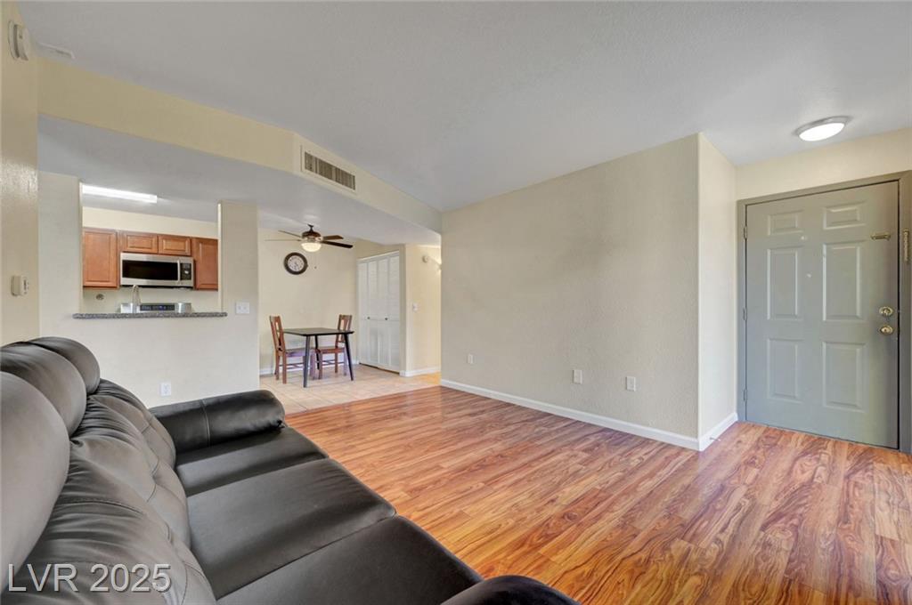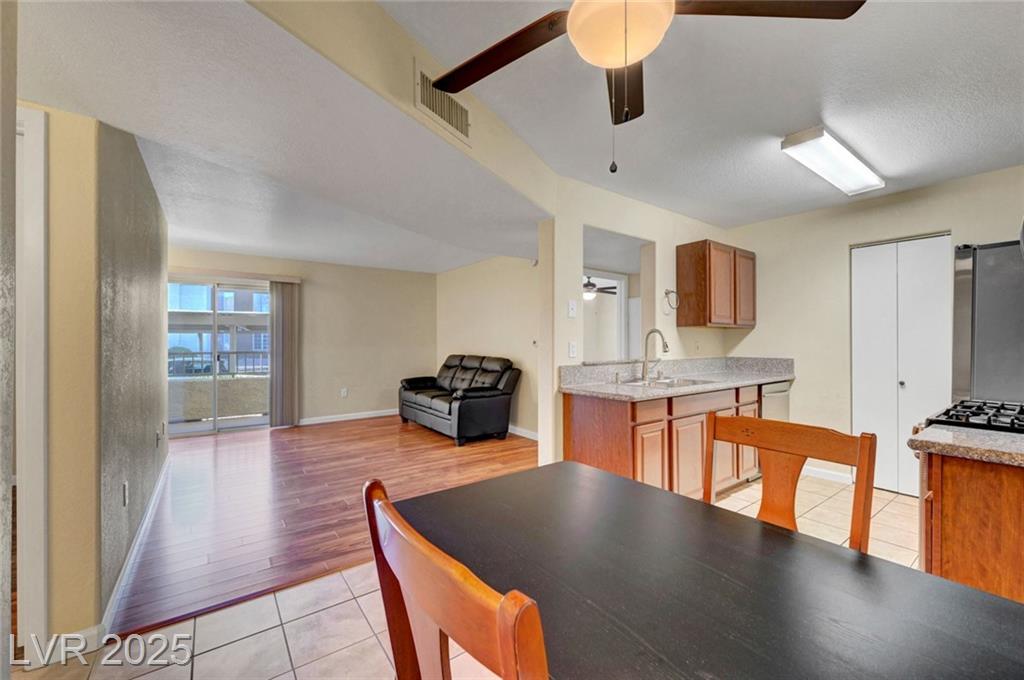 Welcome to this beautifully updated first-floor condo in the gated Solevita community! This 2-bedroom, 2-bath home features an open-concept layout with luxury vinyl plank flooring throughout. The remodeled kitchen boasts granite counters, stainless steel appliances, and a convenient pantry, opening seamlessly to the dining and living areas. Both bedrooms offer walk-in closets, and all appliances are included for move-in ease. Enjoy a private patio, assigned covered parking, and resort-style amenities including 2 pools, spa, clubhouse, and basketball court. A perfect blend of comfort and convenience in the heart of Henderson! Come see your new home today!!