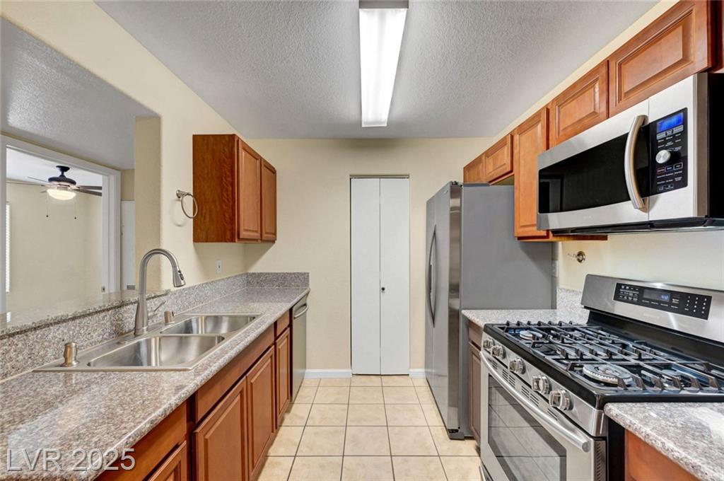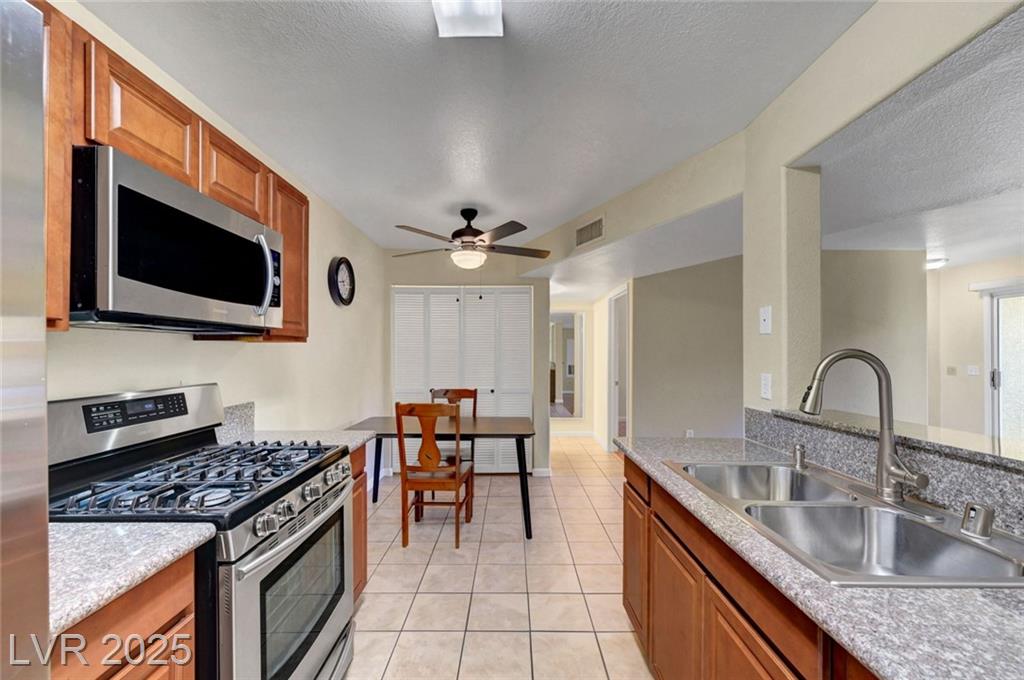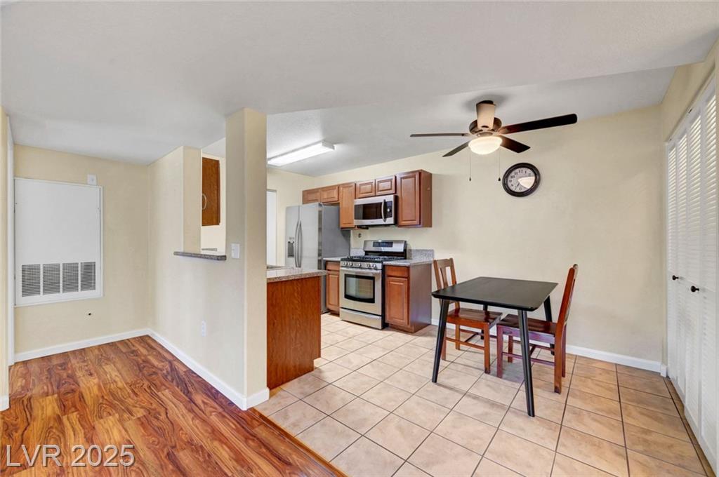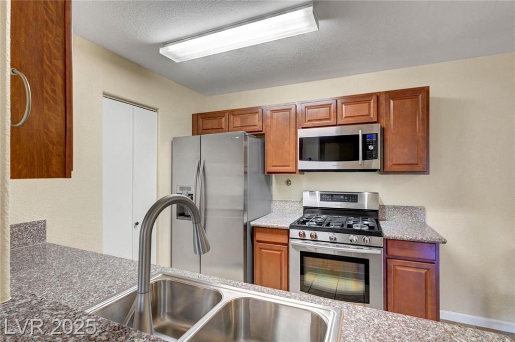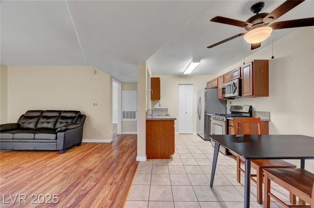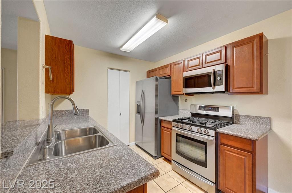 Welcome to this beautifully updated first-floor condo in the gated Solevita community! This 2-bedroom, 2-bath home features an open-concept layout with luxury vinyl plank flooring throughout. The remodeled kitchen boasts granite counters, stainless steel appliances, and a convenient pantry, opening seamlessly to the dining and living areas. Both bedrooms offer walk-in closets, and all appliances are included for move-in ease. Enjoy a private patio, assigned covered parking, and resort-style amenities including 2 pools, spa, clubhouse, and basketball court. A perfect blend of comfort and convenience in the heart of Henderson! Come see your new home today!!