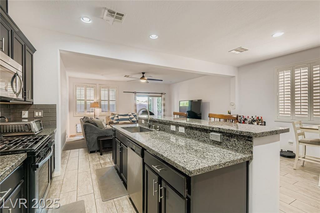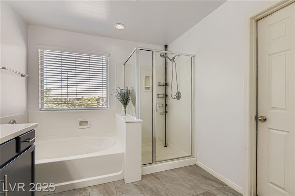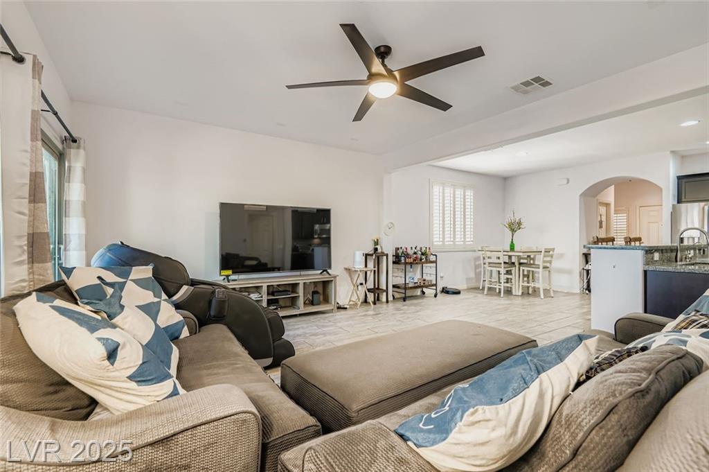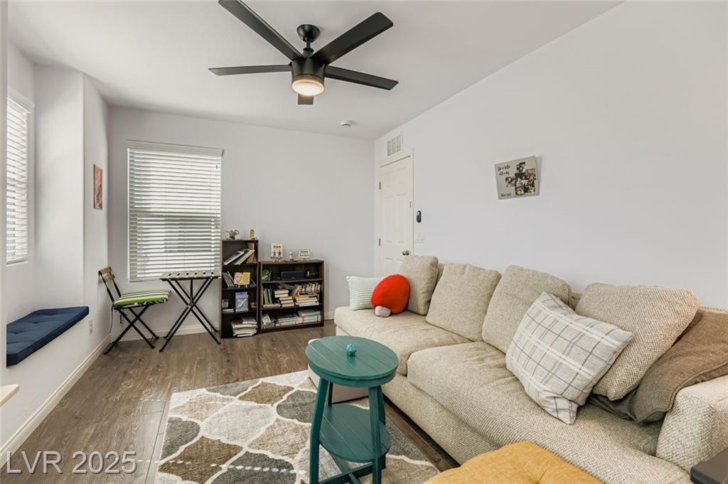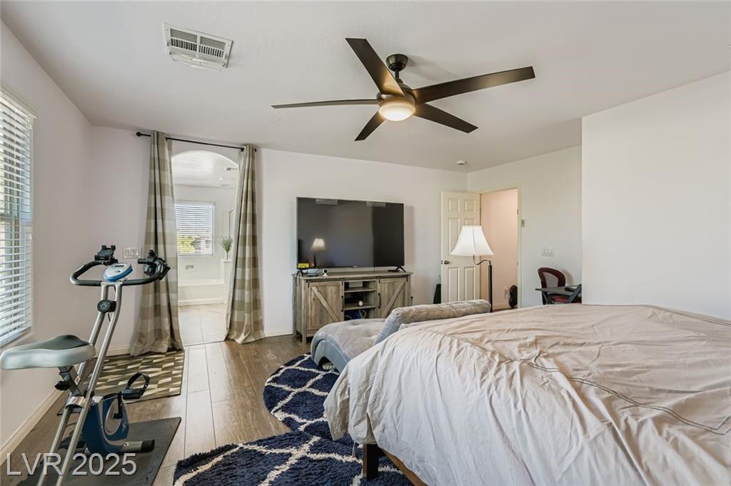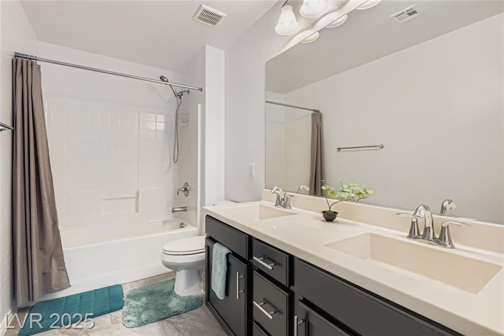 Location, location, location! Come check out this beautiful, well cared for home right outside of Summerlin—without the extra fees! Just 1.2 miles from Bishop Gorman High School this home puts you minutes from the airport, Allegiant Stadium, the Strip, major freeways, shopping, and dining. Inside, you’ll love the flexible layout featuring a large downstairs bedroom with a full bath and walk-in closet—perfect for guests or multi-gen living. Upstairs, the spacious primary suite includes a huge walk-in closet that’s sure to impress. Enjoy tons of natural light, stylish plantation shutters, and a modern kitchen with stainless steel appliances. Tranquil backyard with covered patio and no neighbors behind, great for peaceful mornings or family barbecues. This home has it all—style, space, and an unbeatable location. Come see it for yourself!