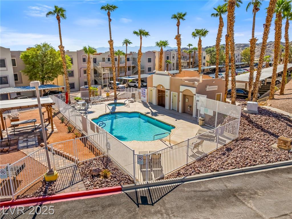 Mountain views and Arizona city lights from the living room and primary bedroom windows! This unit offers a split floorplan with 2 bedrooms and 2 baths across its move-in-ready 986 square feet. Step outside to discover a refreshing pool across from your unit. Your convenience is ensured with an included assigned carport within this gated community that features additional perks such as a clubhouse, two pools, and secure RV parking for peace of mind. No dog are allowed.