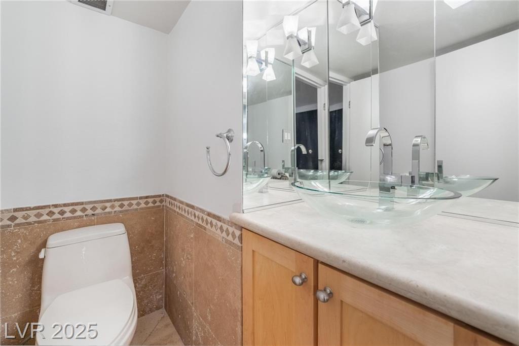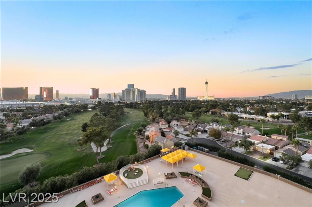 Experience elevated living at Regency Towers, set within the prestigious Las Vegas Country Club. This spacious residence showcases floor-to-ceiling windows framing stunning views of the Strip, city skyline, mountains, and lush golf course greens. Enjoy effortless indoor-outdoor living from your private balcony—perfect for relaxing or entertaining. Inside, you’ll find an updated kitchen, a modern primary bath with sleek finishes, and expansive living and dining areas blending style and comfort. Residents also enjoy the convenience of reservable on-site guest suites for visiting friends or family—just $60 per night for a 2-bed, 1-bath, or $80 per night with a kitchenette. Luxury, comfort, and convenience converge here—welcome home to Regency Towers.
