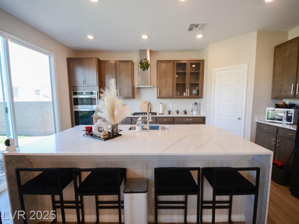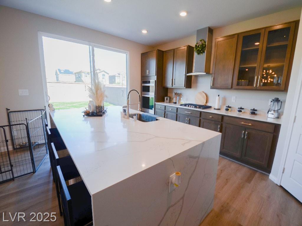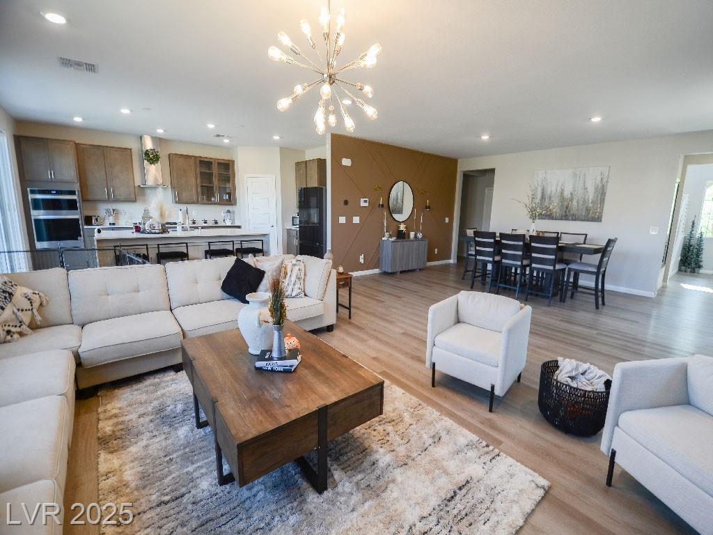 Public Remarks Reduced!!!!Gorgeous!!! like new!!!!!. More than $50K in upgrades, 5 bedroom/3 bath 2 story home, located in the Tule Springs gated community in NLV! This beautiful home opens up to the huge living room and kitchen, Includes beautiful floors, Kitchen featuring Quartz counter tops, gourmet center island, upgraded espresso cabinets, stainless steel appliances, built in double oven, gas cook top, and a large walk-in pantry. One bedroom and full bathroom downstairs; Primary and 4 additional bedrooms upstairs, all with oversize walk-in closets. Spacious loft upstairs can be used as an office, play/game room, or an additional living area, Big back yard with beautiful landscaping design and finish, Tank less water heater, and so much more! Close to the 215 freeway, restaurants, shopping, parks, and schools. Come and see this beauty before it's gone!!!!