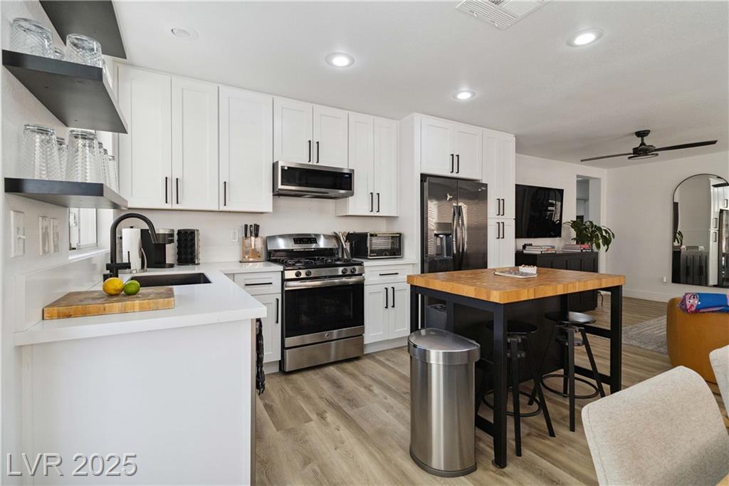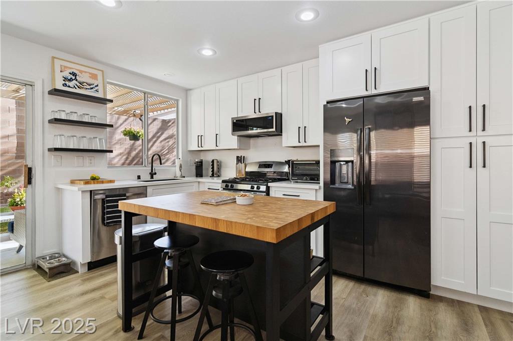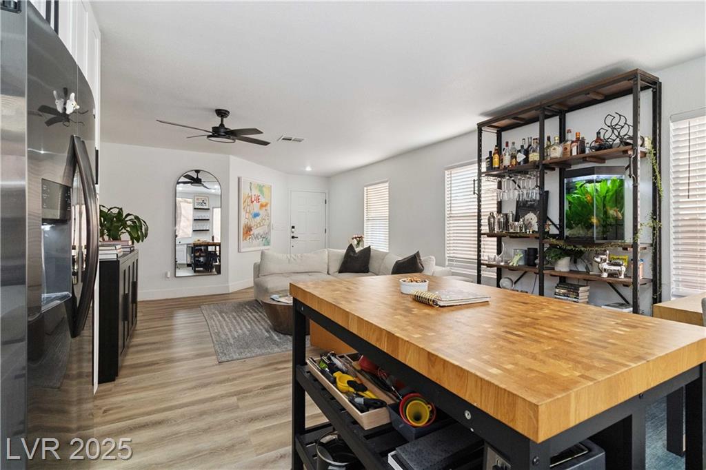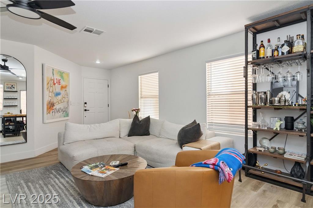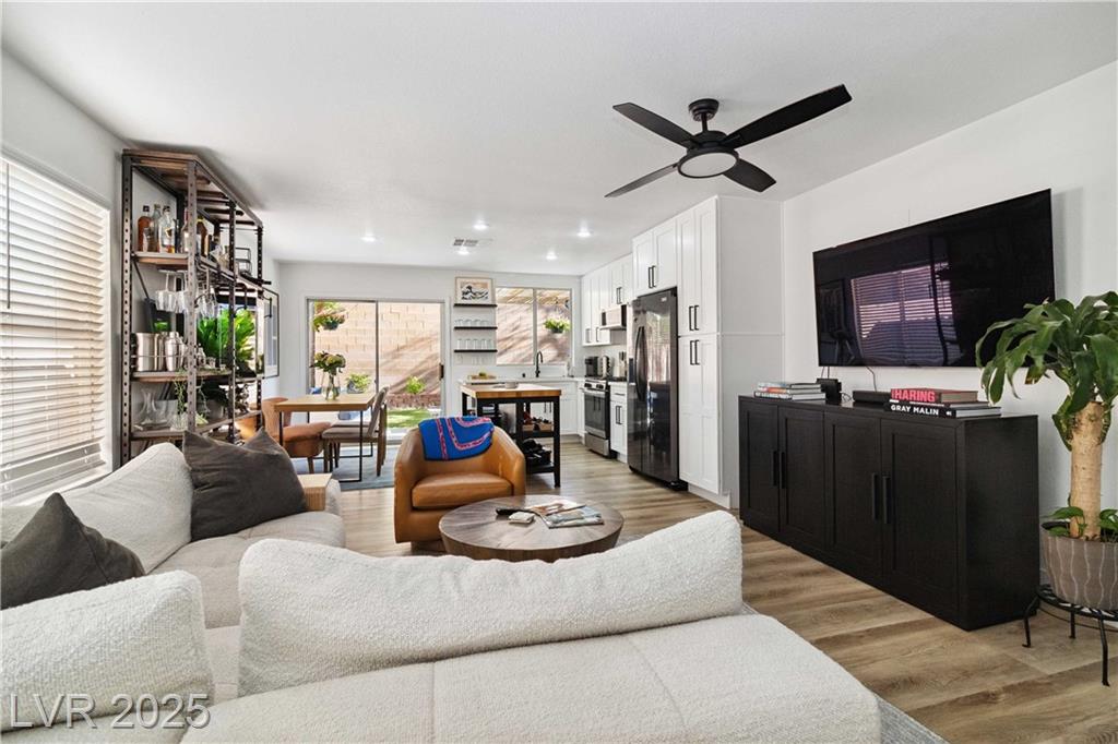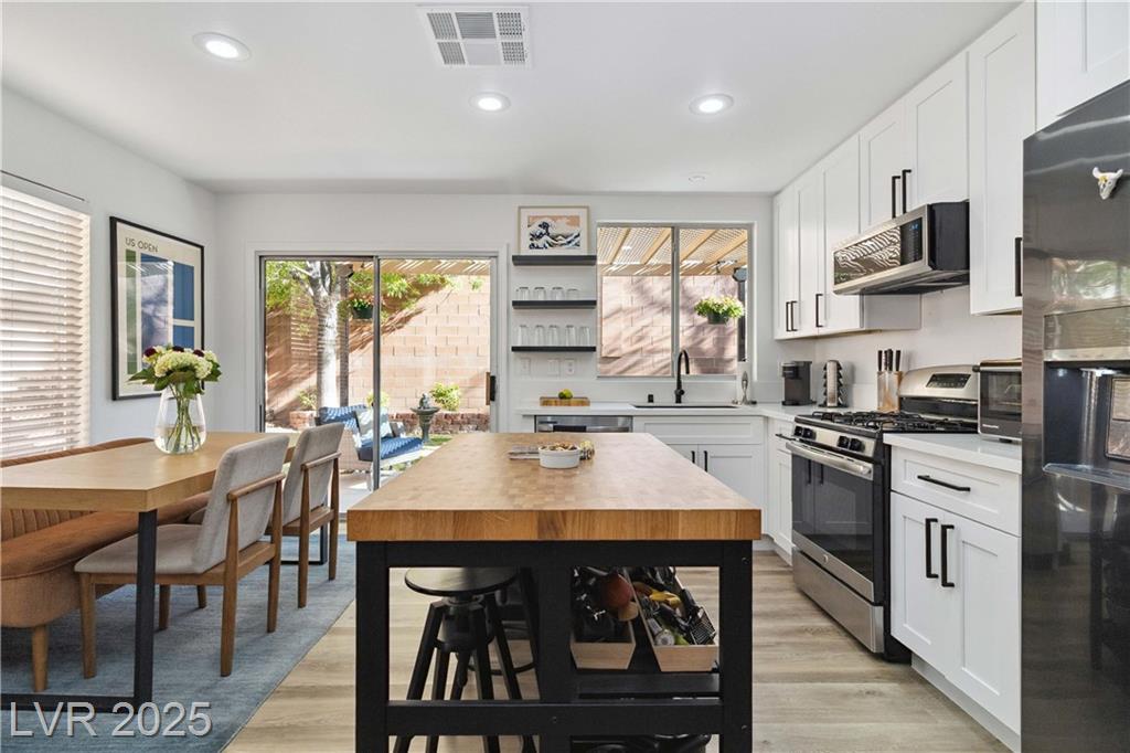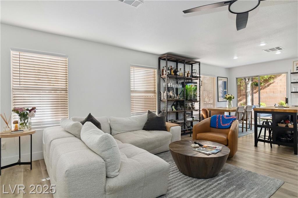 This is truly a masterpiece in Summerlin. Highly upgraded, 3 bedrooms, 2 full baths, and bright home in the heart of Summerlin with close access to Red Rock Resort, Summerlin Parkway, and hiking nearby. Stainless steel appliances, a backyard and patio that provides complete privacy, and a layout that flows perfectly. Renovated and immaculate, this home is sure to impress with a high-end kitchen with quartz countertops and butcher block island overlooking the living room, modern bathrooms with glass showers, and a 2-car garage. Light fills this home from every angle, creating a bright and happy space to reside, entertain, and relax. Schedule a showing today and don't let this one slip by.