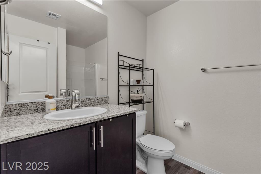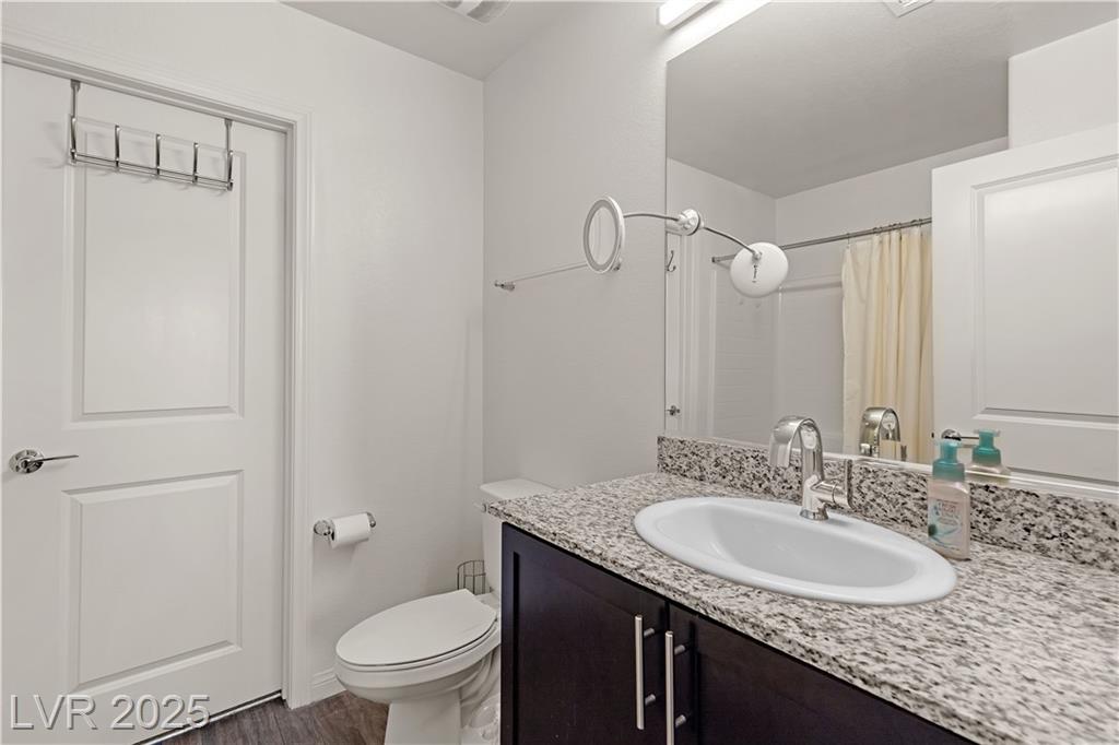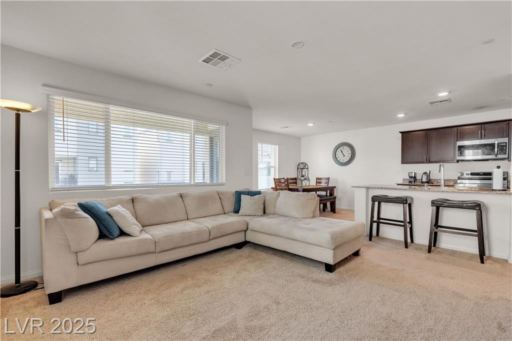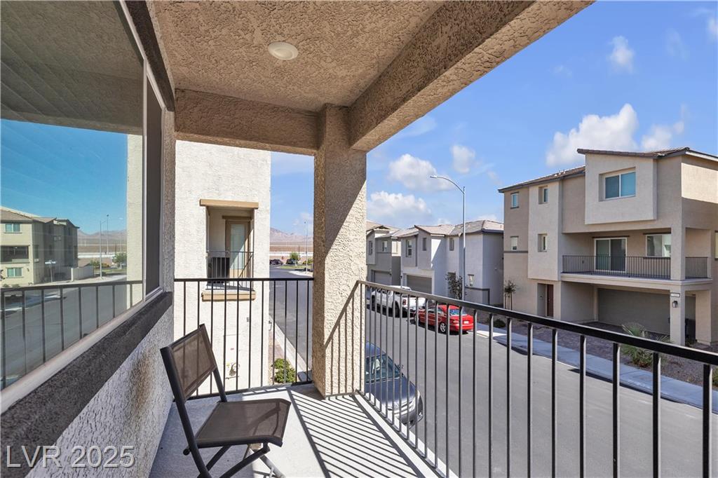 Welcome to 7007 Crimson Shadow, a stylish 3-level townhome nestled in the gated Watercolor community of North Las Vegas. This 1,266 sq ft residence offers 2 spacious bedrooms and 2 full baths, and large loft, ideal for comfortable living or a savvy investment. The modern kitchen features granite countertops, rich dark cabinetry, stainless steel appliances, and wood laminate flooring that continues into both bathrooms for a cohesive look. Each bath is upgraded with granite surfaces, adding a touch of luxury. And the mid-level balcony provides mountain views and place to relax during the cool fall evenings. Enjoy resort-style amenities including a sparkling pool and spa, basketball court, park, playground, and BBQ picnic area—perfect for relaxing or entertaining. With easy access to the freeway, commuting is a breeze. Whether you're a first-time buyer or looking to downsize, this home combines convenience, comfort, and community charm. Don’t miss your chance to own in Watercolor!