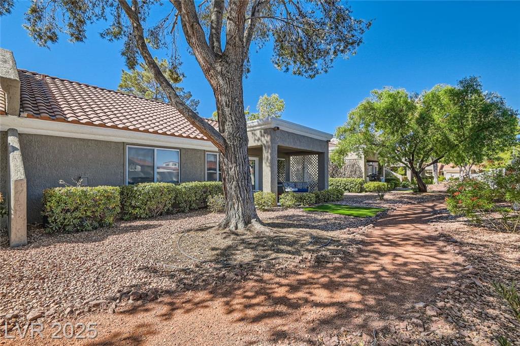 Adorable townhome located in the 55+ community of Sun City Summerlin. This two-bedroom, one-bathroom home is perfectly sized for enjoying all the fantastic amenities Sun City Summerlin has to offer. The home features several updates, including new flooring in the bedrooms and granite countertops in the kitchen. It also has an Anderson patio slider that opens to a north-facing, covered patio with no direct back neighbors. The spacious front courtyard is an ideal spot for your morning coffee or for a pet to enjoy the outdoors. One of the standout features of this townhome is the sub-HOA, which takes care of exterior maintenance, including roof, paint, landscaping, and watering of the common grounds. This means you can spend less time on upkeep and more time enjoying the fantastic amenities that Sun City Summerlin offers. These include three golf courses, fitness centers, pickleball courts, swimming pools, bocce ball, various clubs, and much more.