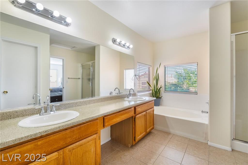 Fantastic 3-bedroom, 2.5-bath home with 1,816 sq. ft. of bright, open living space with a location to be rivaled. The all tile downstairs living area has two separate and spacious living areas that flow into a large open kitchen area with tons of counter space and storage. The large upstairs primary suite offers a spa-like bath with separate tub/shower, large walk-in closet, and beautiful mountain views. Secondary bedrooms are also generously sized and share a Jack-and-Jill bath. Homes also boats a brand new HVAC and Heating system. Key Locations: Home is only a 2 min drive to The Lakes, 9 min drive to DT Summerlin or the 215...