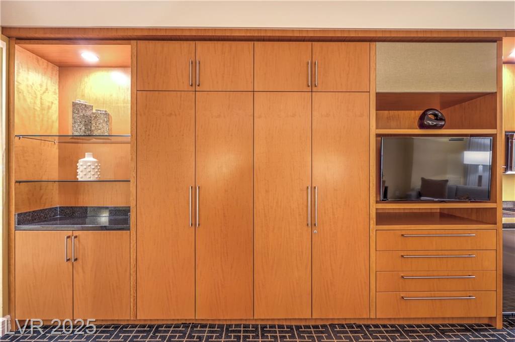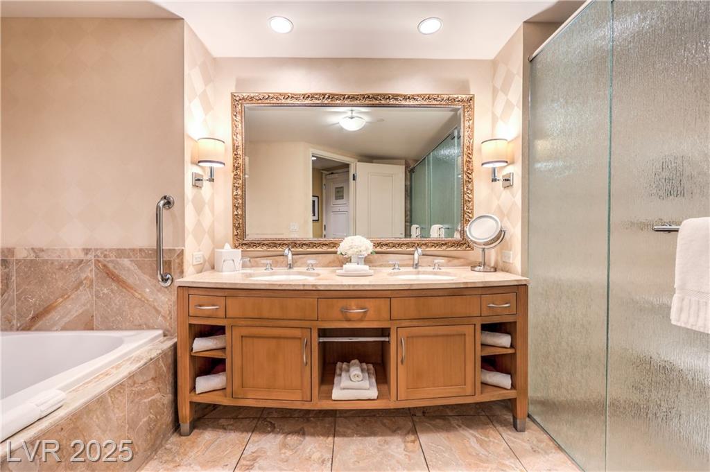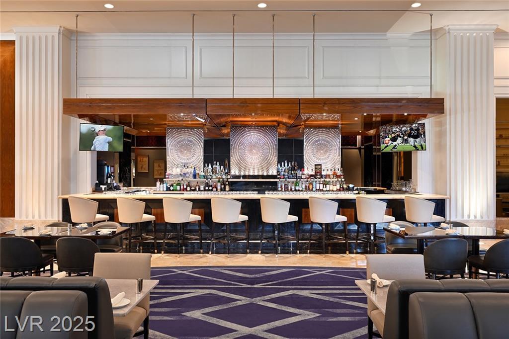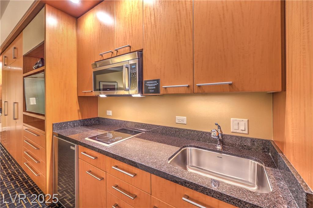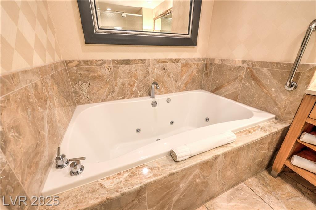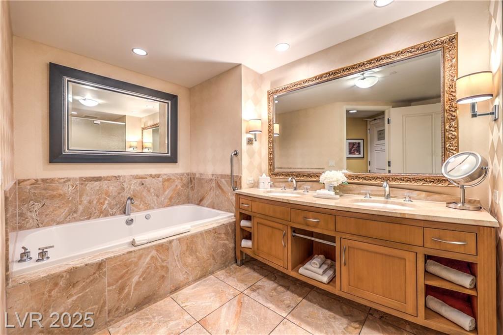 Experience the height of luxury living in Las Vegas with this sophisticated 534-square-foot studio condo, located on the 47th floor and boasting stunning panoramic views of the Las Vegas Strip, the iconic Sphere, and the resort-style pool below. This beautifully appointed unit features upscale touches including crown molding, a plush king-sized bed, custom cabinetry, and a kitchenette. The spa-inspired marble bathroom offers a dual-sink vanity and a generous six-foot soaking tub—ideal for relaxing in style. Blending elegance and comfort, this high-rise sanctuary embodies the essence of resort living right in the center of the city. Own your own slice of Las Vegas luxury today.