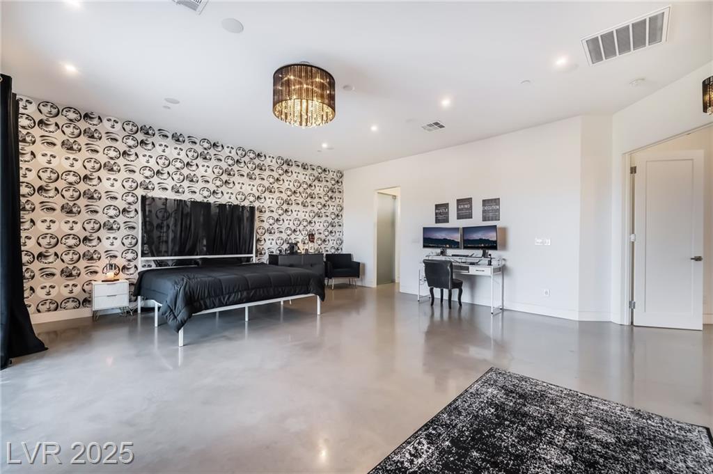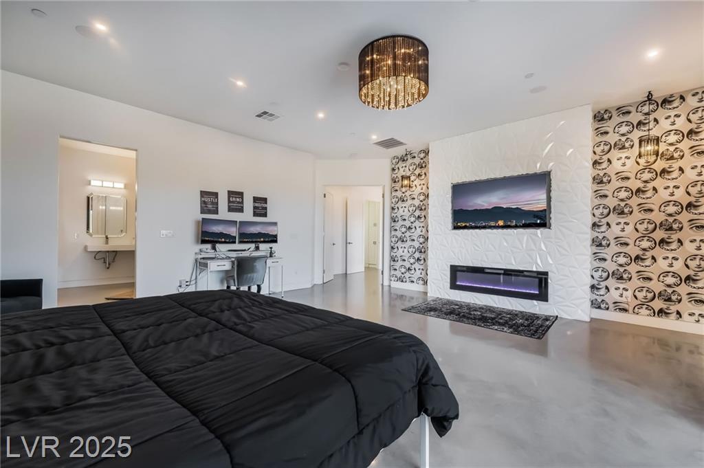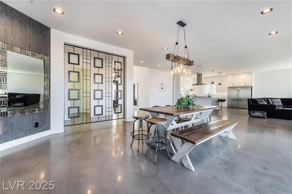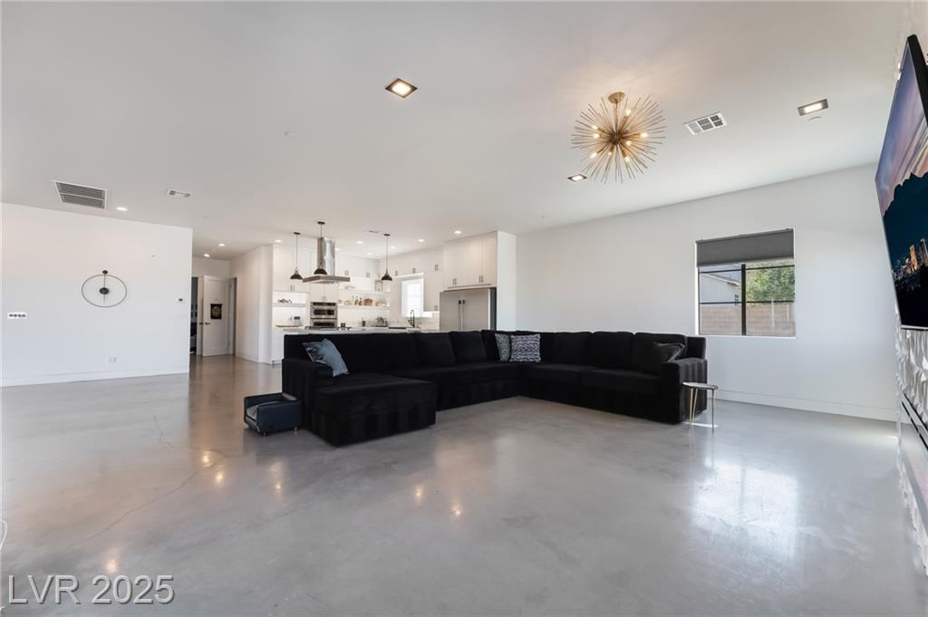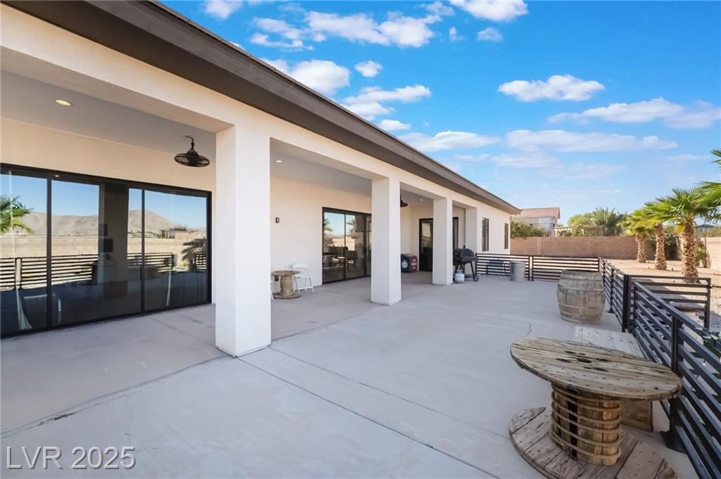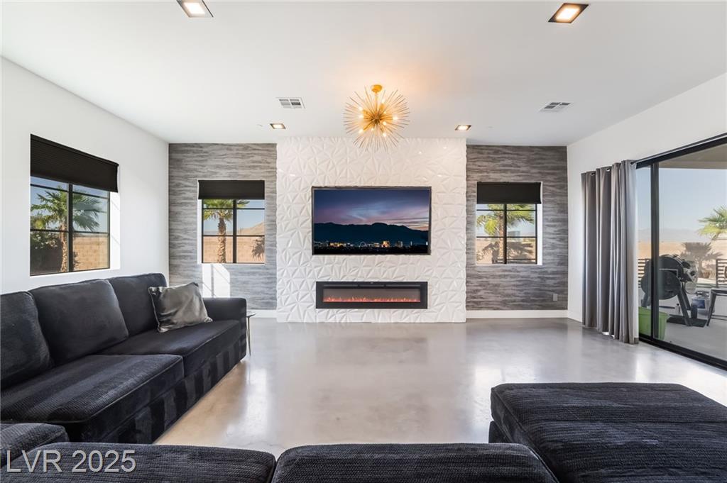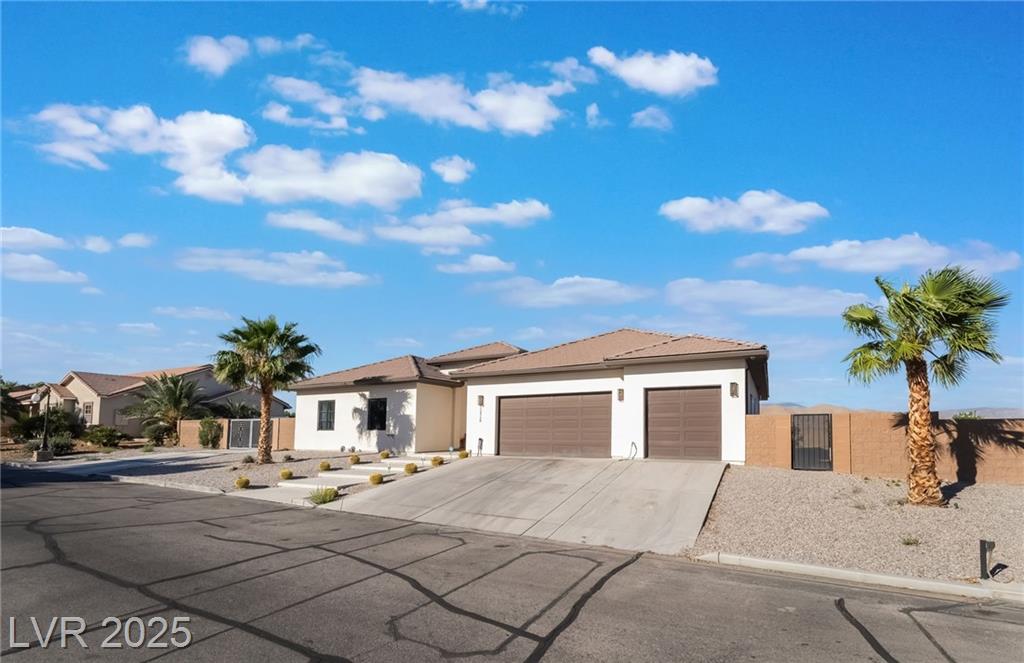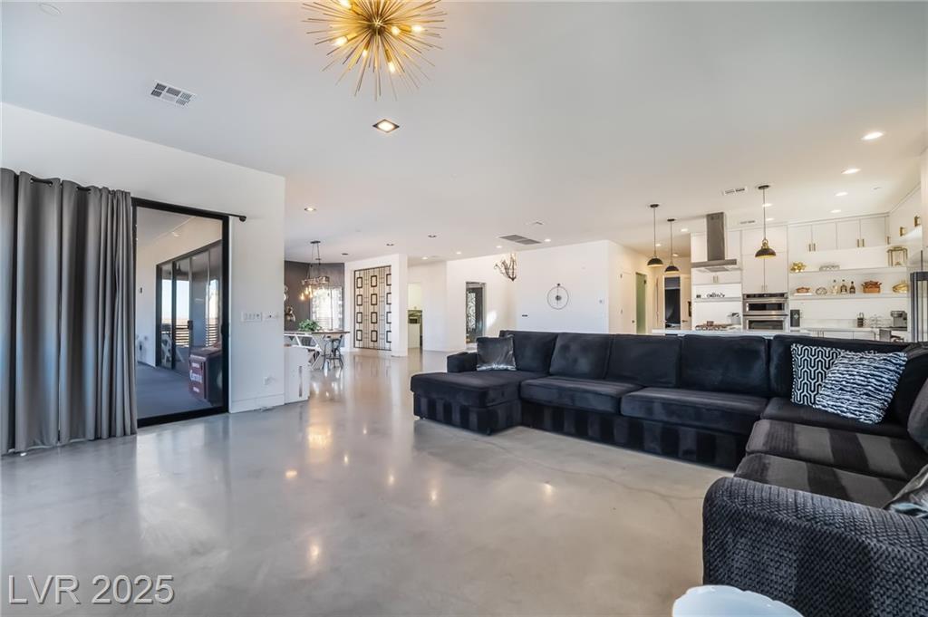 Modern luxury meets functionality in this stunning single-story home set on just under a half-acre with paved and gated RV parking. The open-concept layout showcases polished concrete floors, designer lighting, and sleek finishes throughout. The chef’s kitchen features an oversized stainless steel refrigerator, double ovens, and a waterfall island perfect for entertaining. The spacious great room highlights a statement fireplace wall and panoramic sliding doors leading to a covered patio with mountain views. Retreat to the spa-like primary suite with a rainfall shower and elegant finishes. Enjoy endless possibilities in the expansive backyard with room for a pool or casita. Don’t miss your chance to own this stylish modern retreat in a prime location—schedule your private showing today!